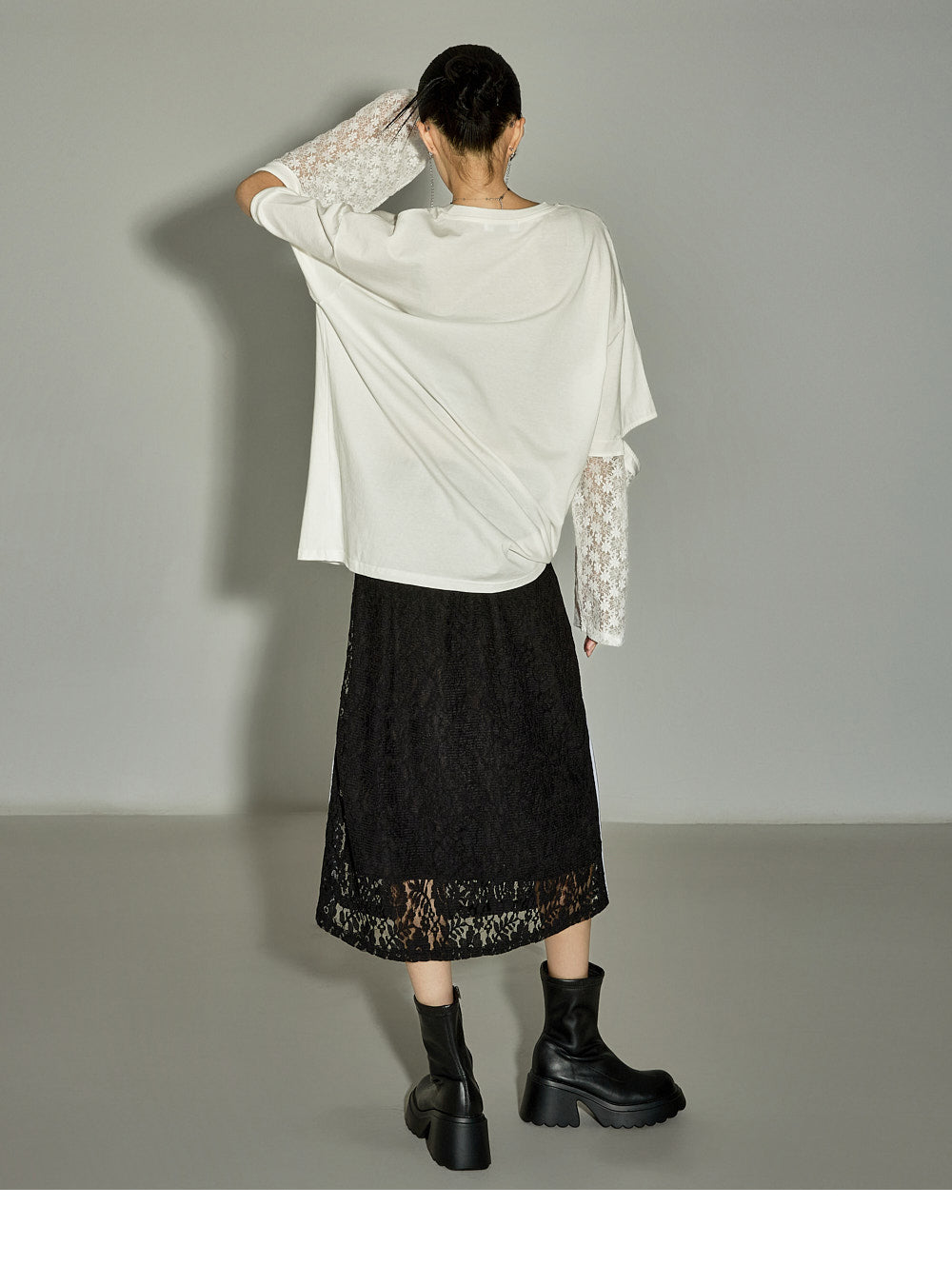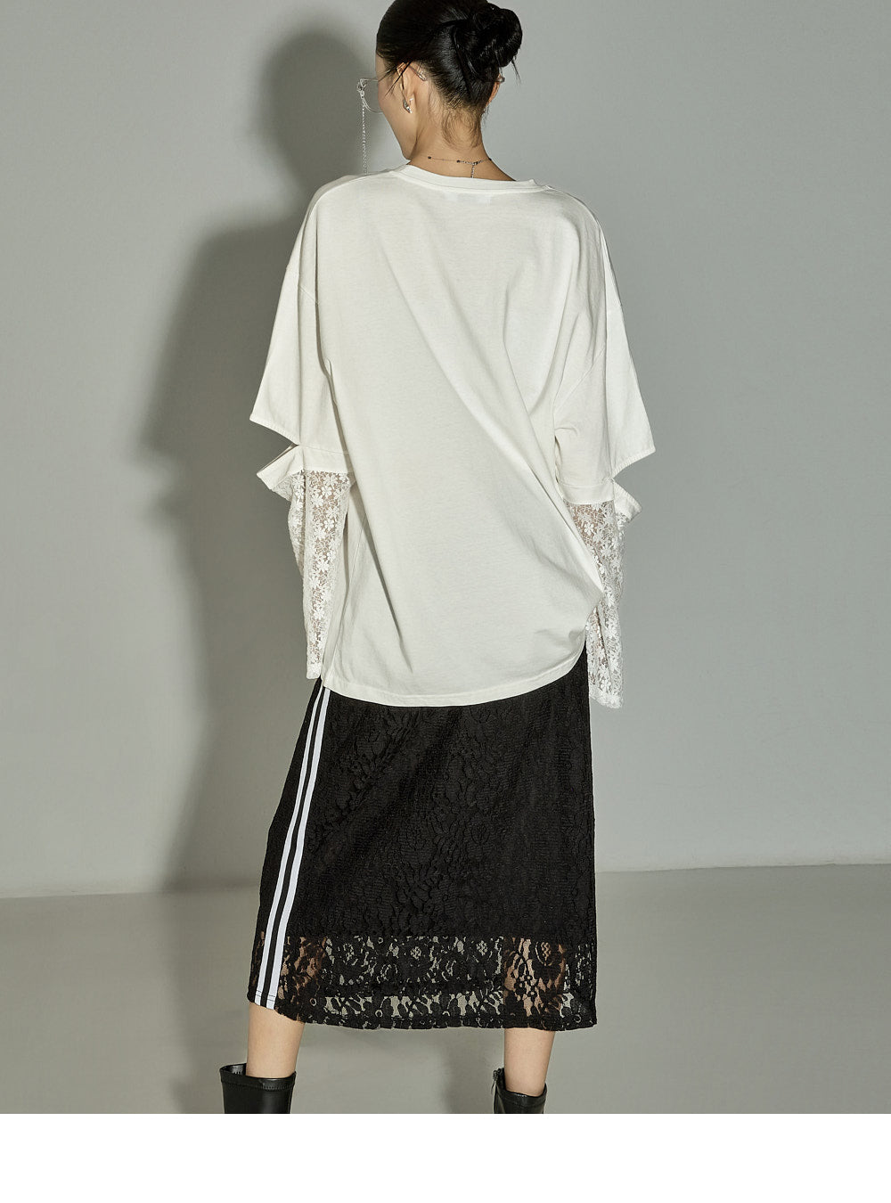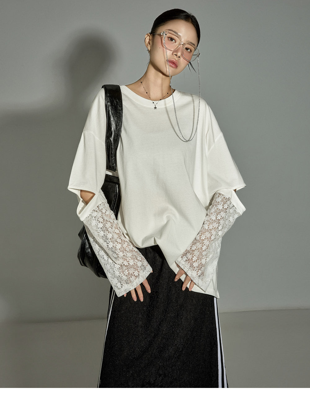 The sleeves feature a unique design with a mix of colored lace and leopard print,