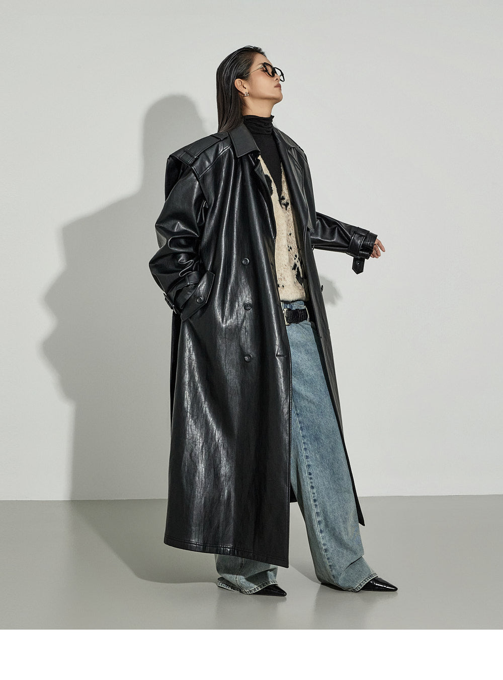 or paired with various tops or shirts, as shown on the model, for a unique look.