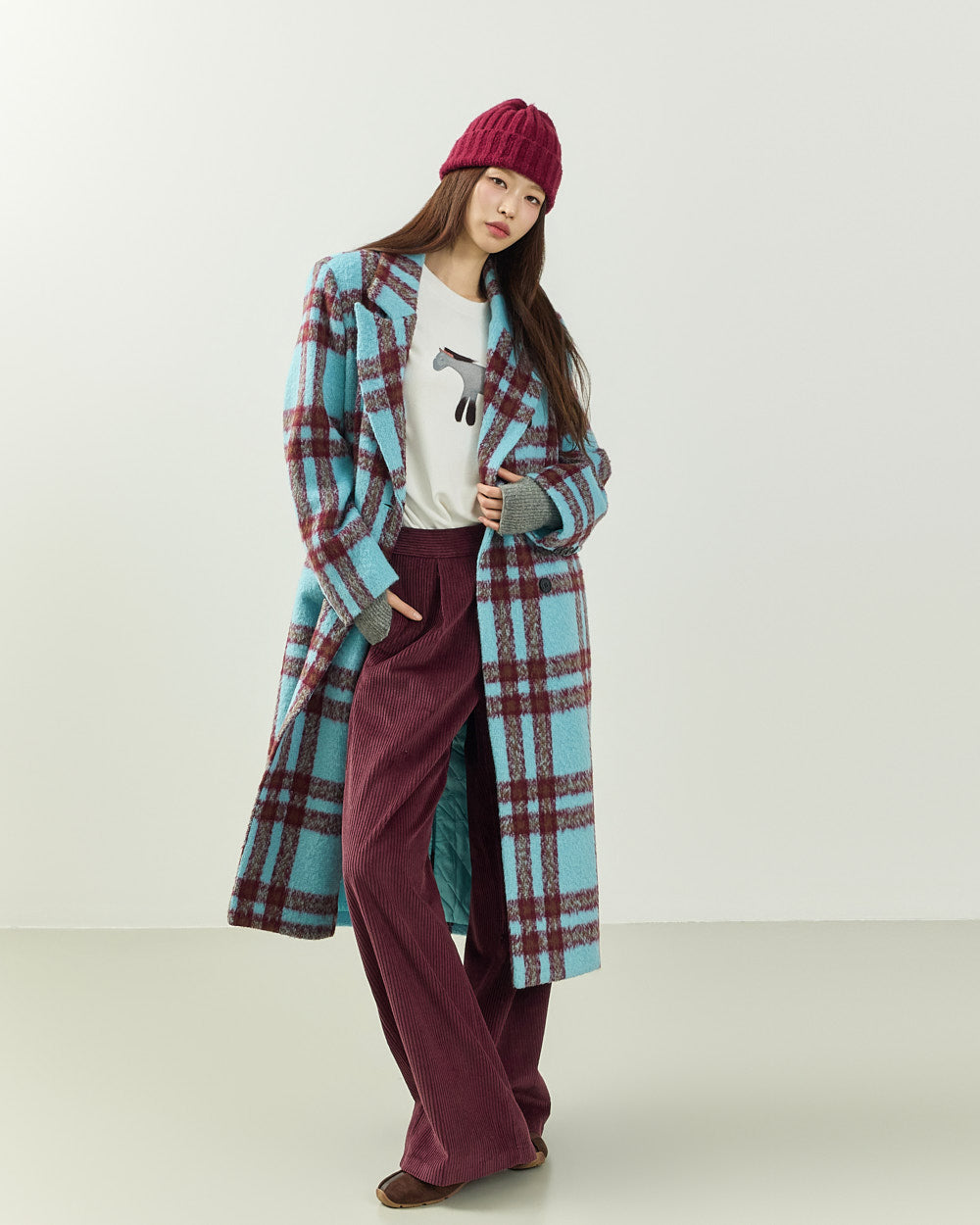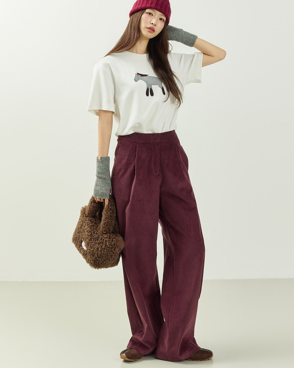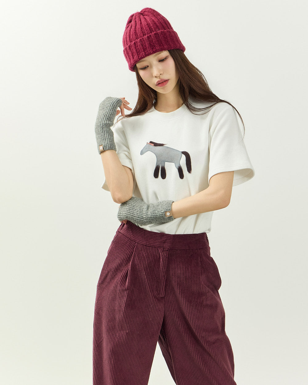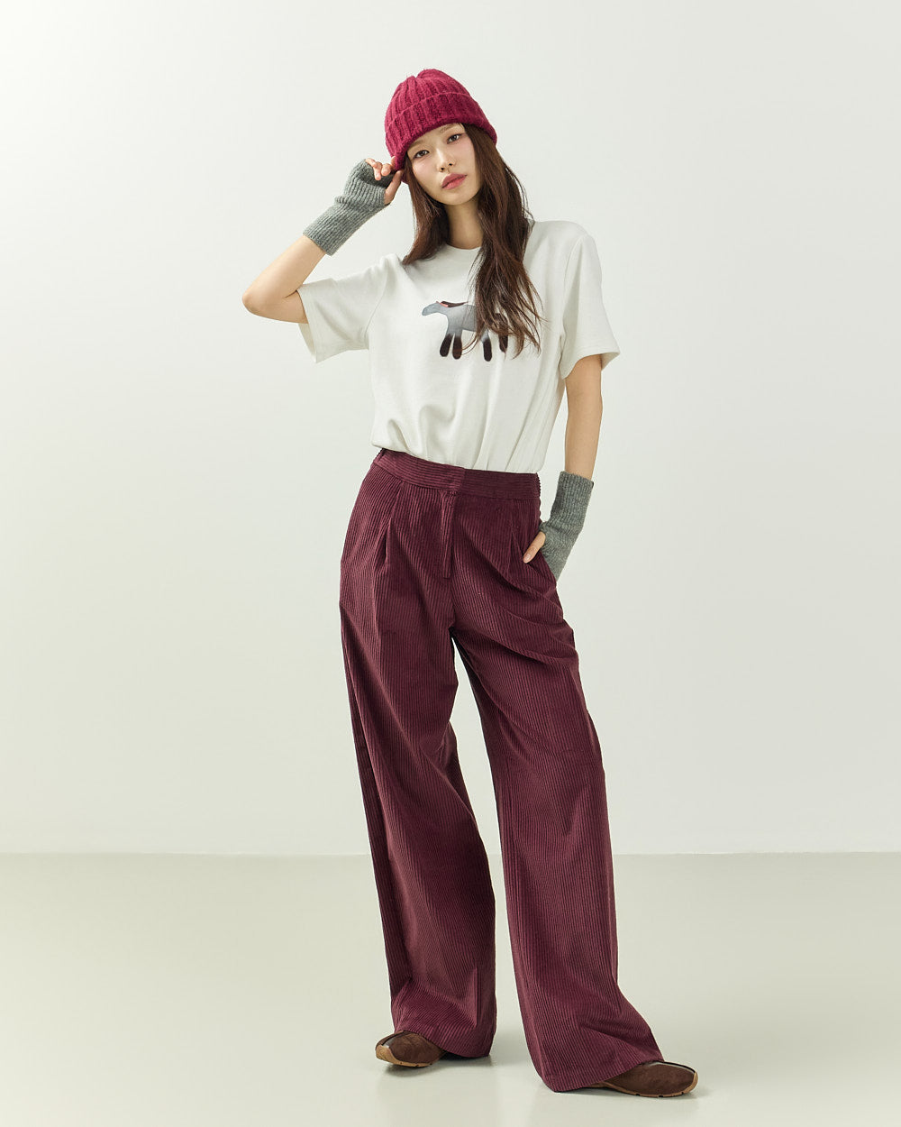 It easily pairs with a variety of bottoms, including denim, corduroy pants, and knit skirts,