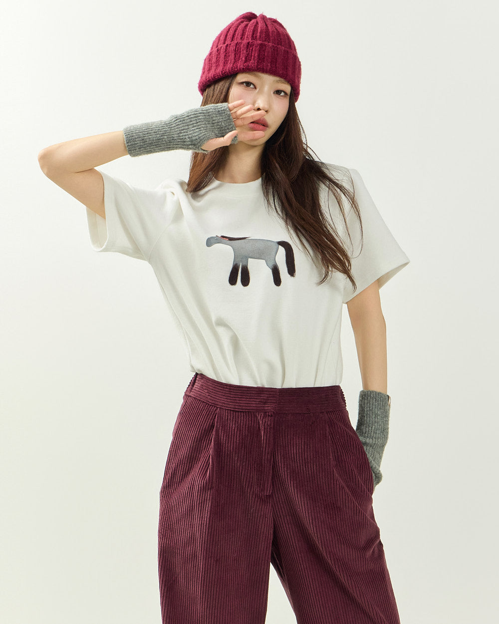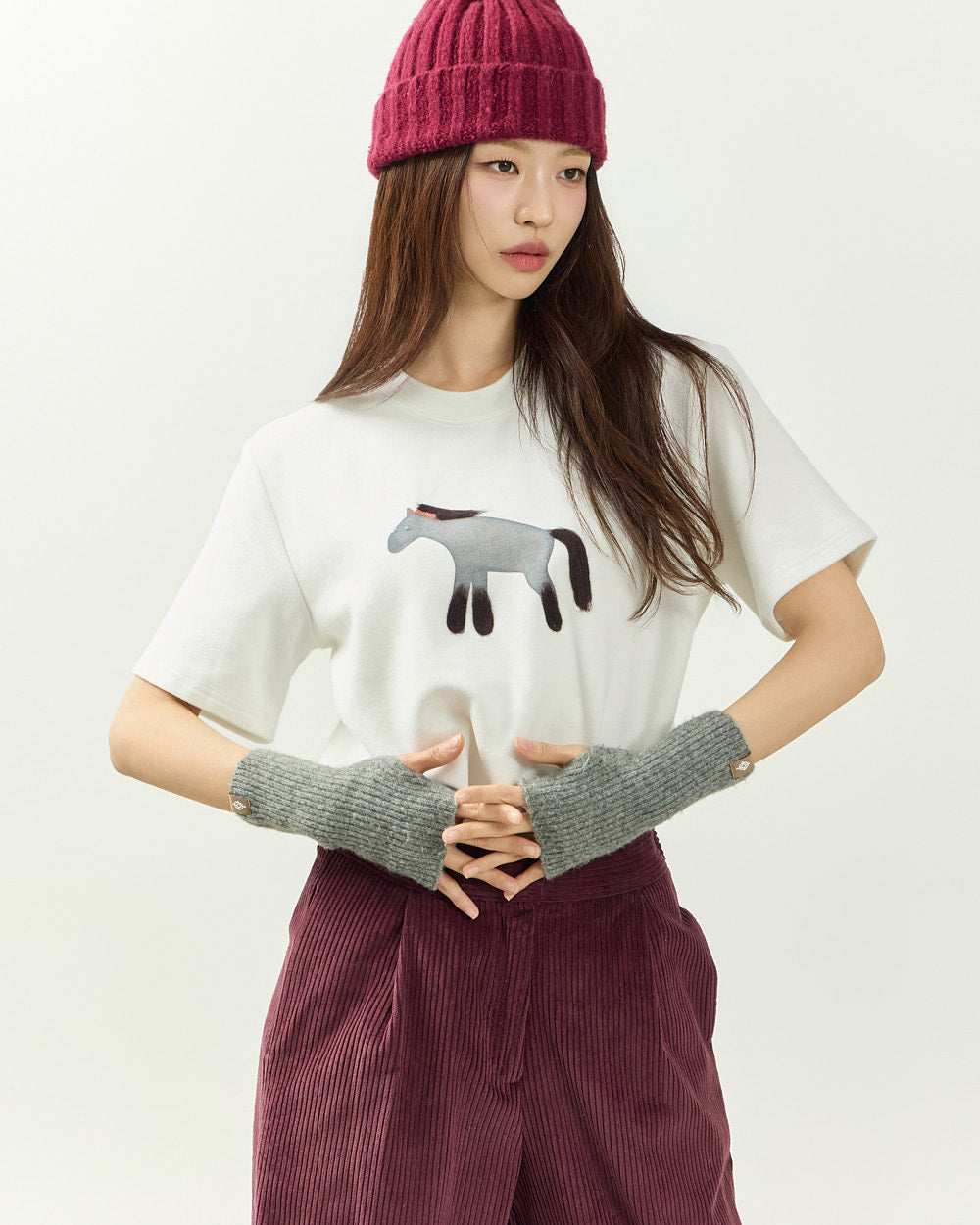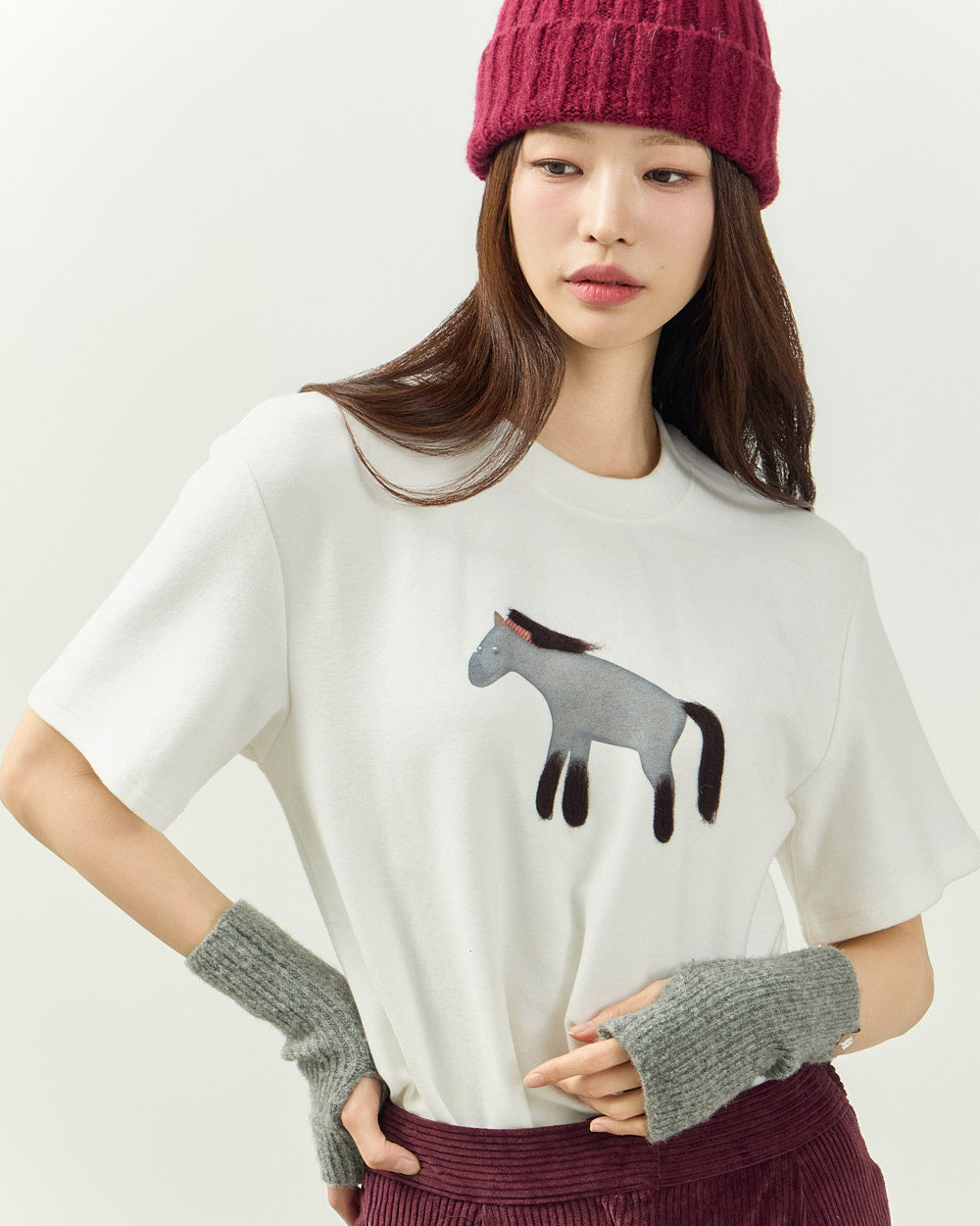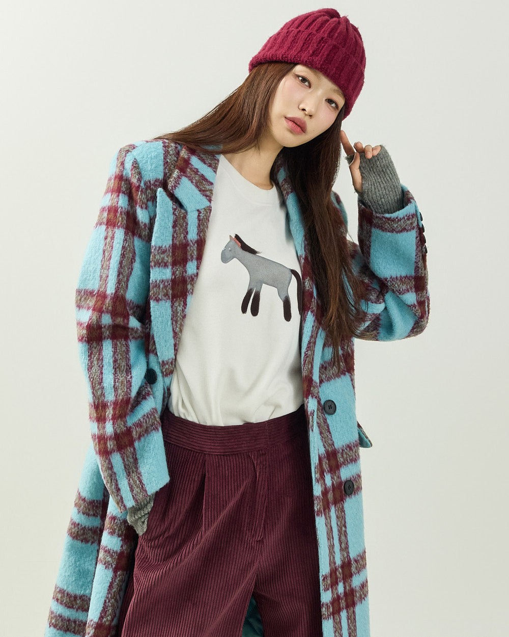 It easily pairs with a variety of bottoms, including denim, corduroy pants, and knit skirts,