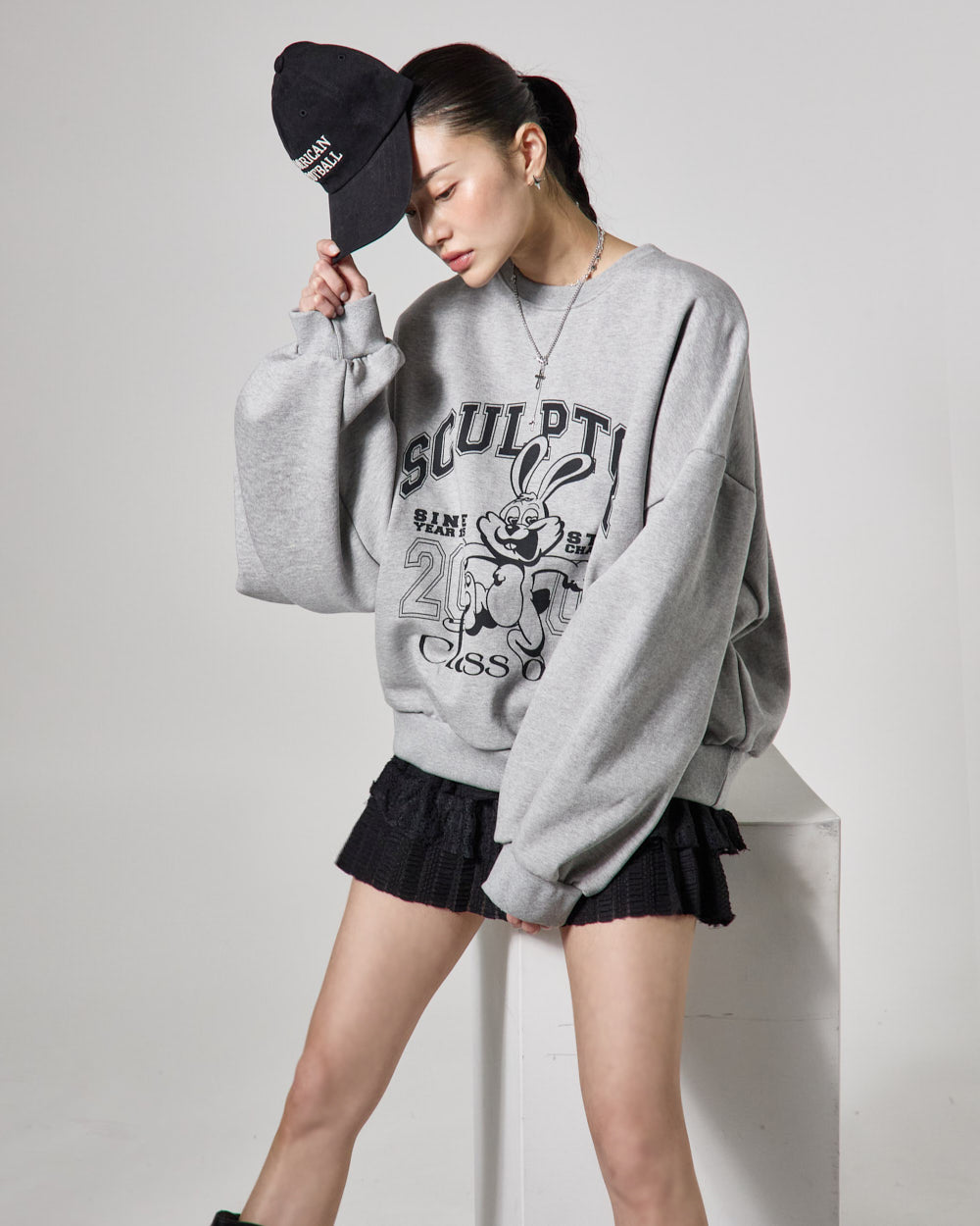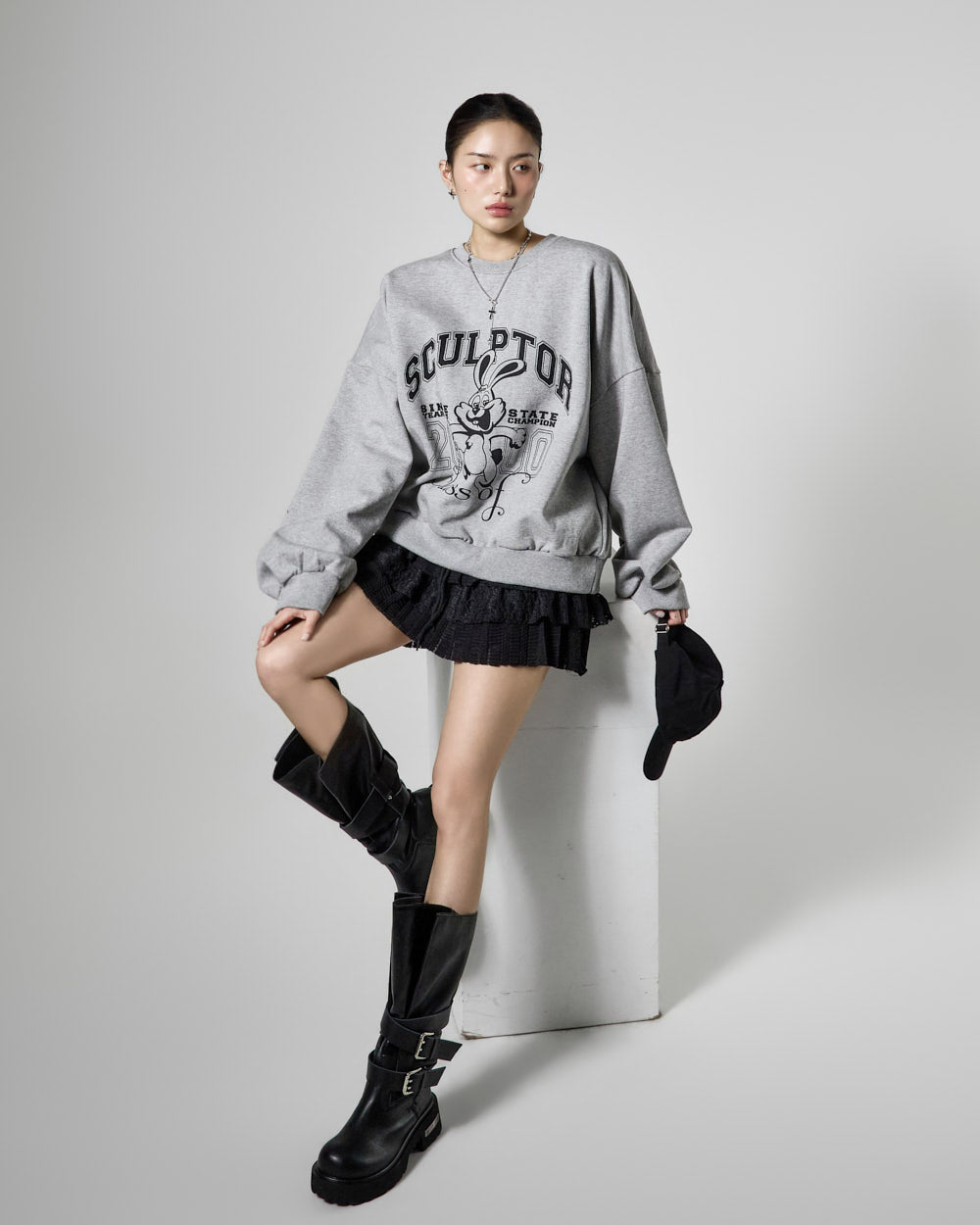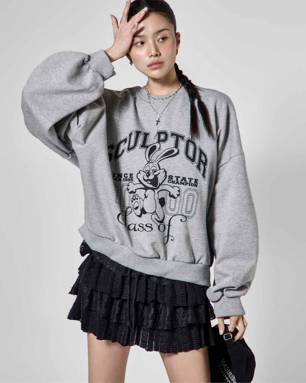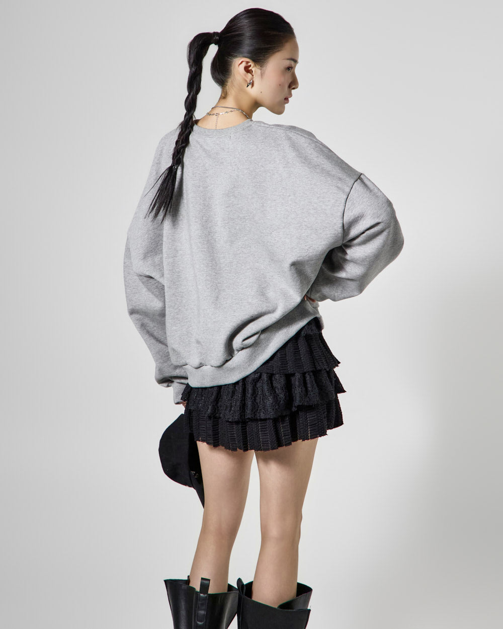 The 171cm model is wearing size ONE in GRAY.