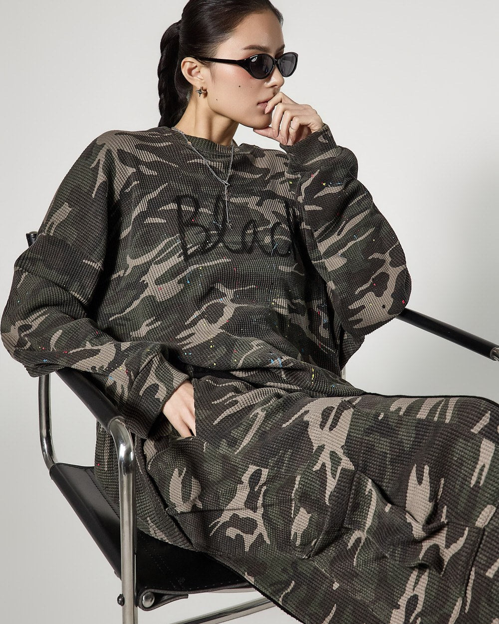 The loose fit creates a naturally flowing silhouette,