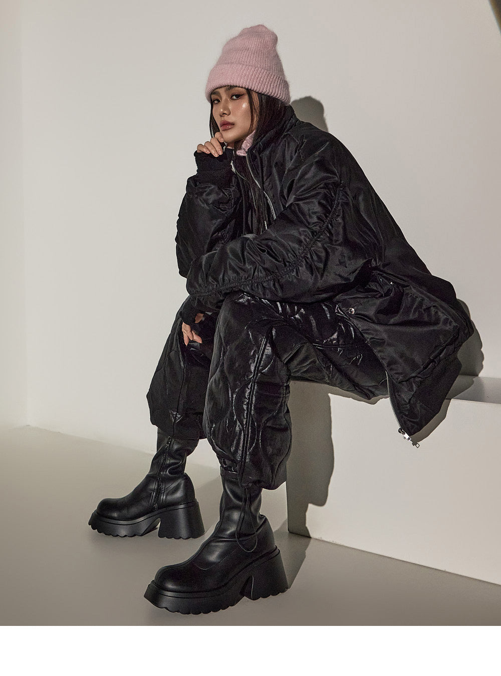 The semi-high neck adds an extra layer of warmth, making it ideal for cooler days.