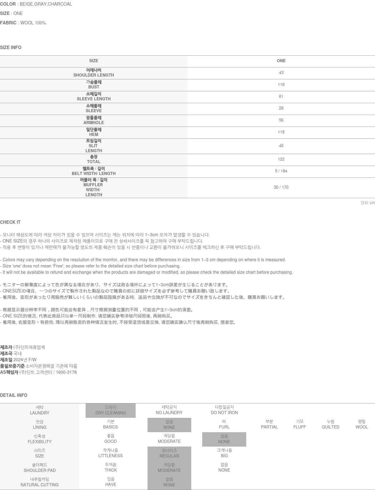 The model, 174cm tall, is wearing the ONE size in CHARCOAL.