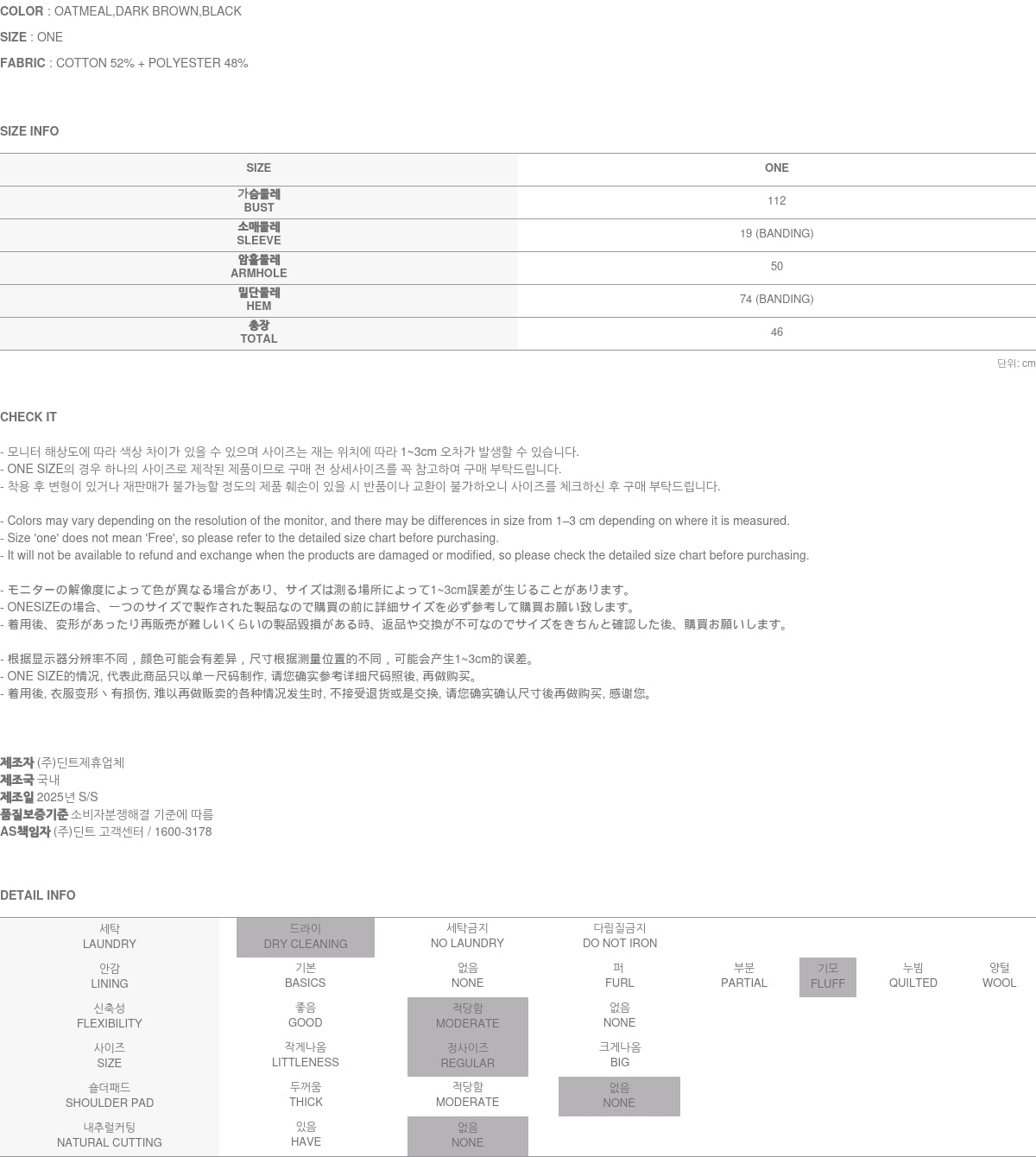 Clothing from DINT Co., Ltd. may become damaged or deformed if machine washed or tumble dried. We strongly recommend following the care instructions provided below.