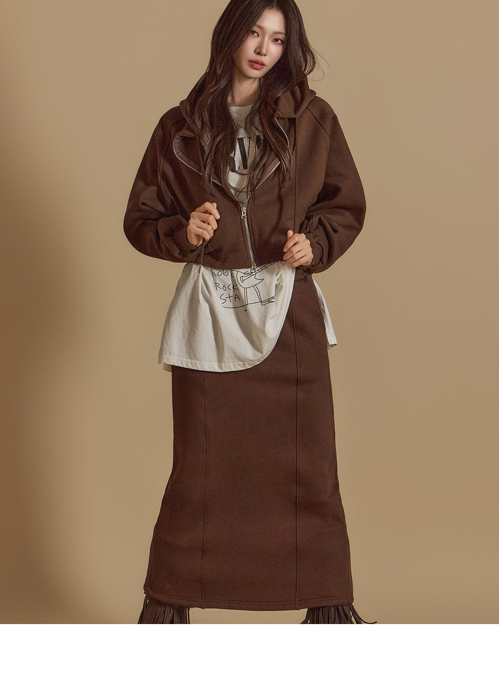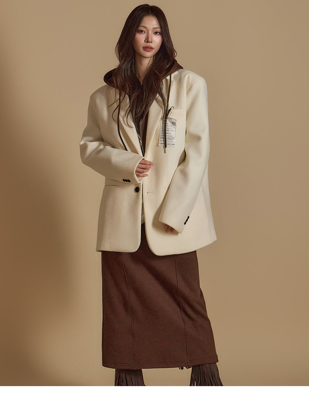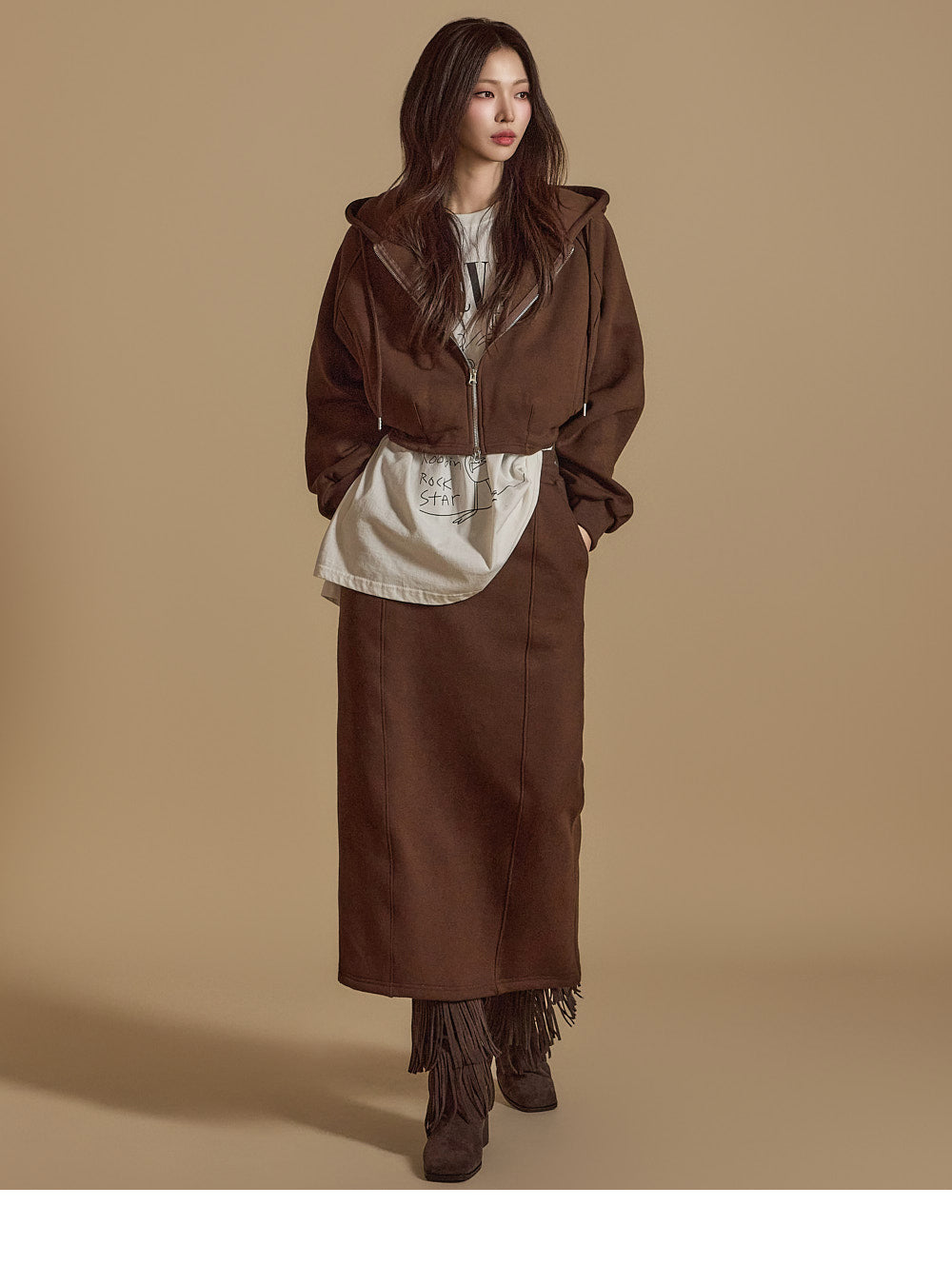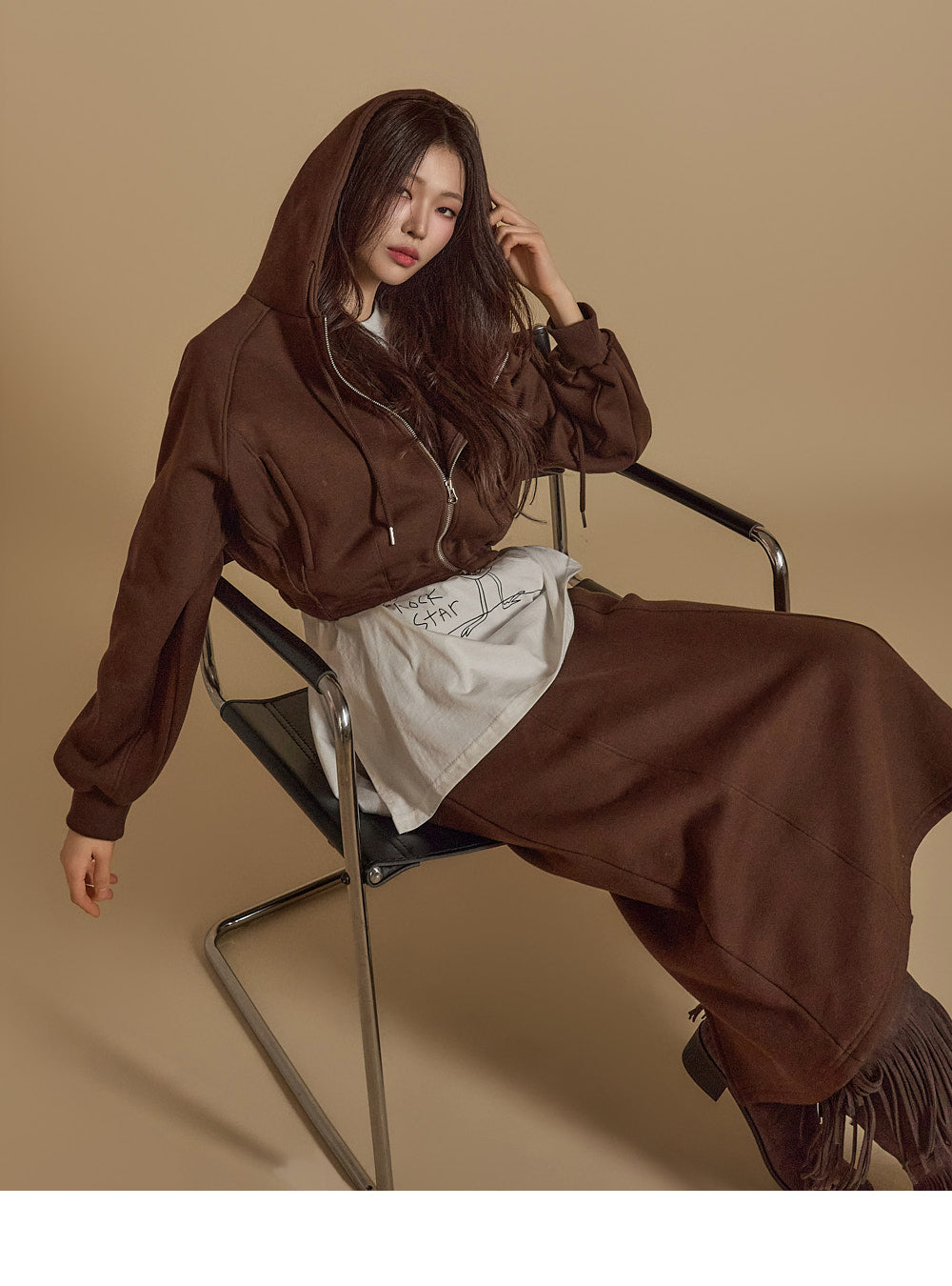 is wearing the ONE SIZE in Dark Brown.