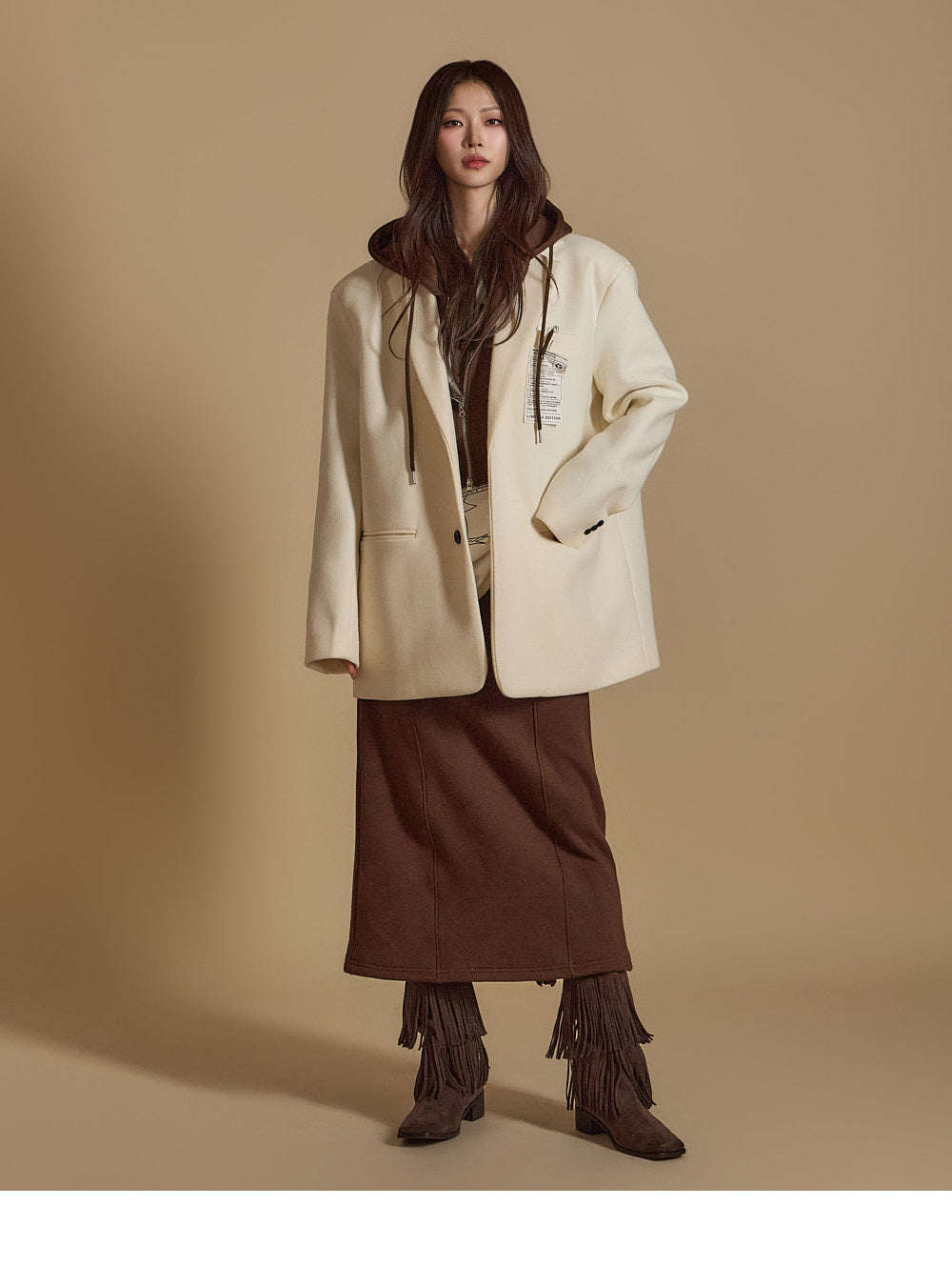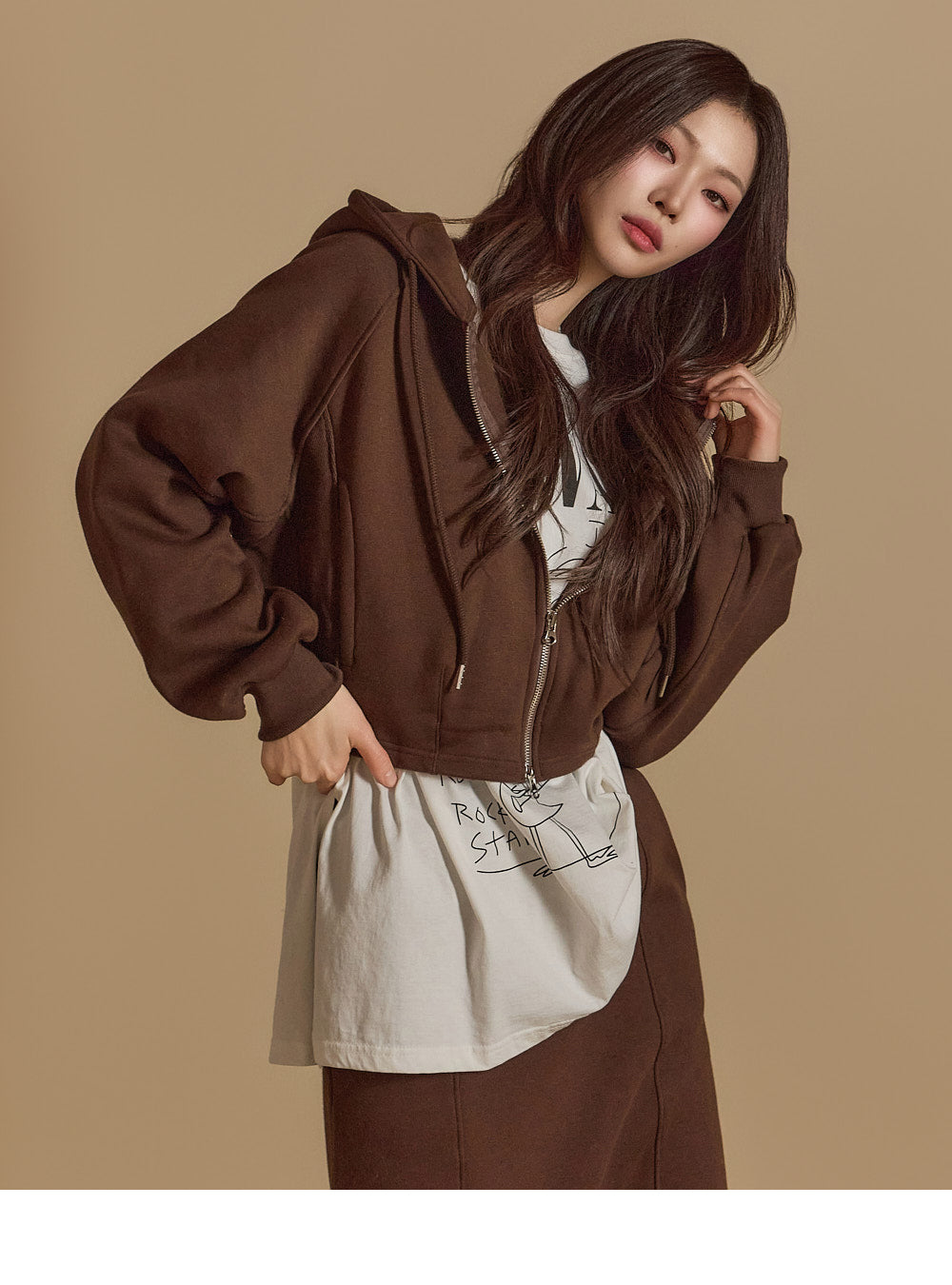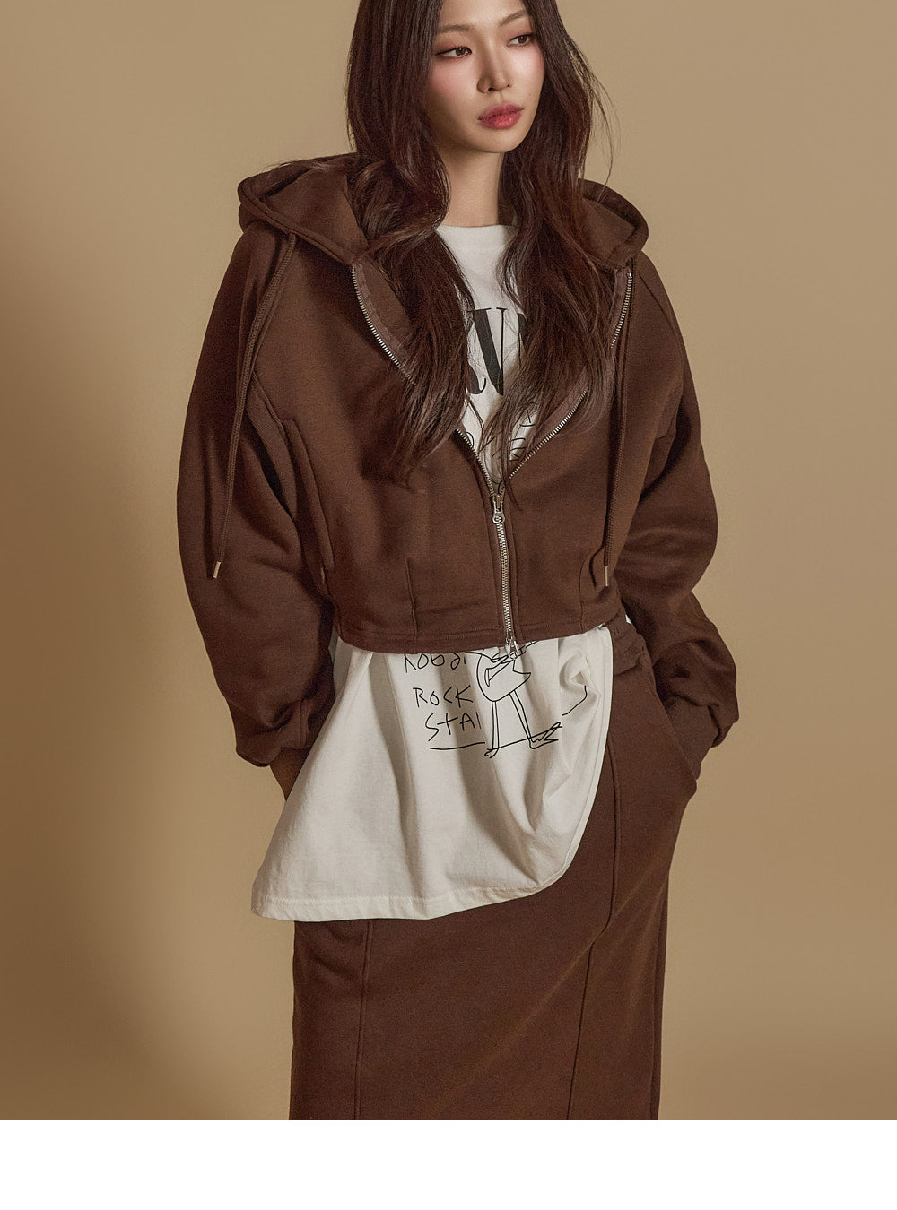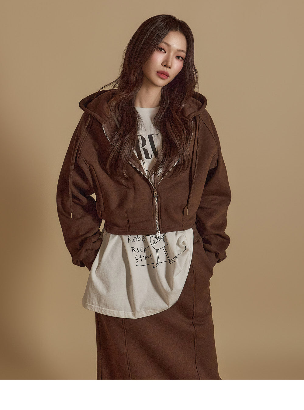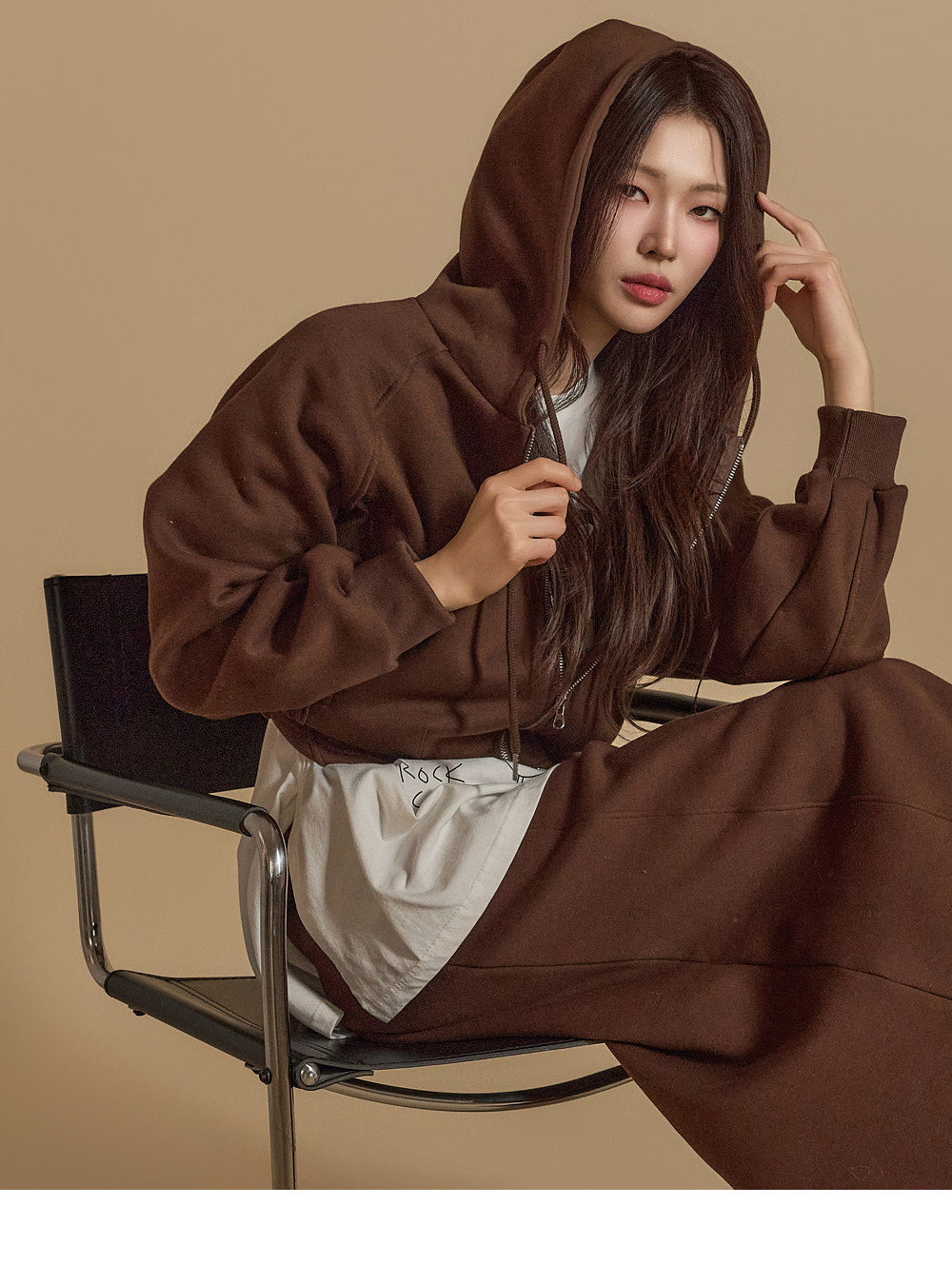 is wearing the ONE SIZE in Dark Brown.