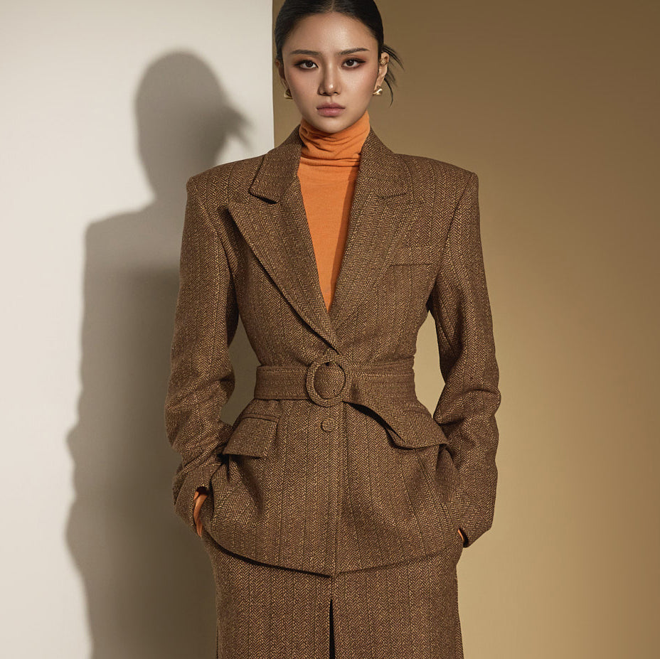 Paired with a matching fabric belt, this set elevates the overall outfit,