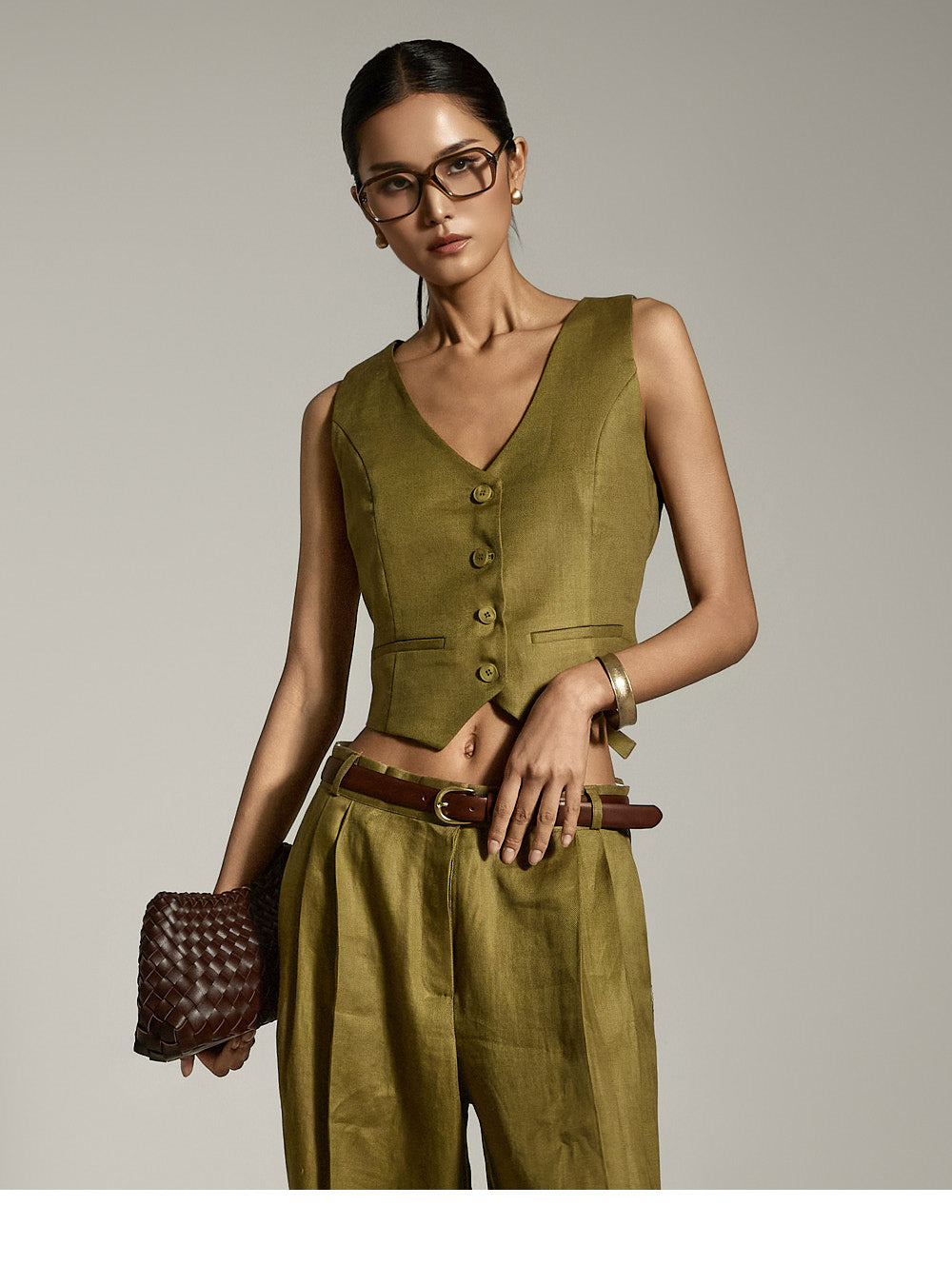 The cropped, high-low hemline adds a modern twist to the silhouette,