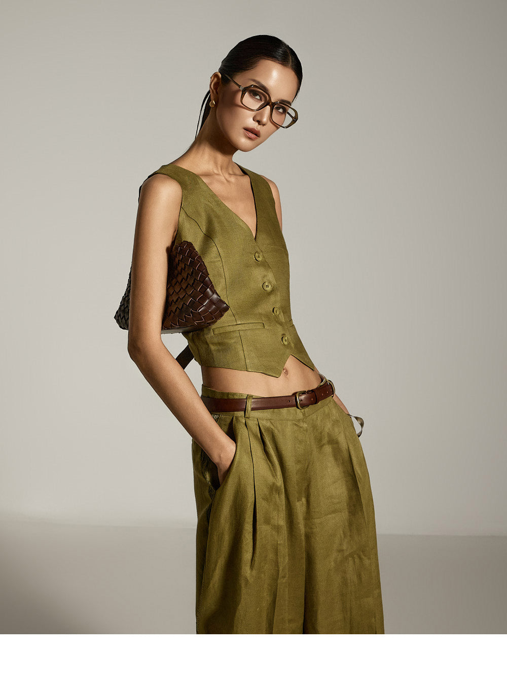 The model is 173cm tall and is wearing ONE size in KHAKI.