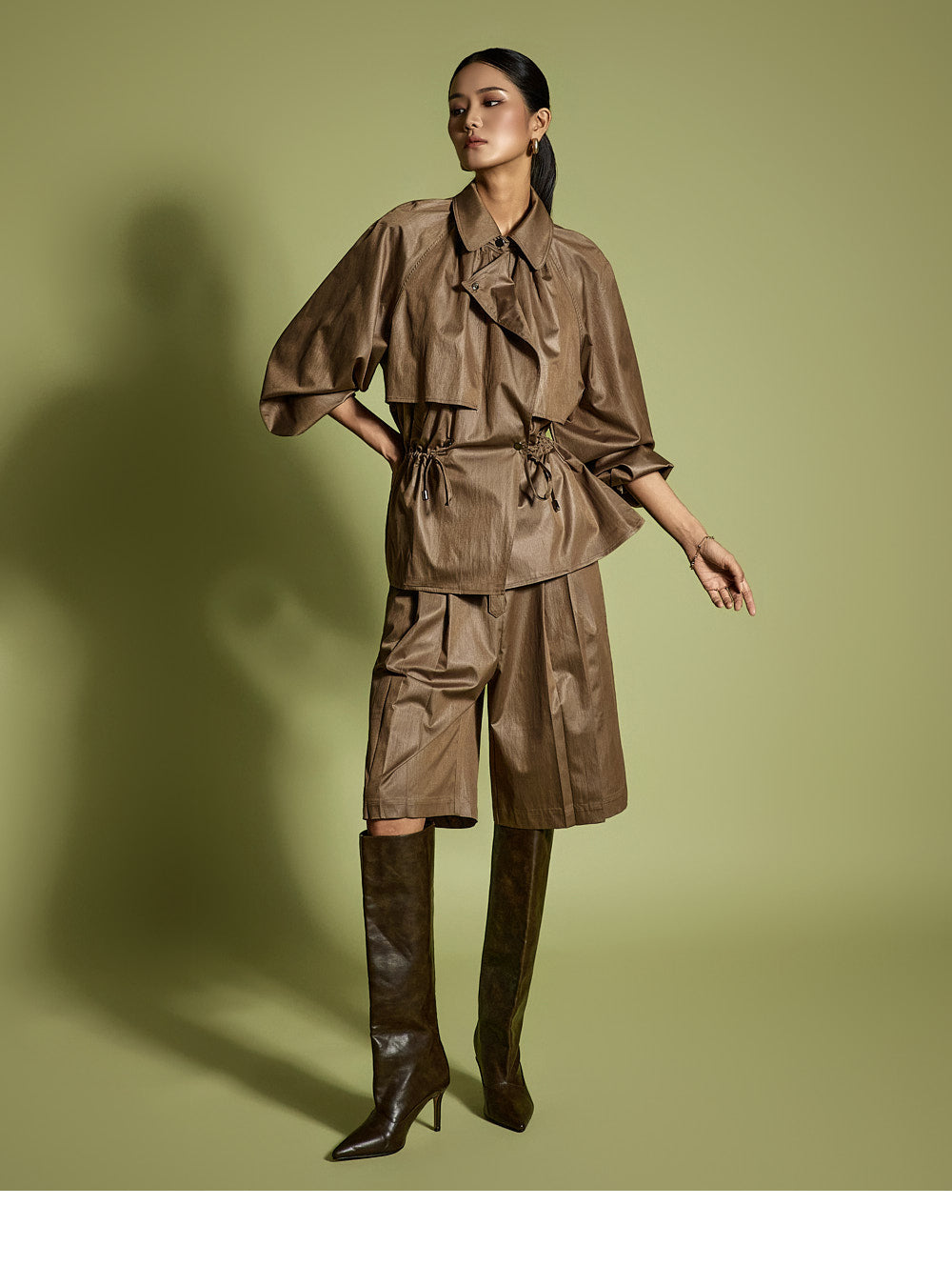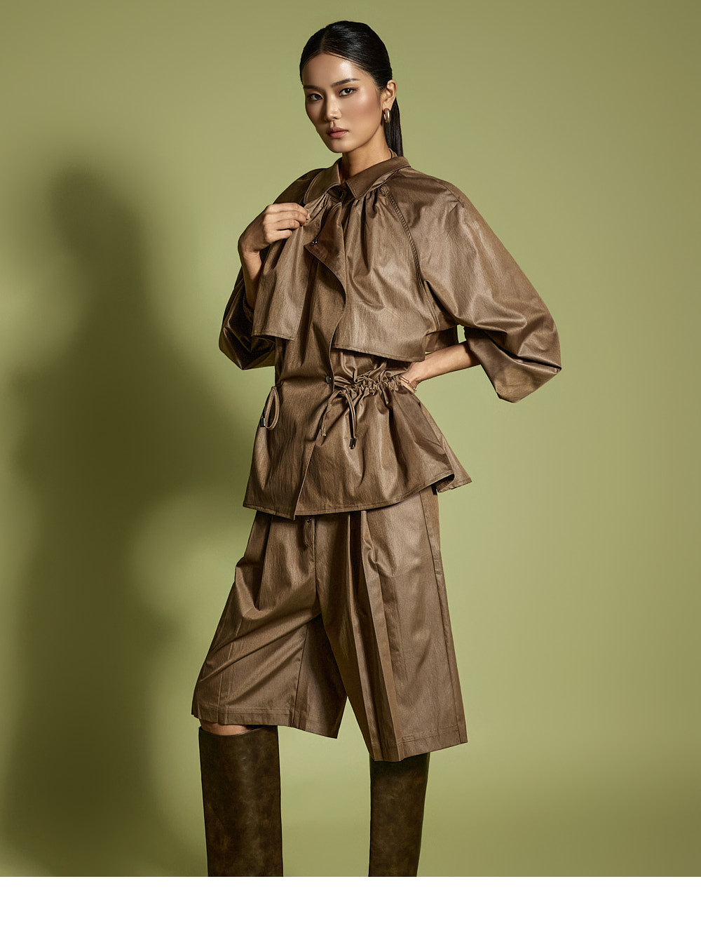 Denim (jeans, coated jeans) and other dark-dyed garments may experience color fading or transfer. Please take extra care before the first wash and while wearing them.