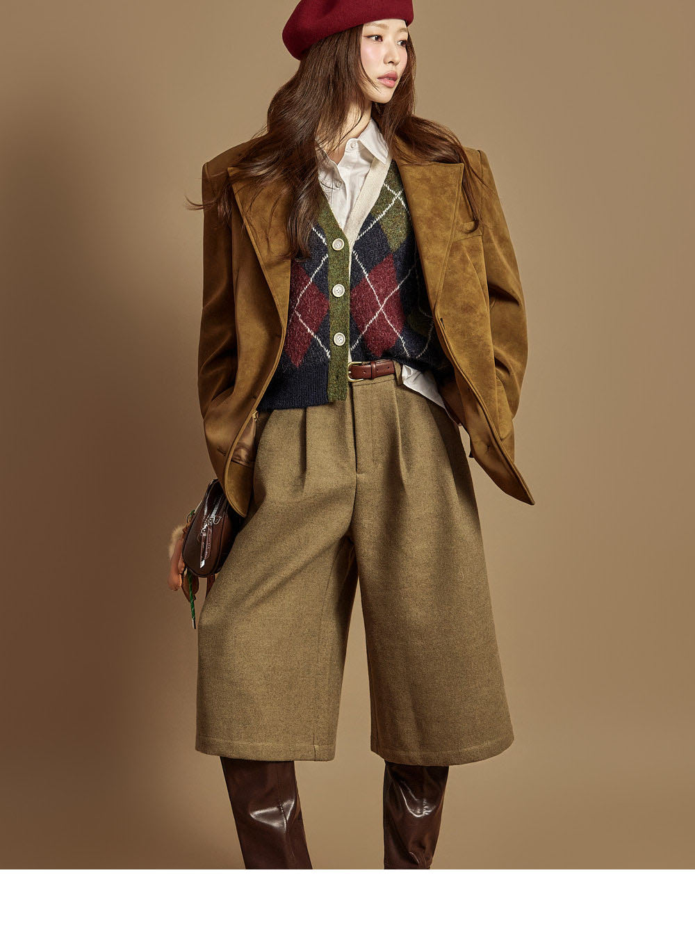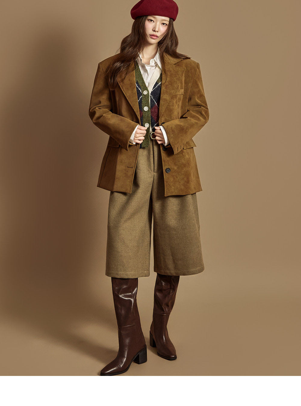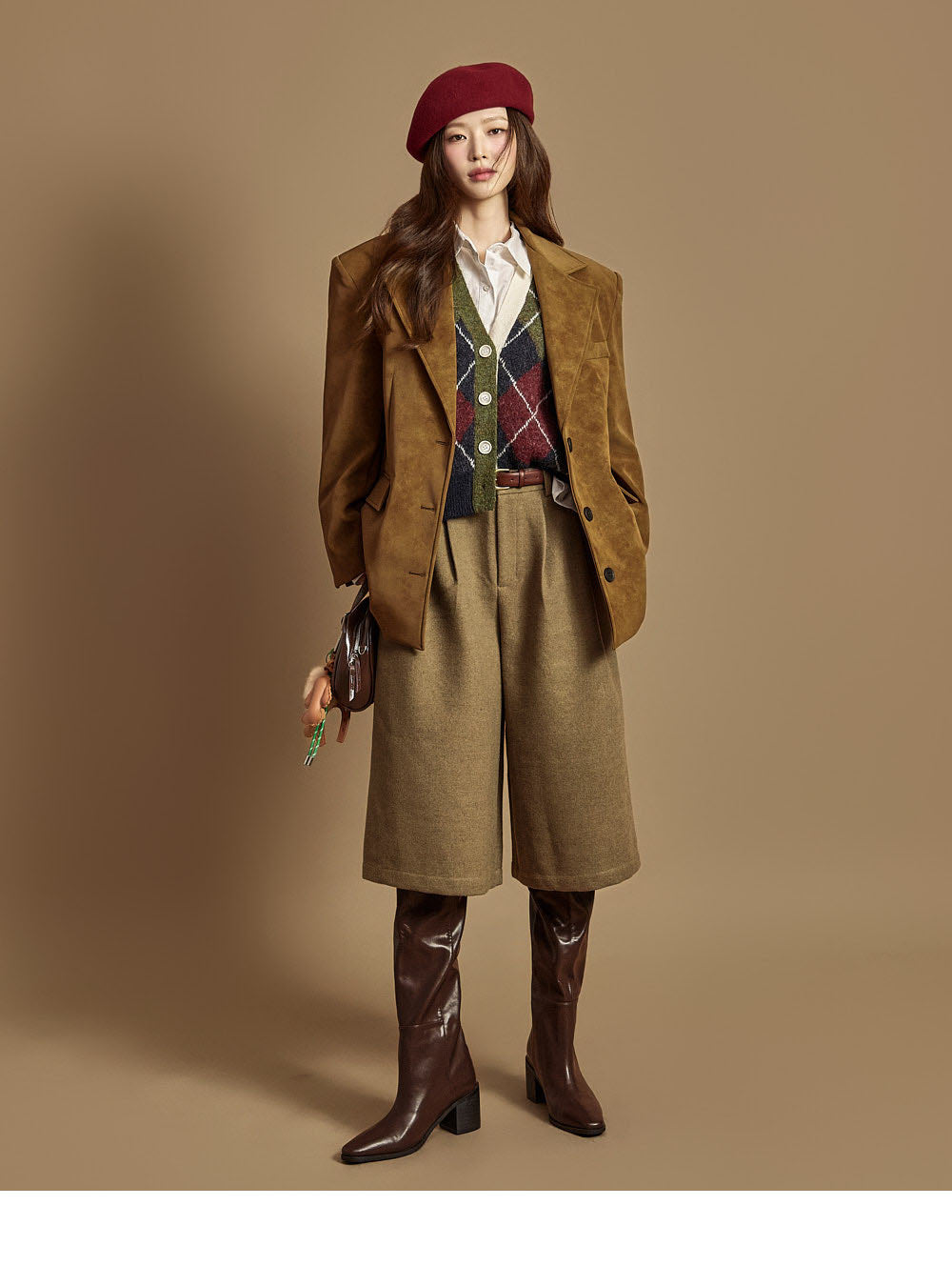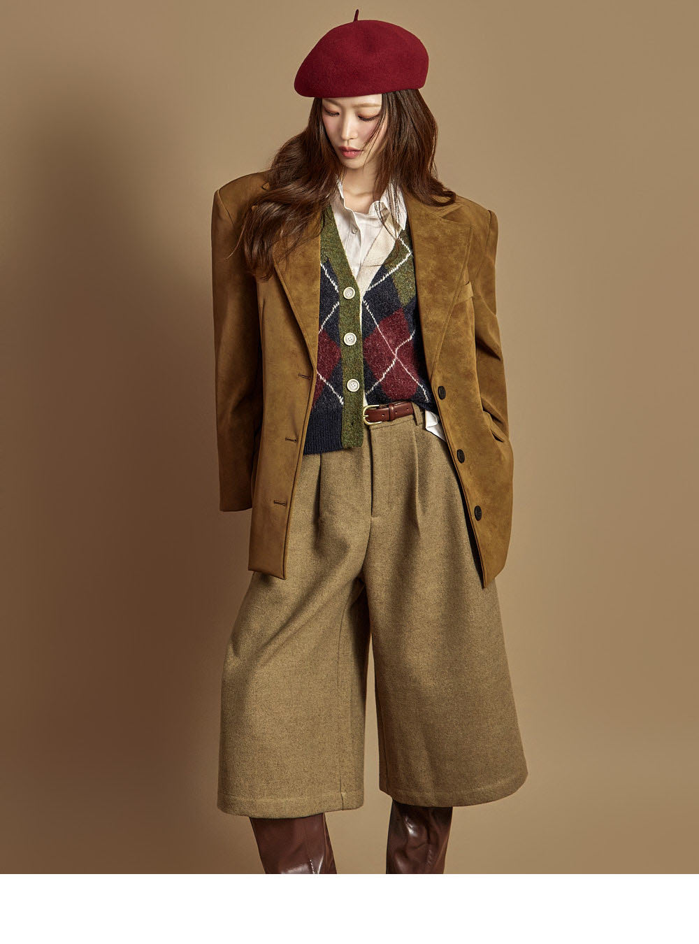 The oversized silhouette and moderate shoulder padding create a structured fit,