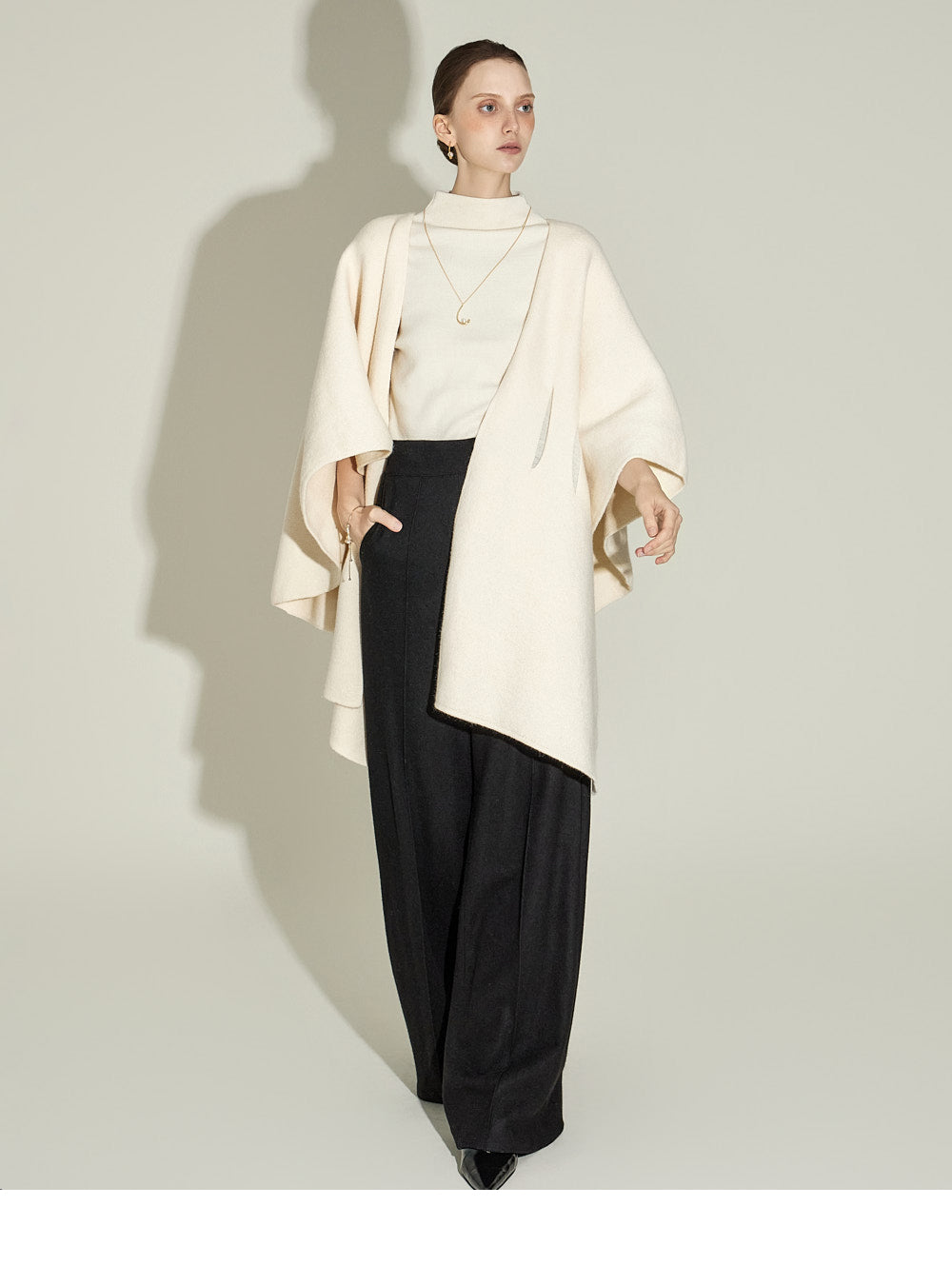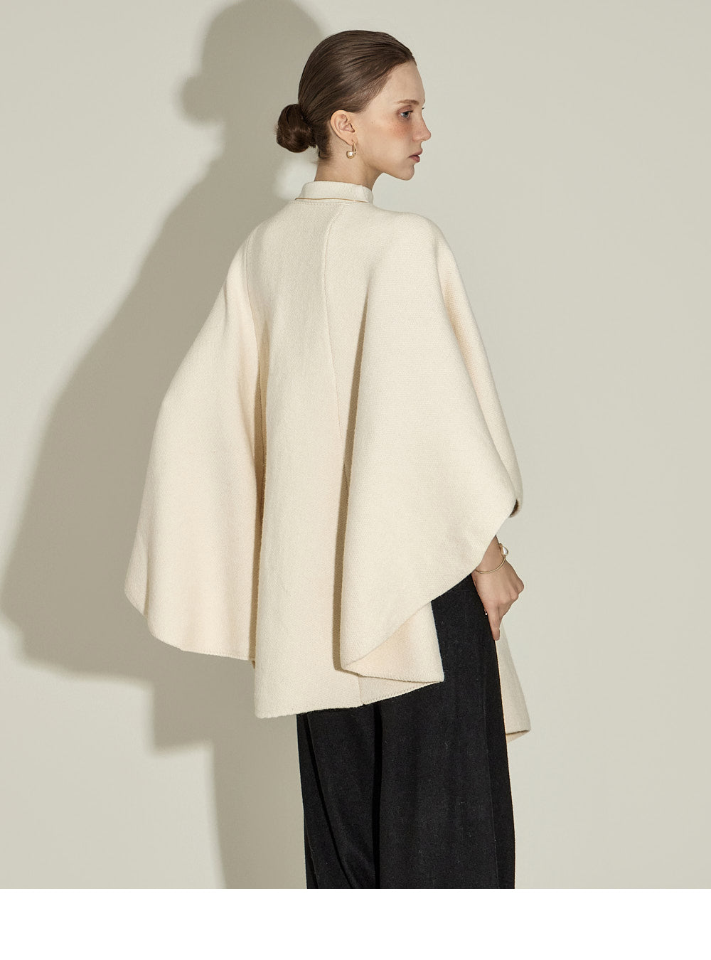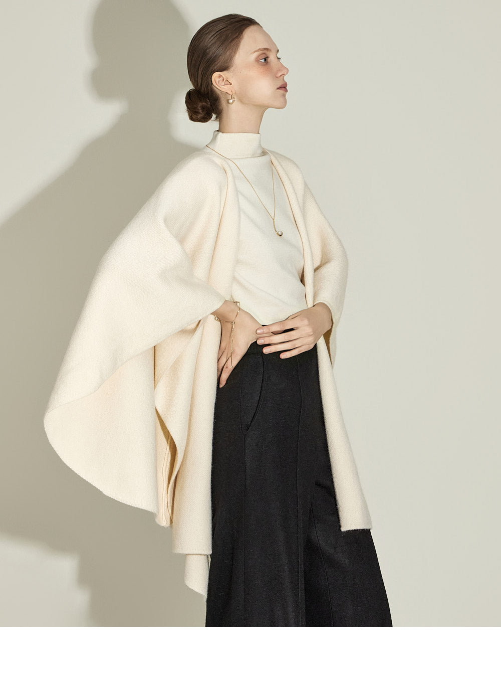 The cape-like silhouette creates an elegant atmosphere,