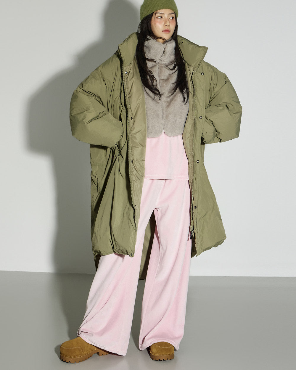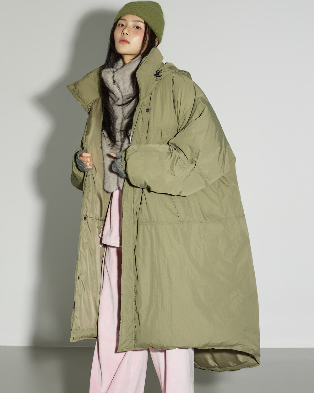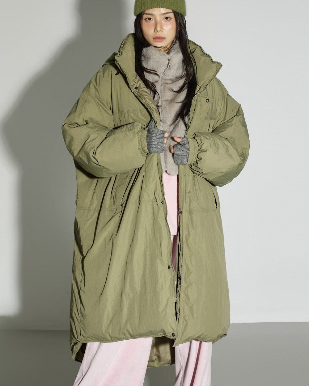 This casual duck down long padded jumper is lightweight and warm, made with nylon and filled with duck down.