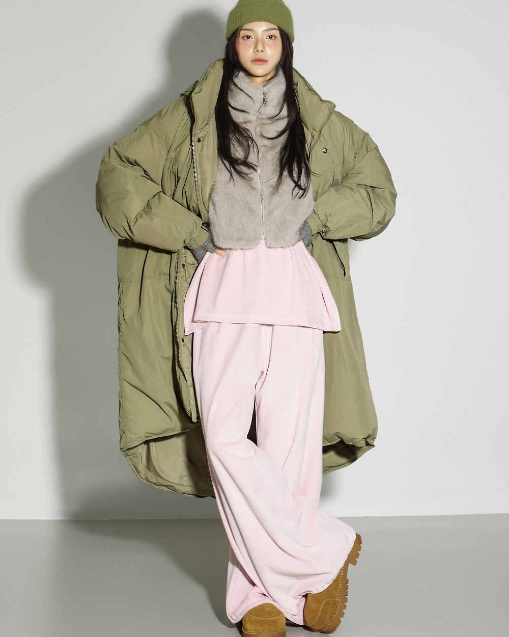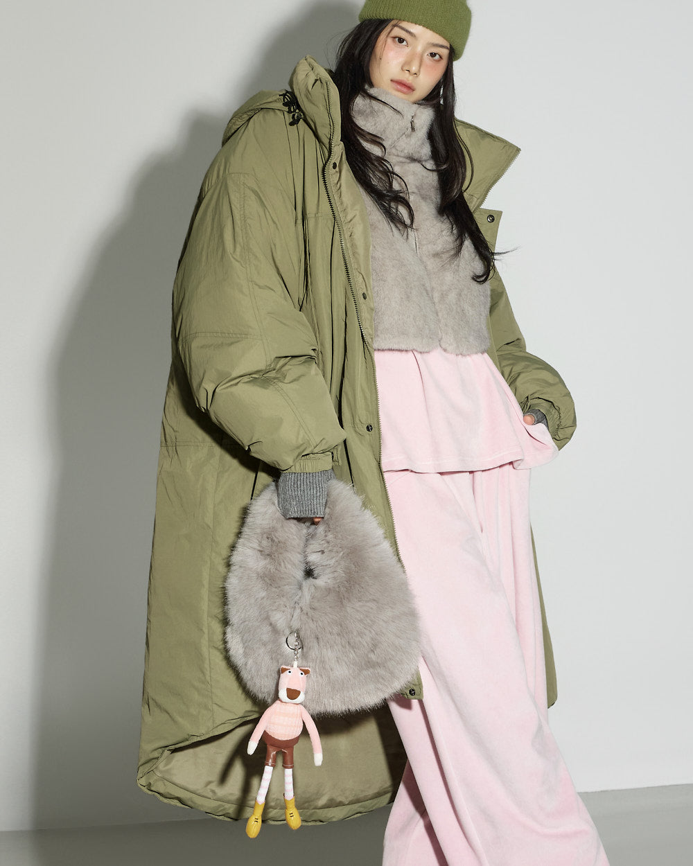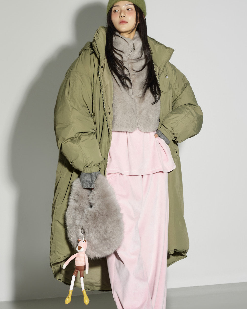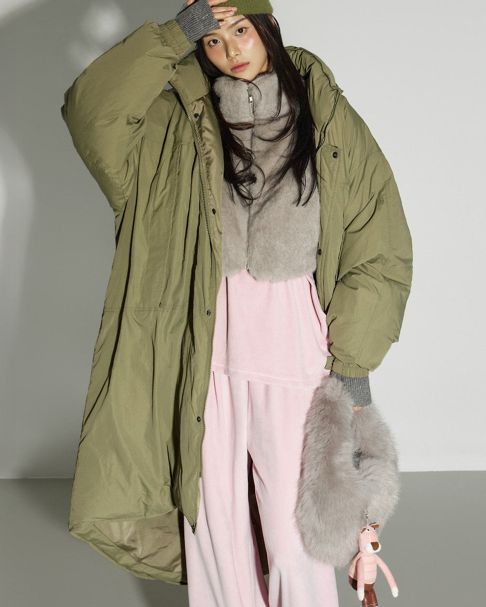 This casual duck down long padded jumper is lightweight and warm, made with nylon and filled with duck down.