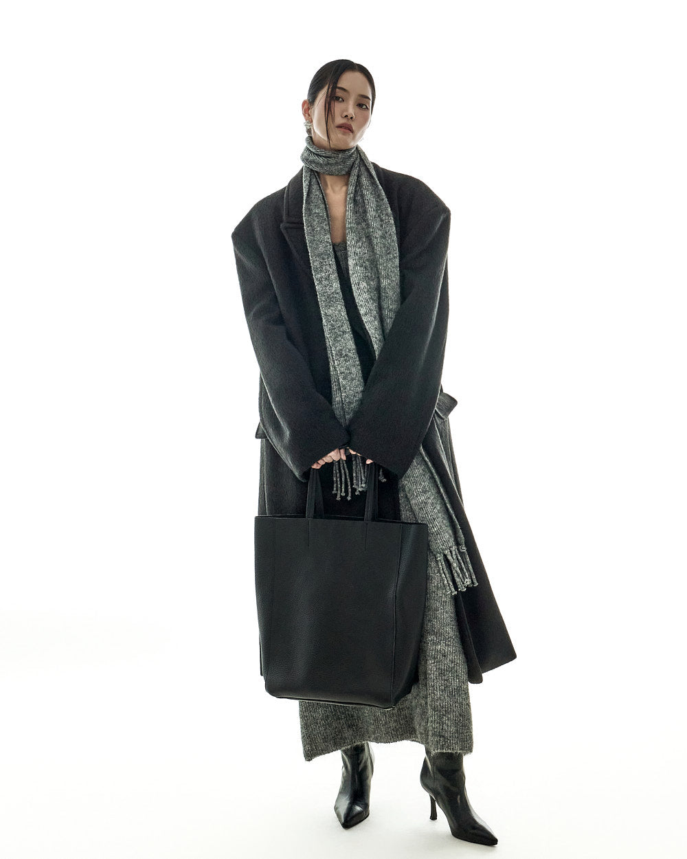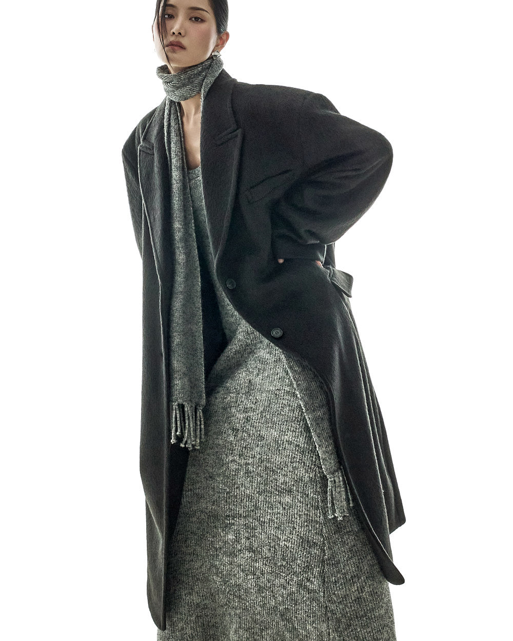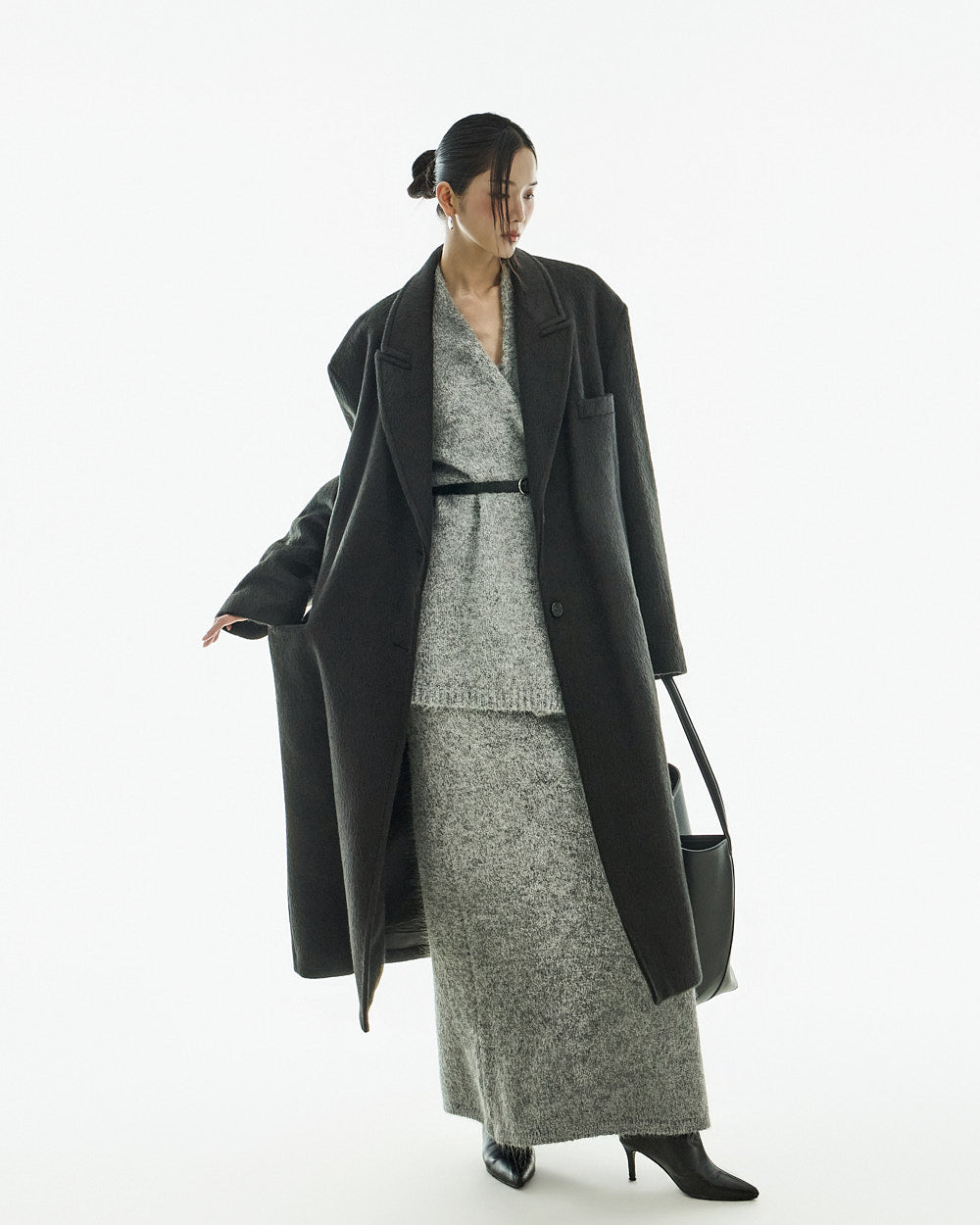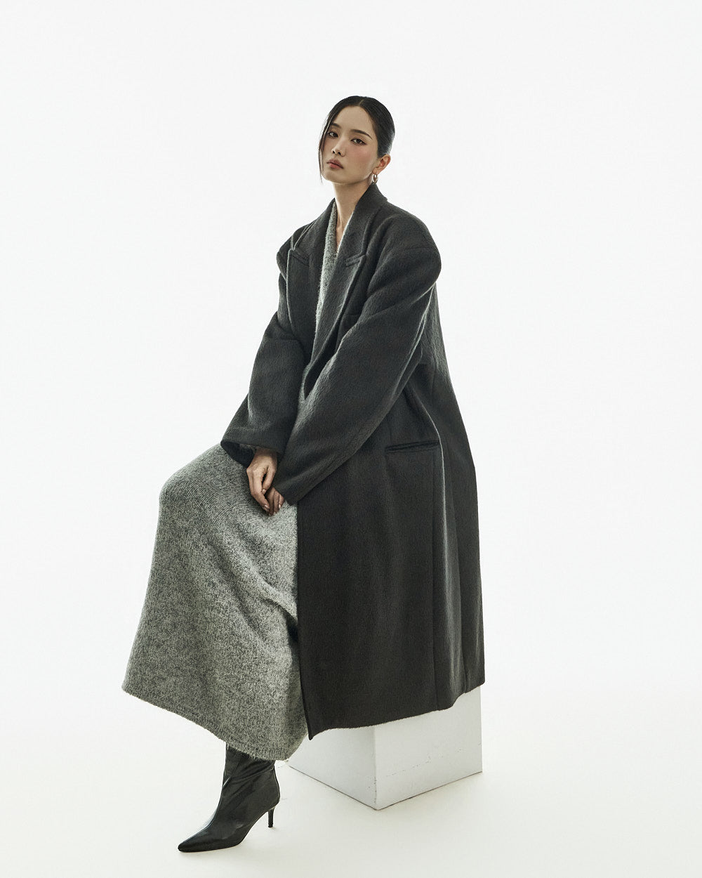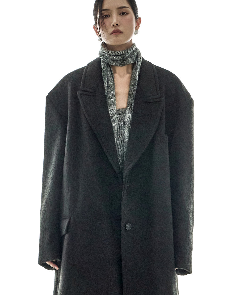 The oversized silhouette, with its tailored collar and shoulder pads,