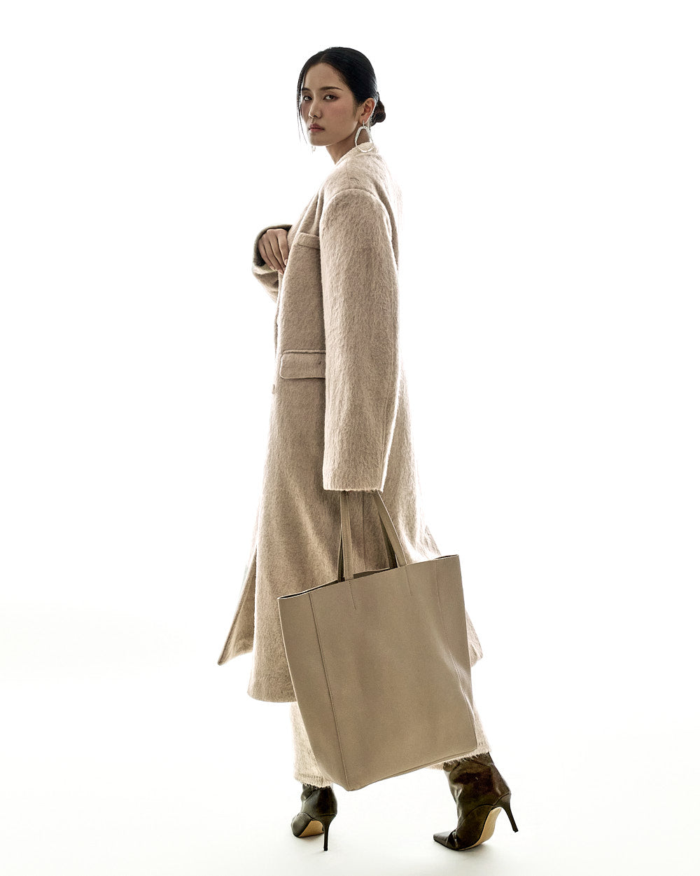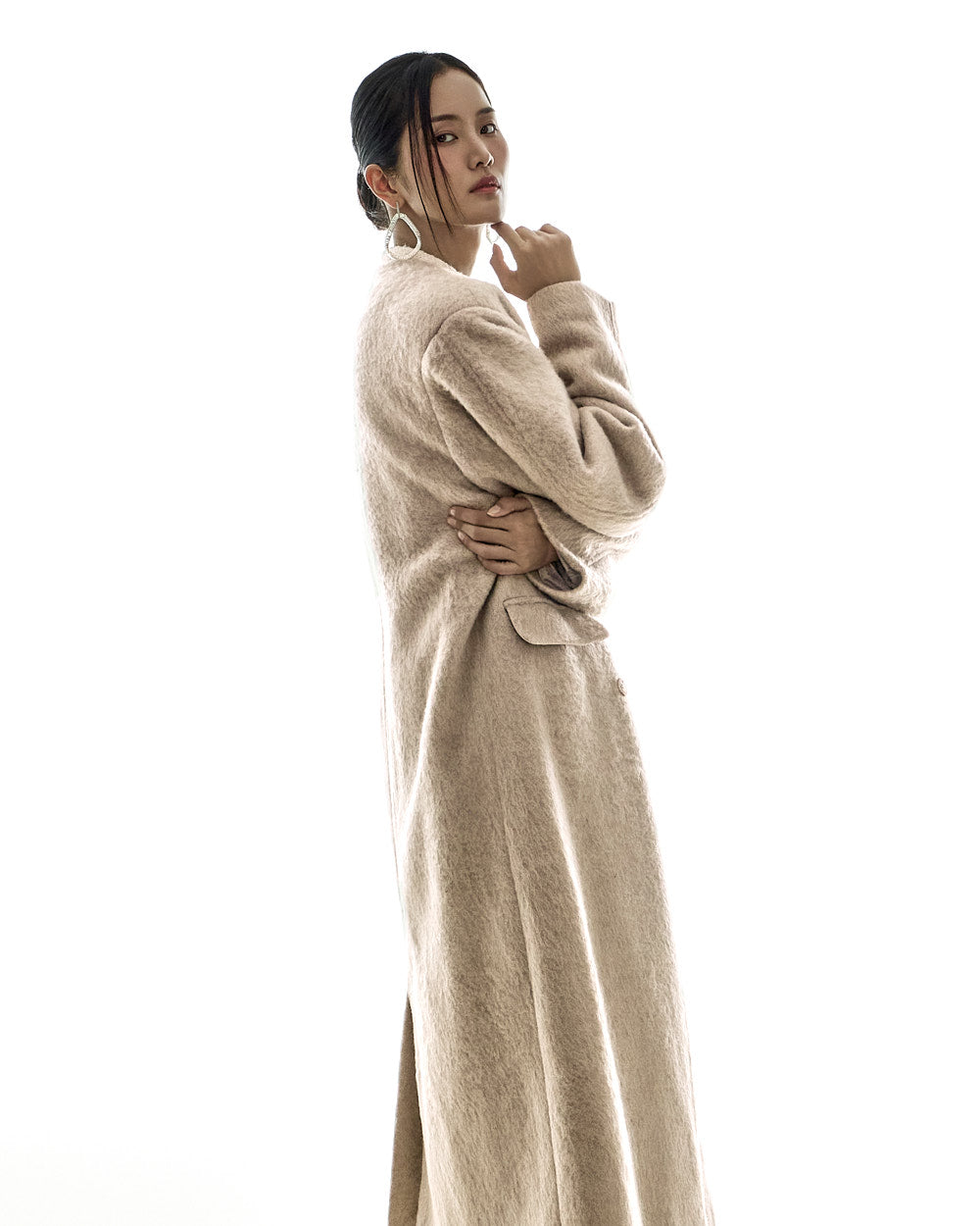 The 173cm model is wearing size ONE, beige.