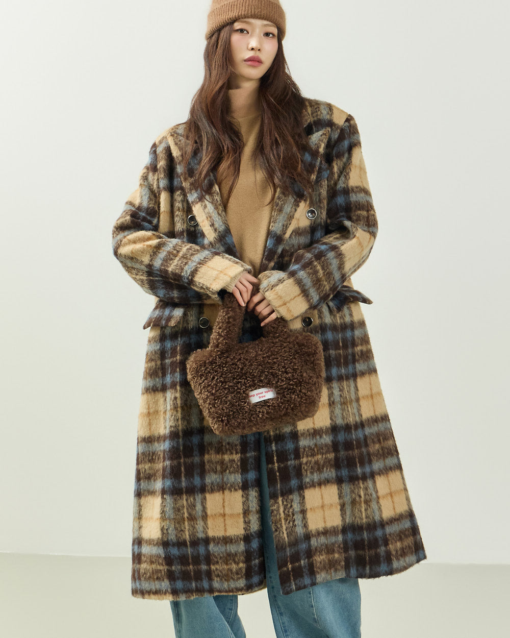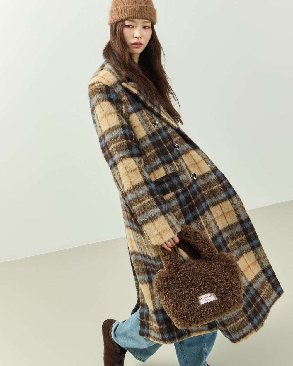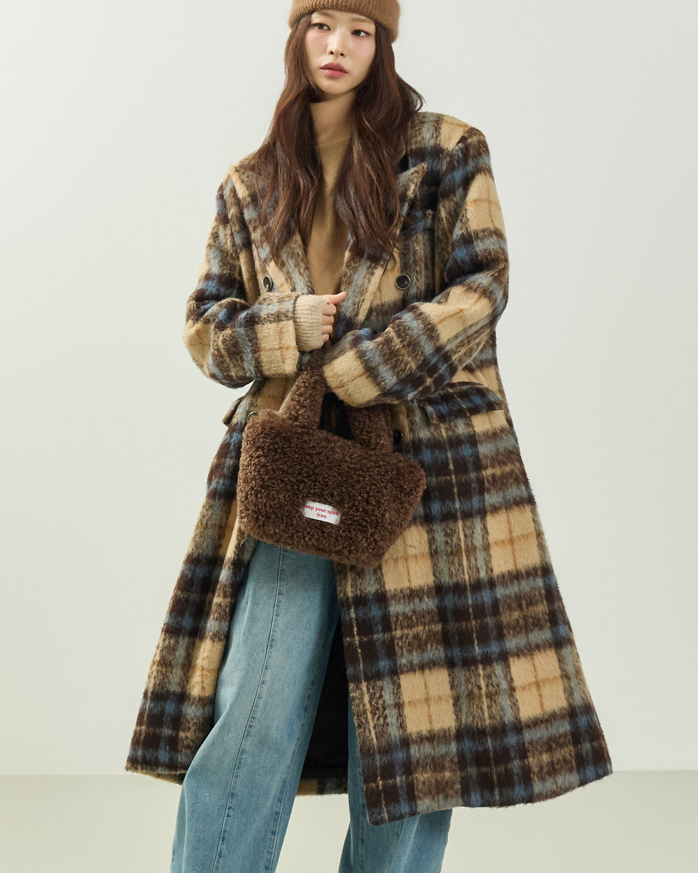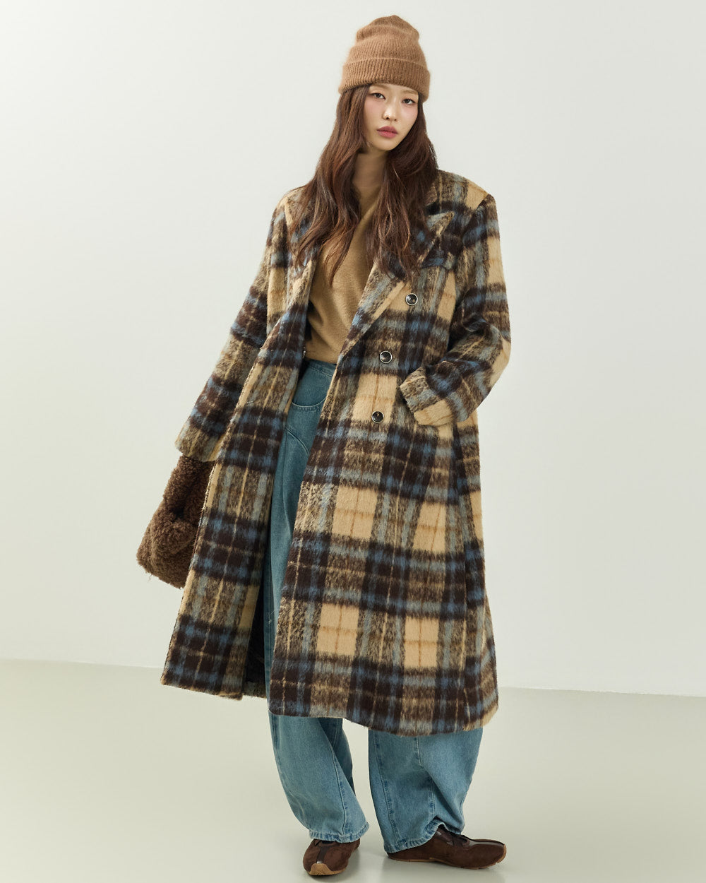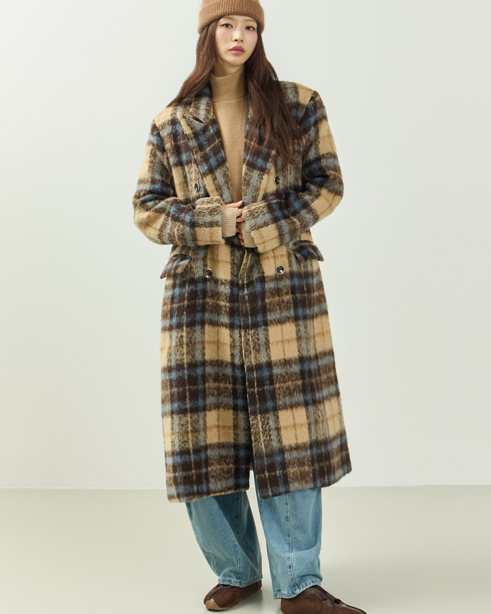 This check double-breasted coat exudes a vintage yet classic vibe.