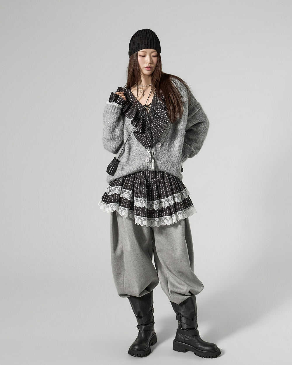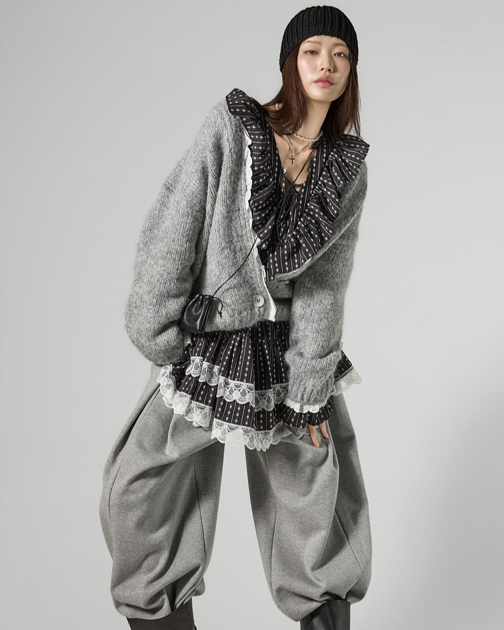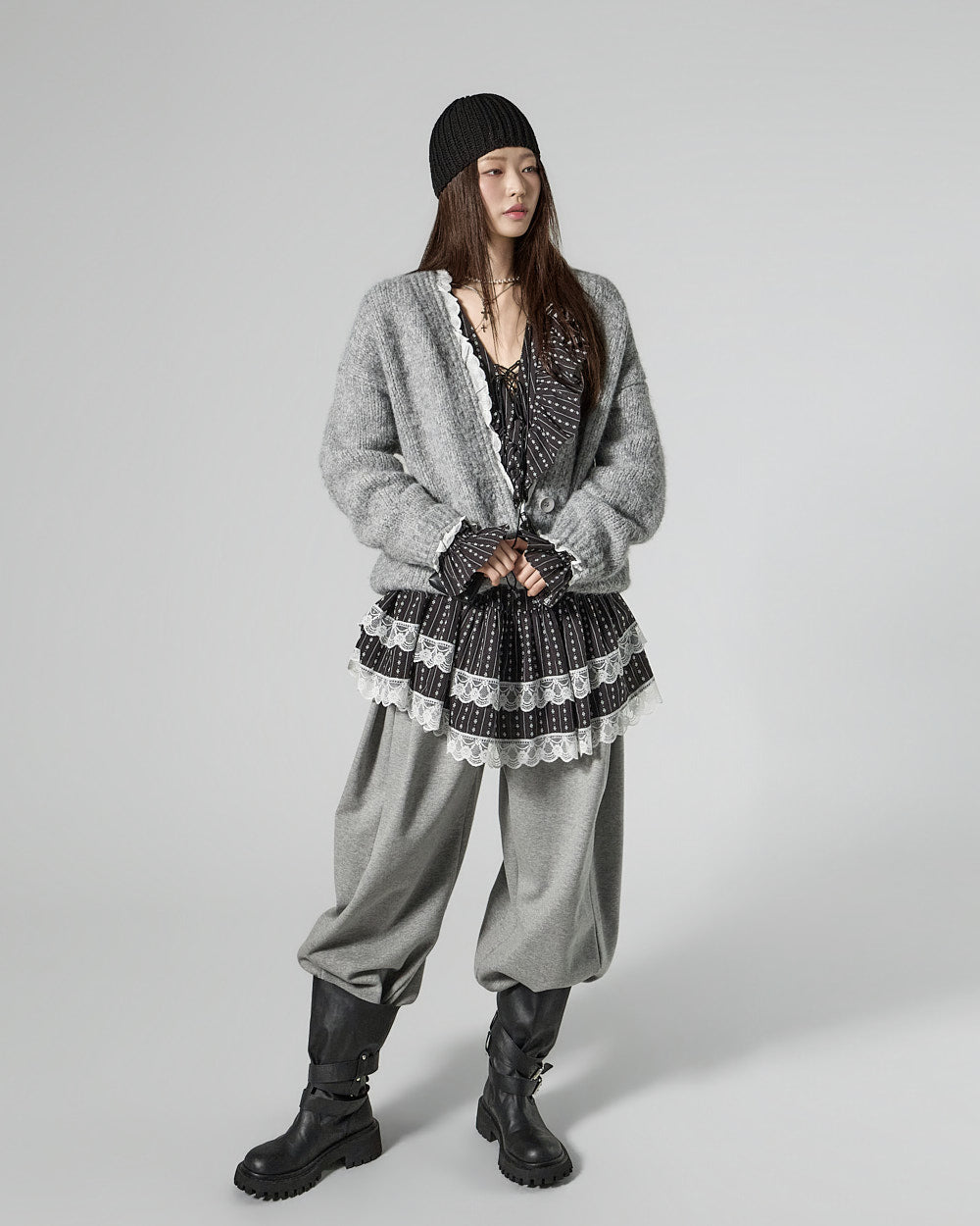 Model is 171cm tall and is wearing size ONE in GRAY.