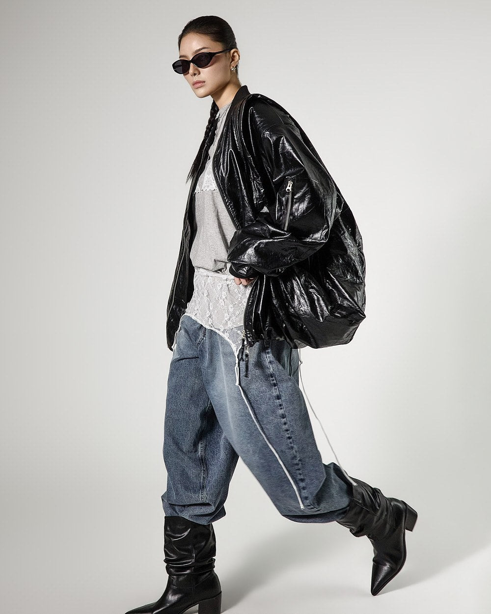 Denim (jeans, coated jeans) and other dark-dyed garments may experience color fading or transfer. Please take extra care before the first wash and while wearing them.