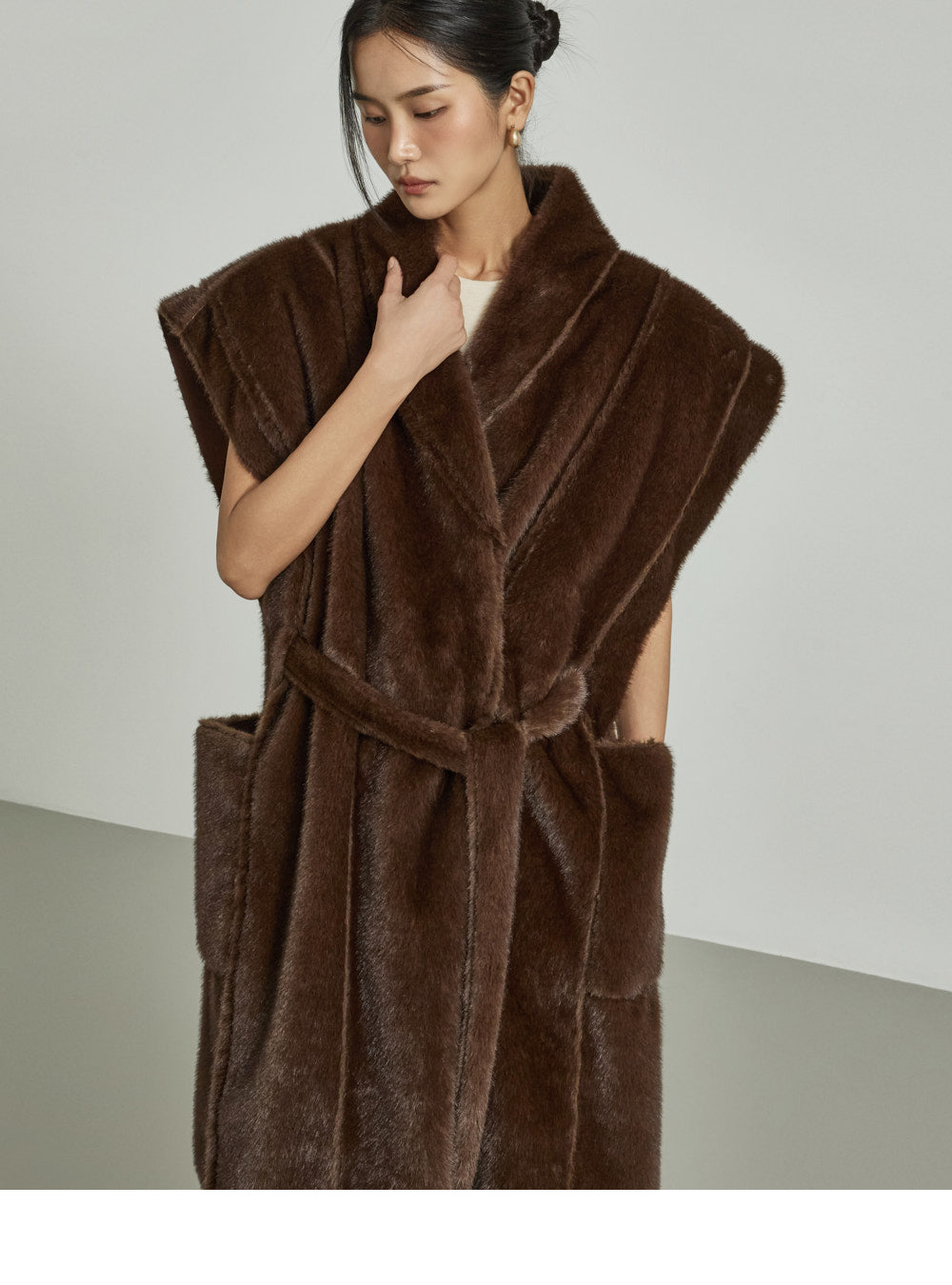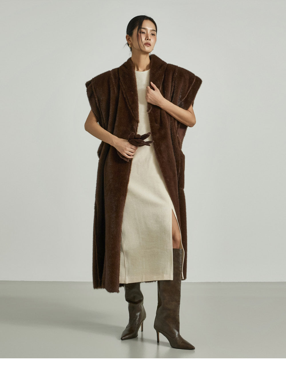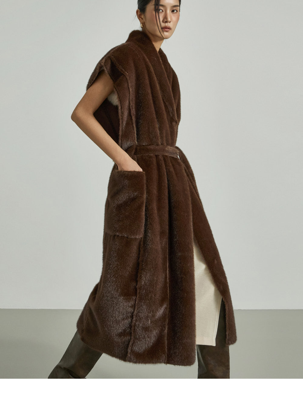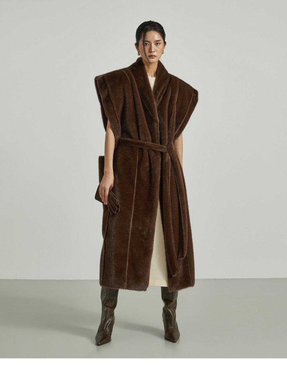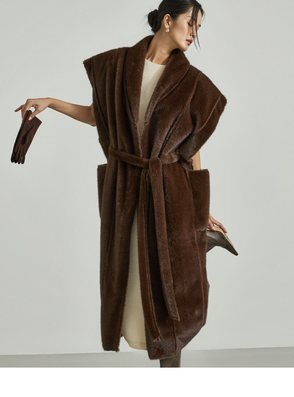 The 173cm model is wearing size ONE in DARK BROWN.