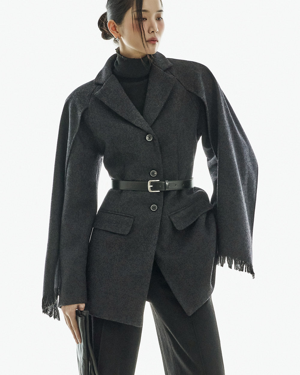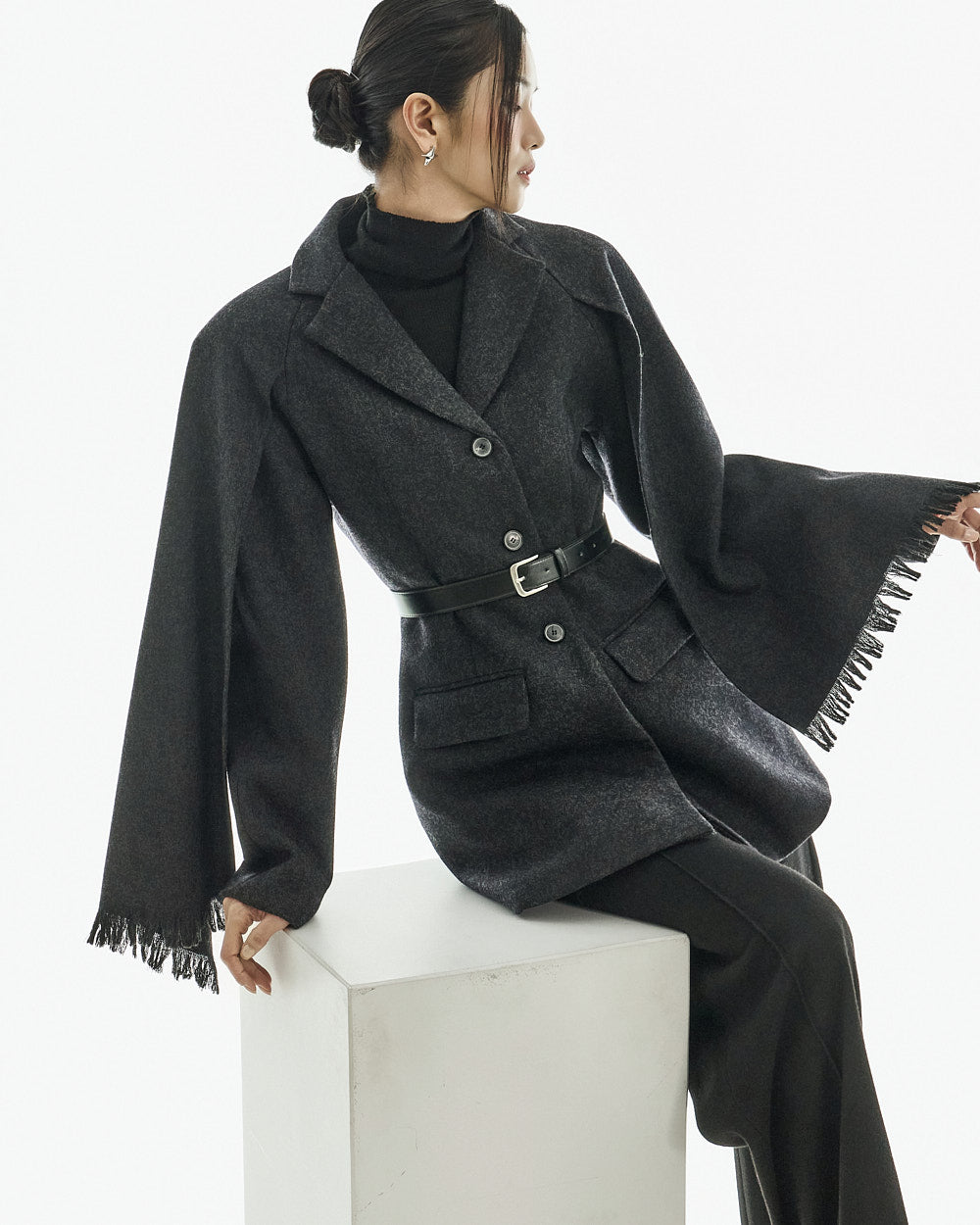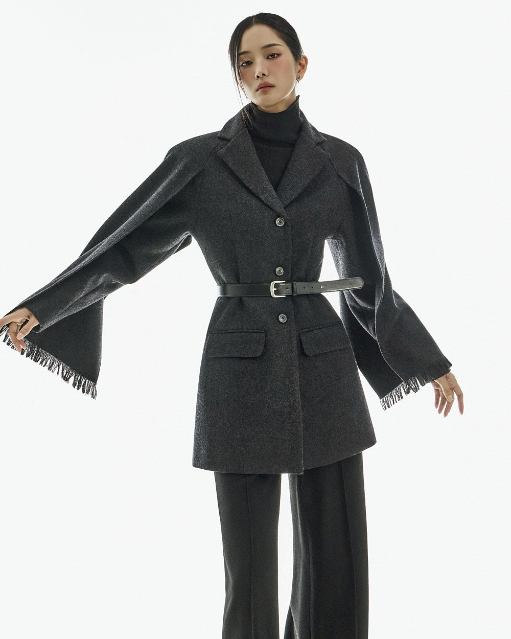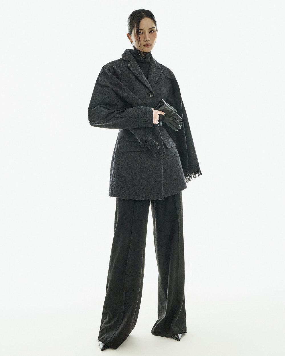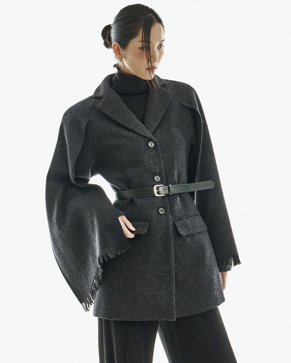 This wool coat exudes a luxurious and elegant vibe.