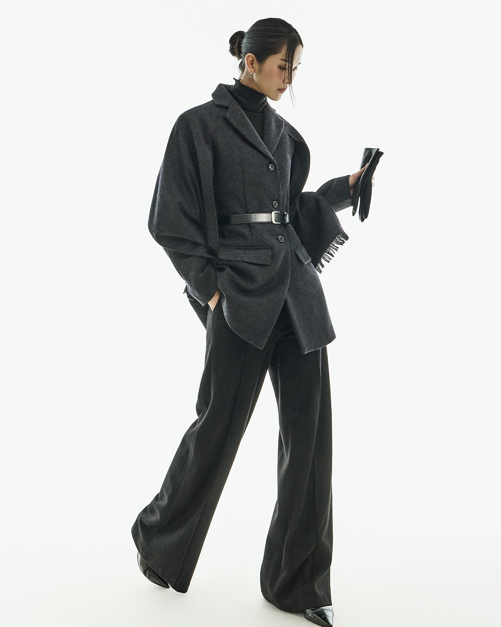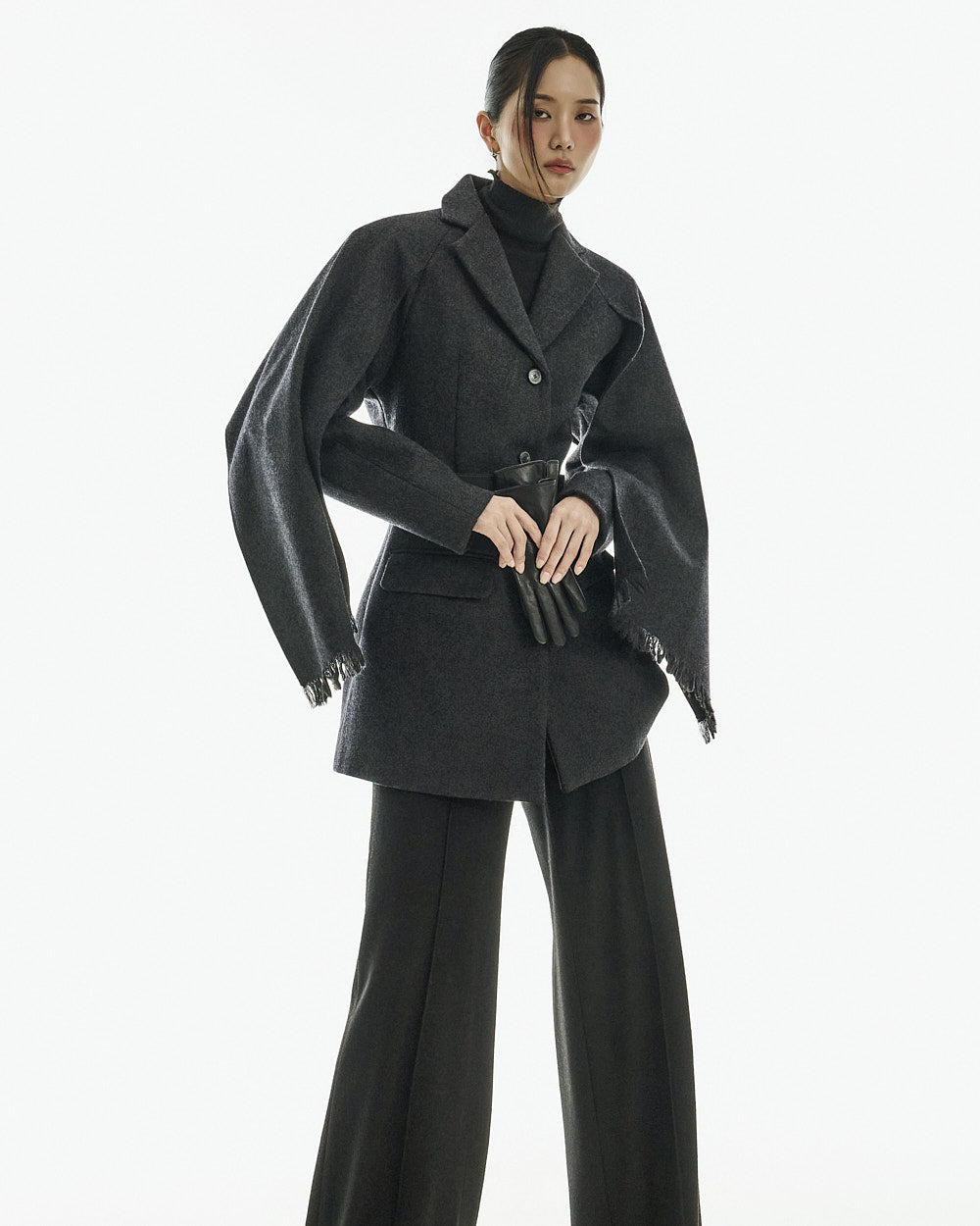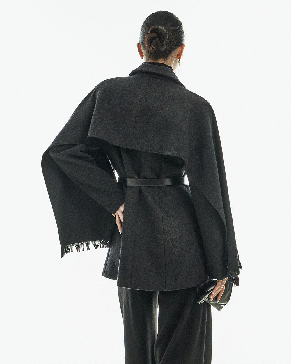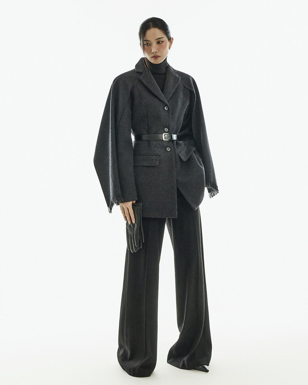This wool coat exudes a luxurious and elegant vibe.