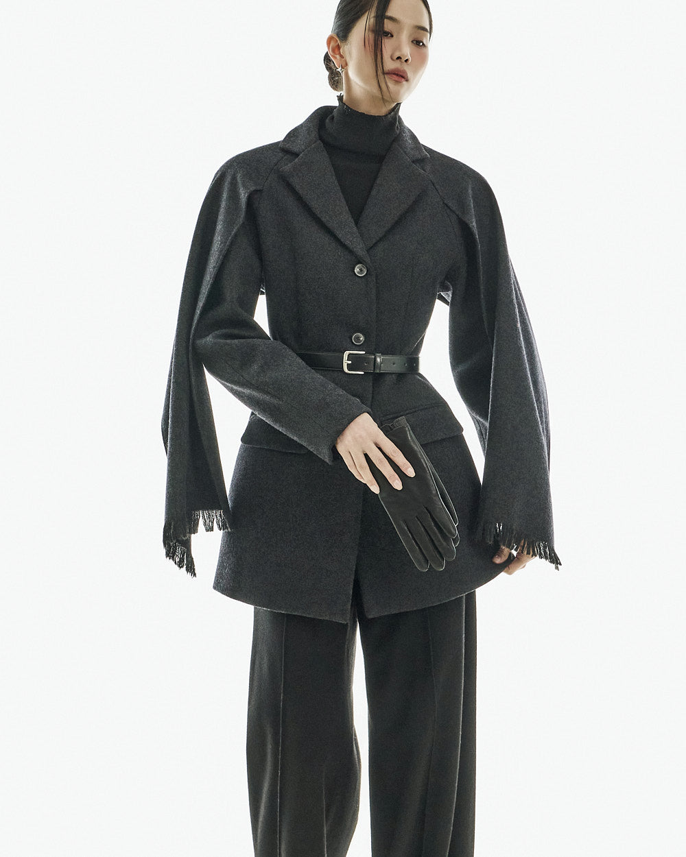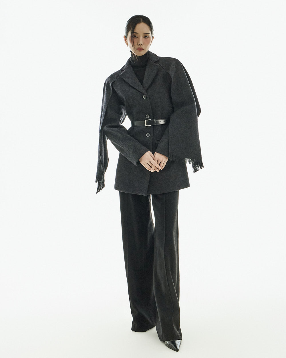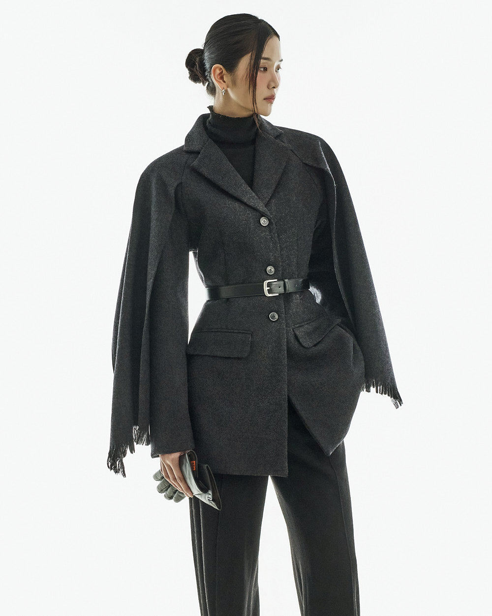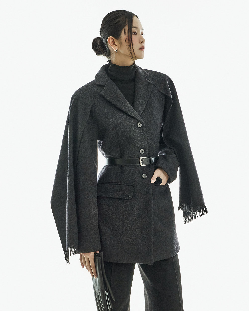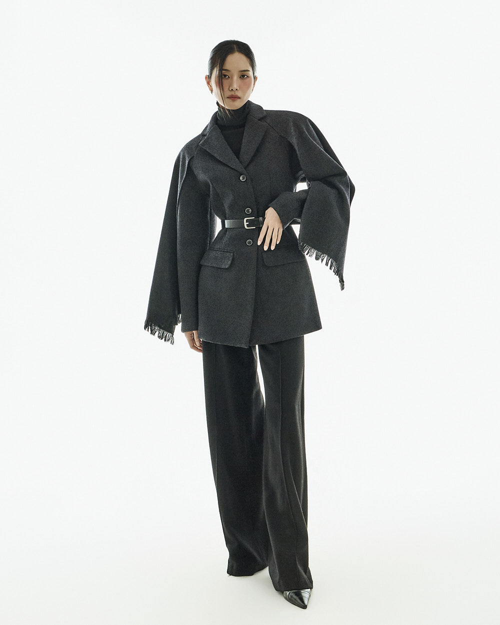 This wool coat exudes a luxurious and elegant vibe.