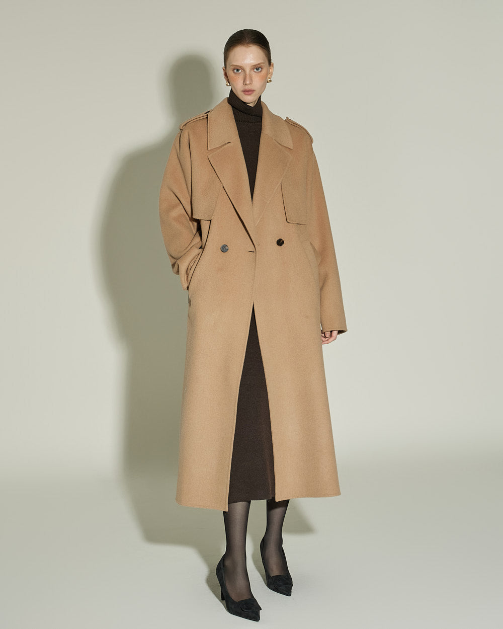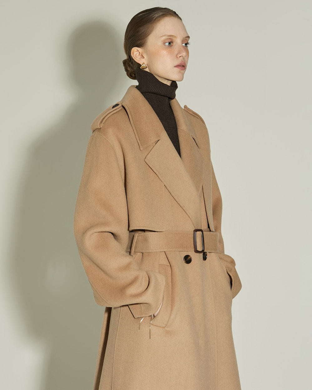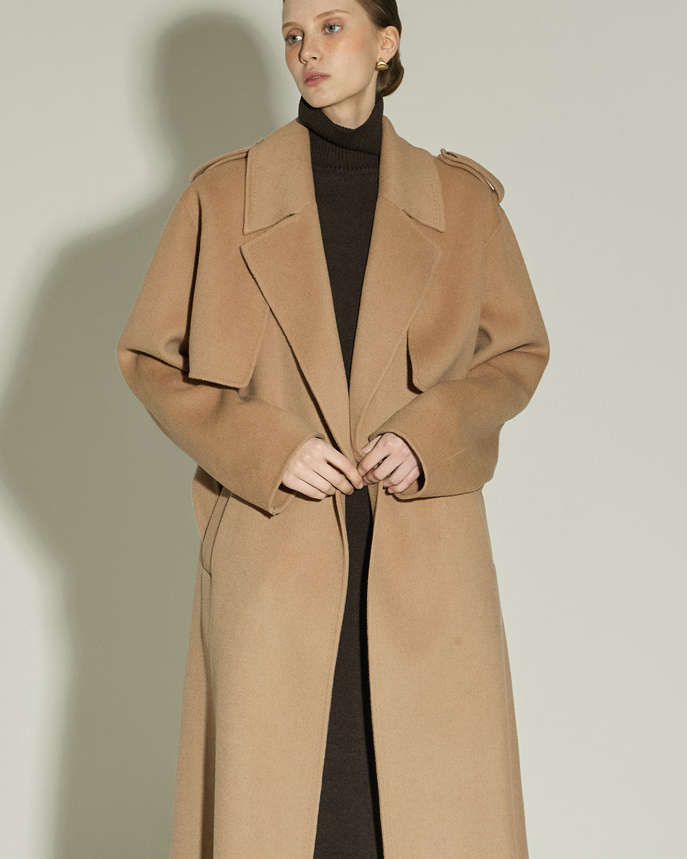 The 174cm model is wearing size ONE in BEIGE.