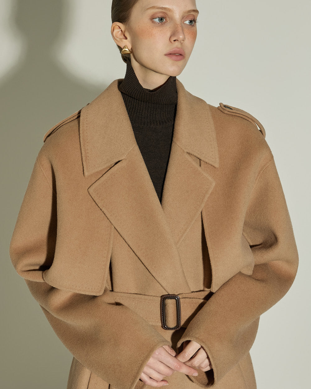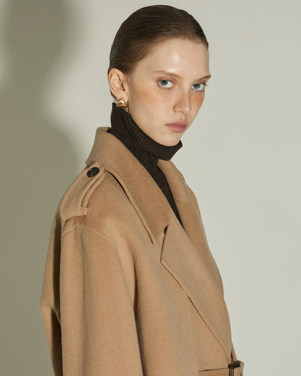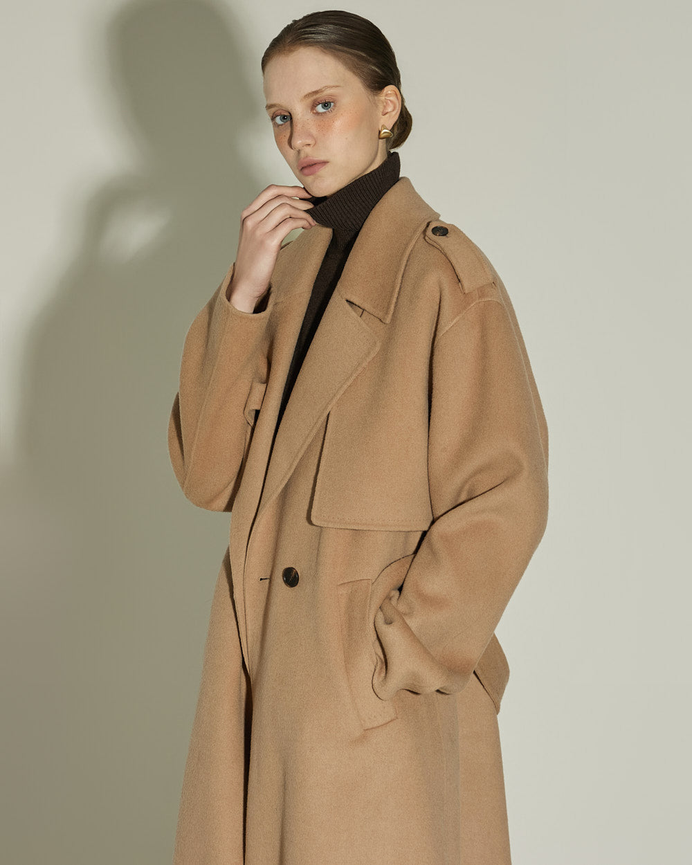 The 174cm model is wearing size ONE in BEIGE.