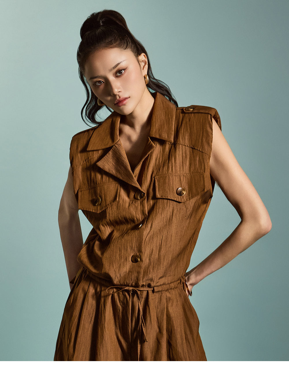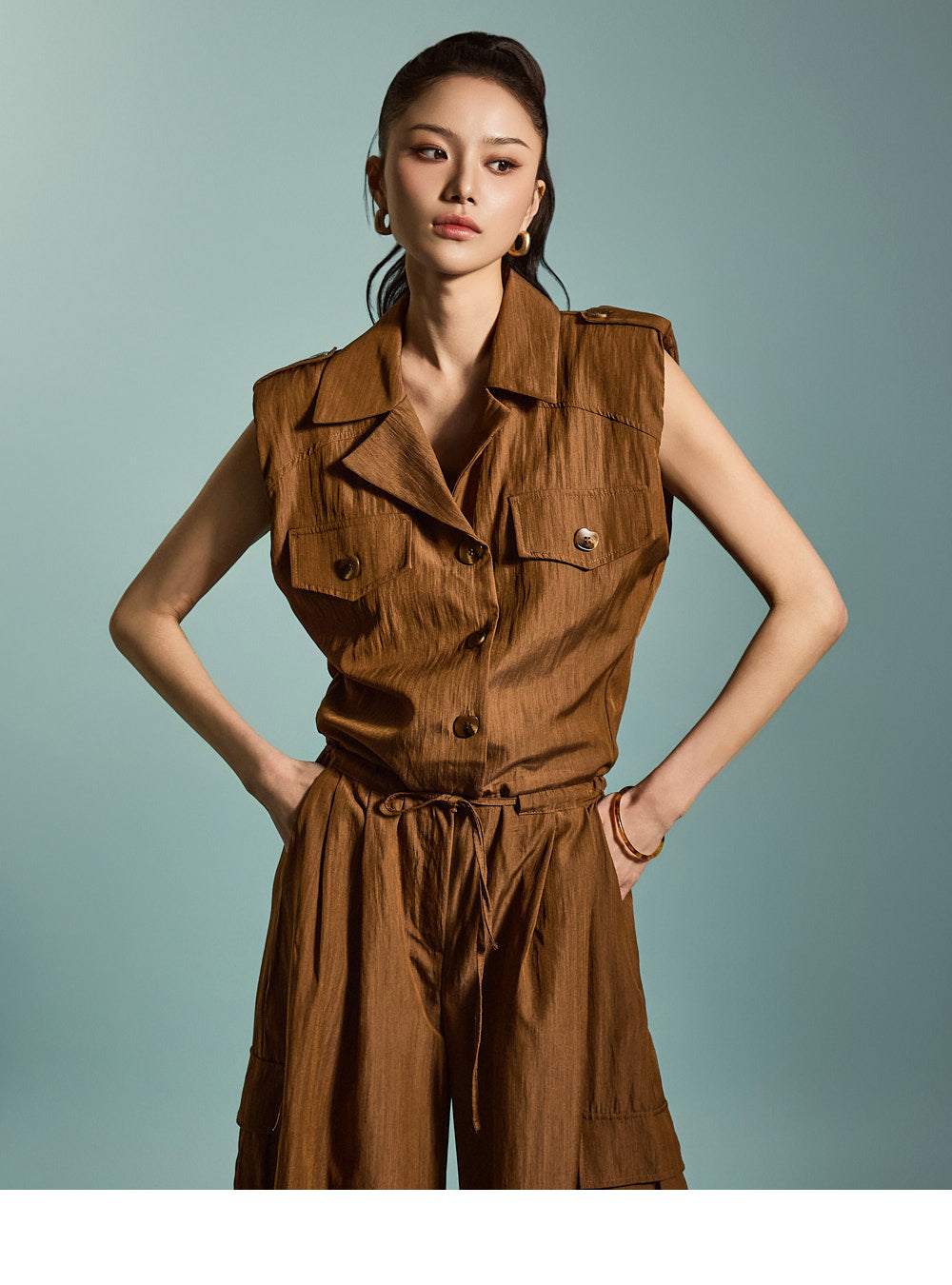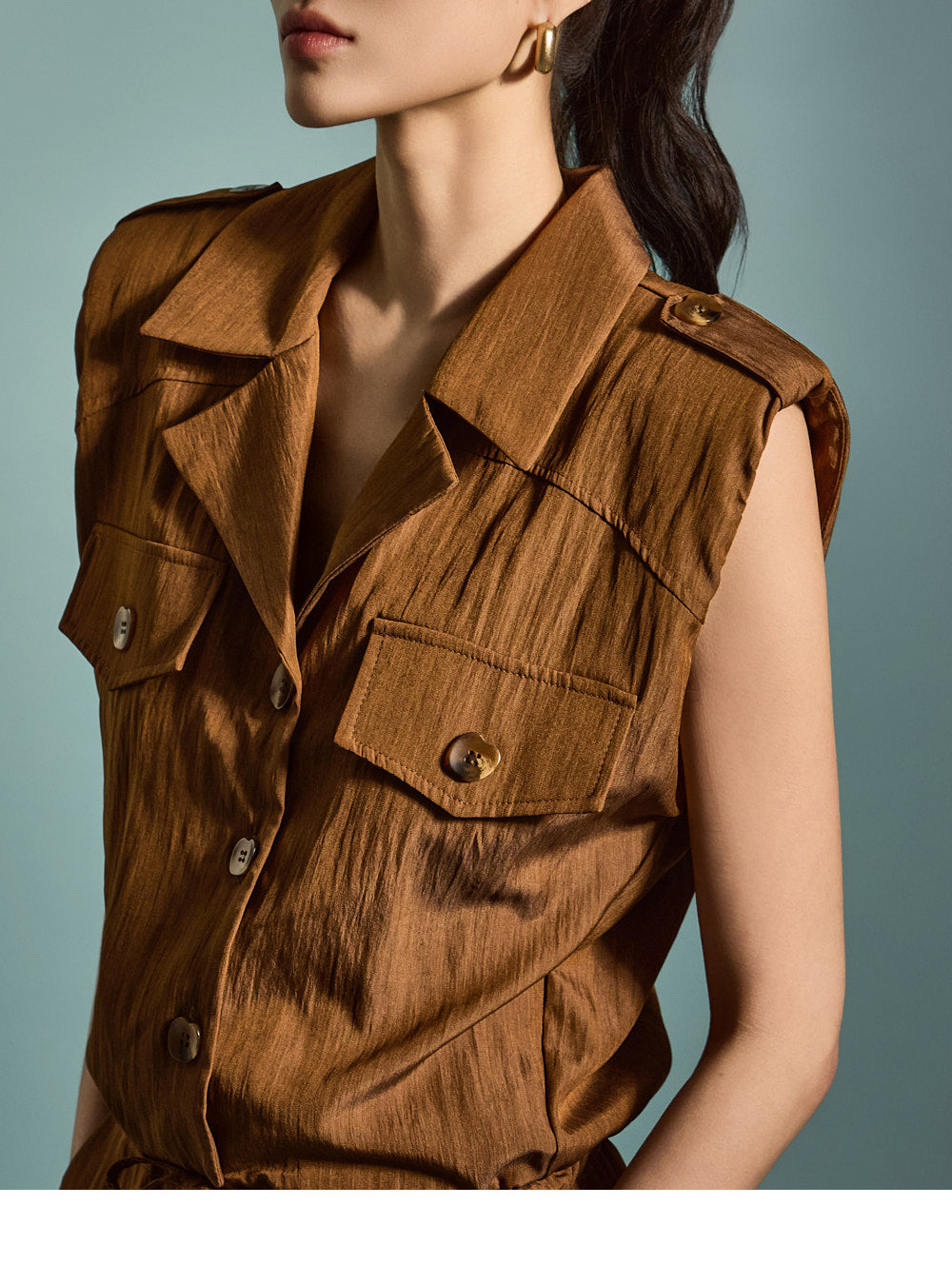 The moderate thickness and shoulder pad detail create a clean silhouette,