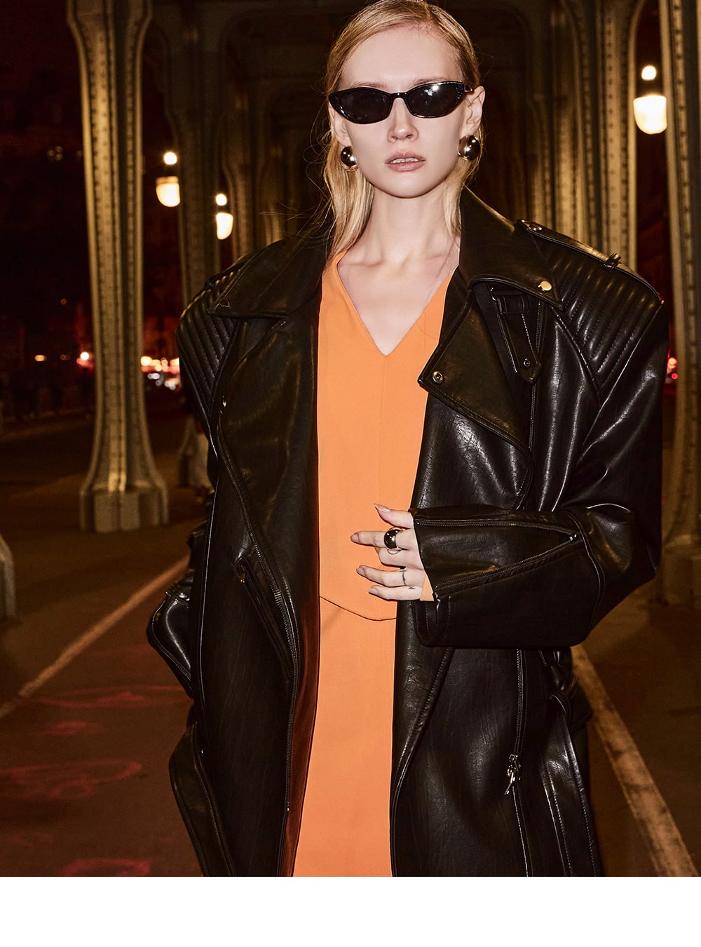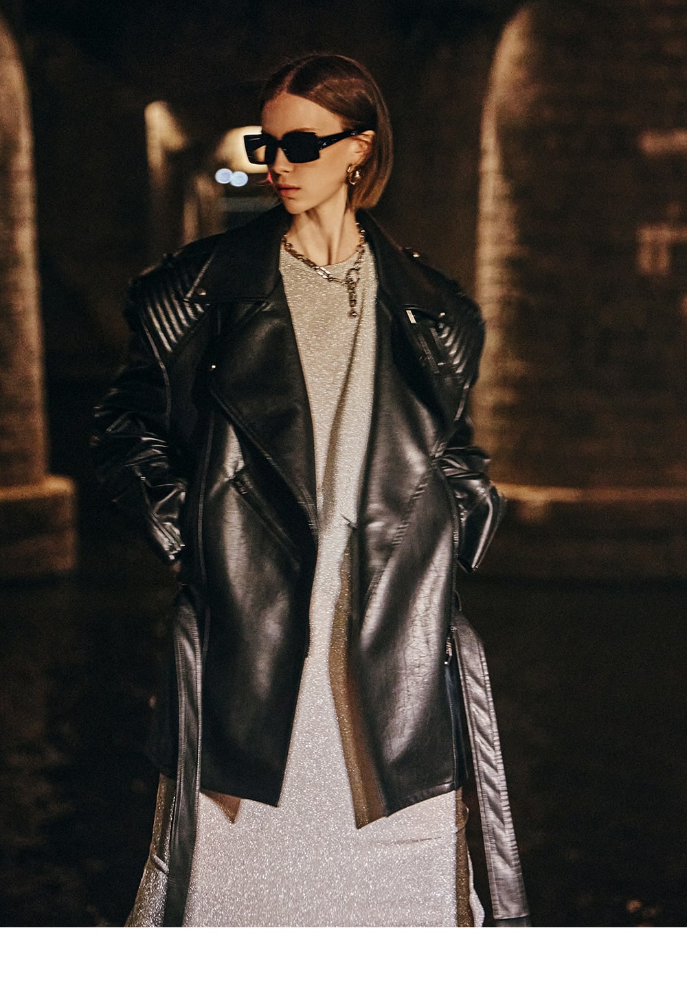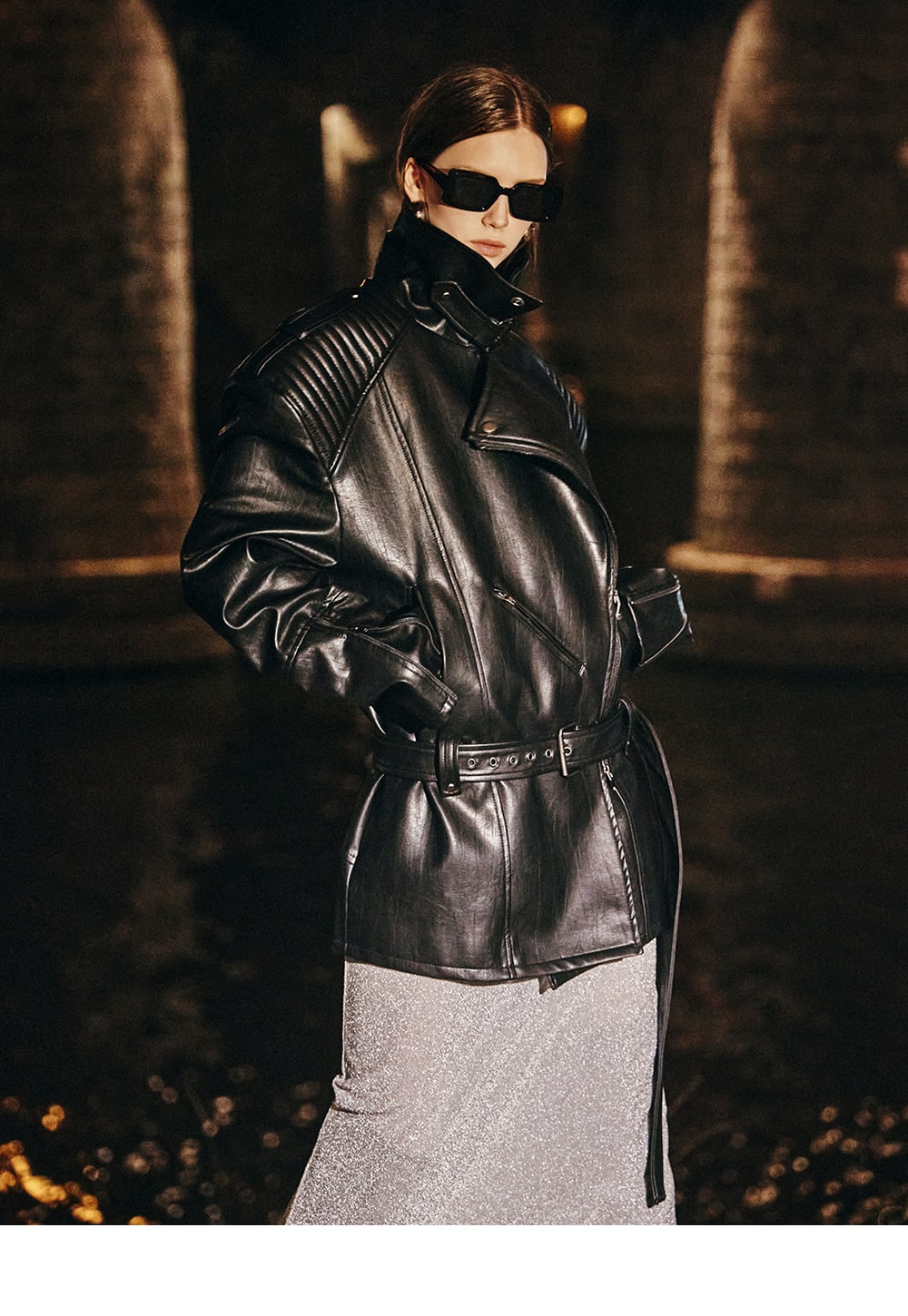The zipper on the sleeve line accentuates the overall mood.