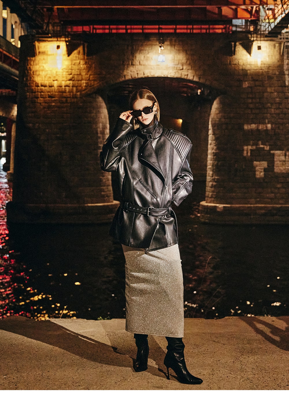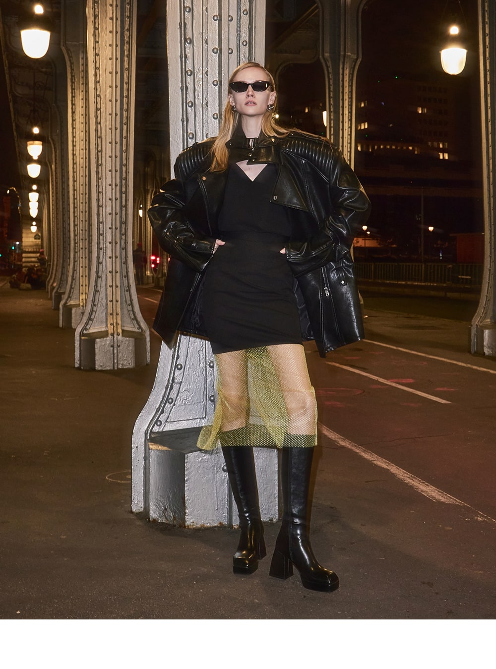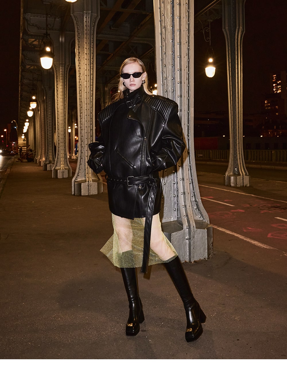 The zipper on the sleeve line accentuates the overall mood.