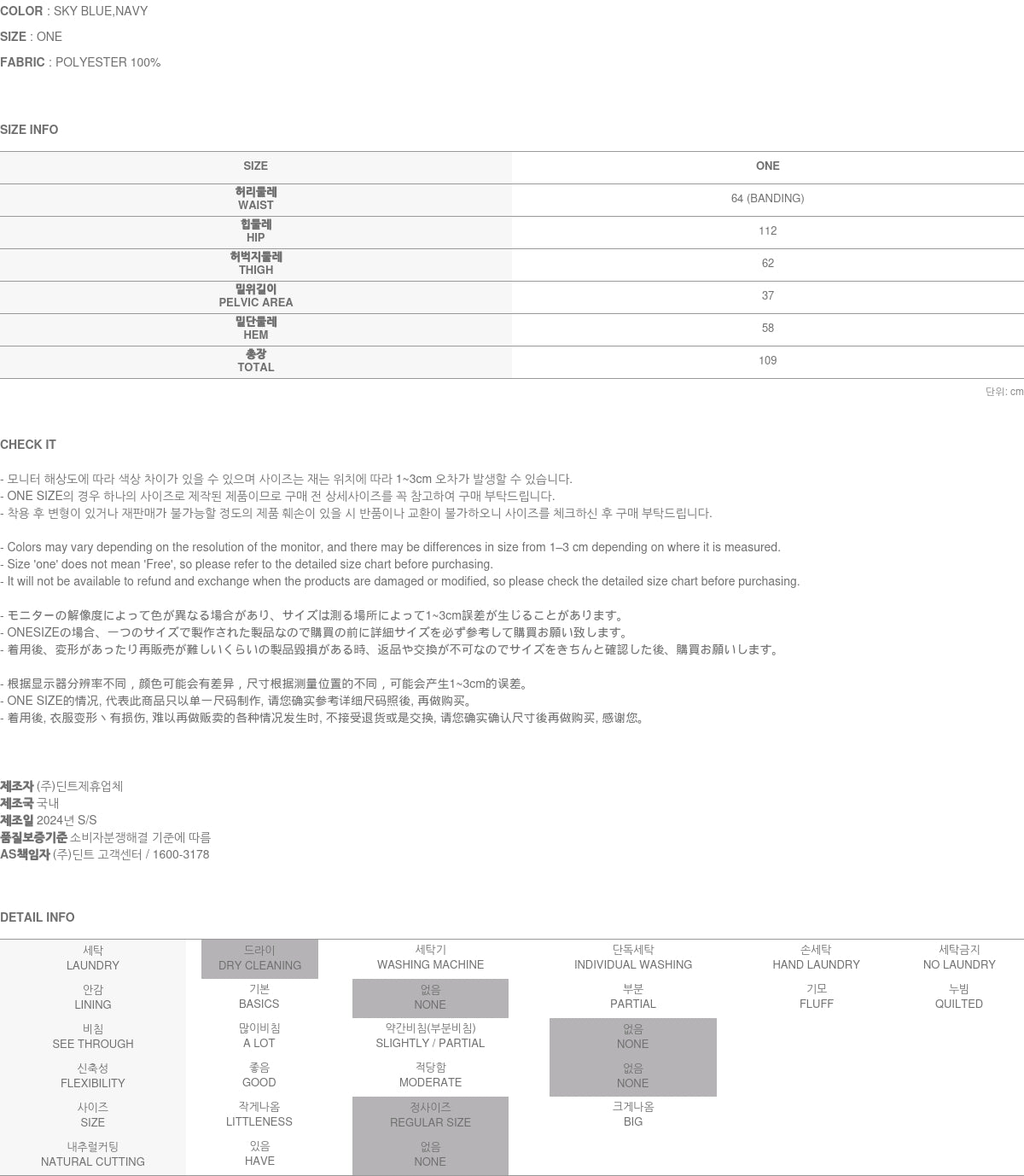 wears size ONE in SKY BLUE color.
