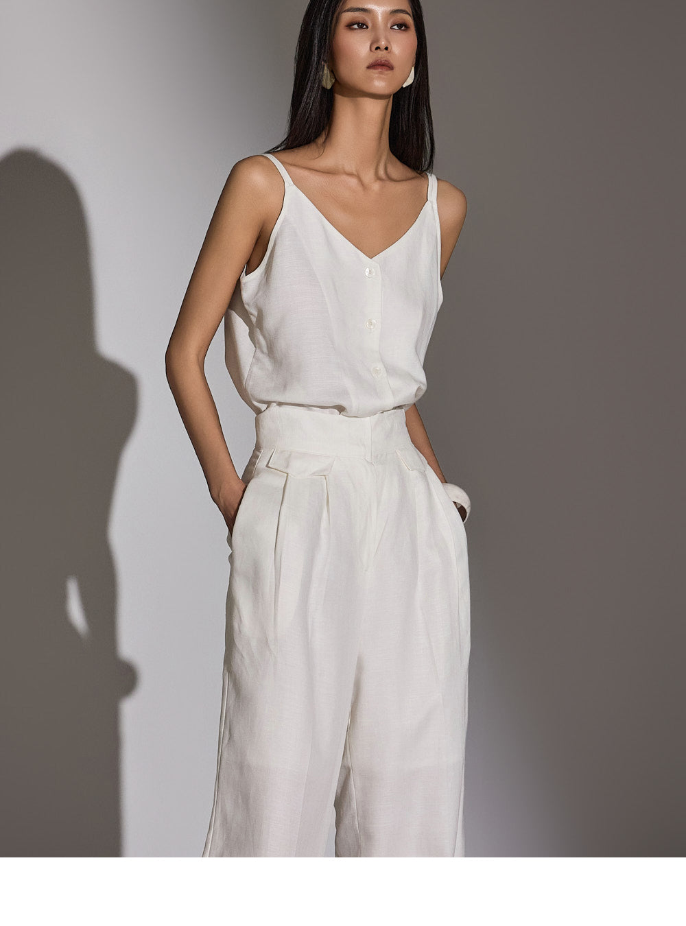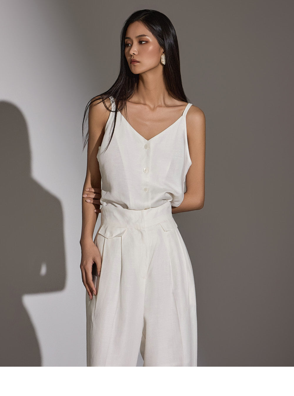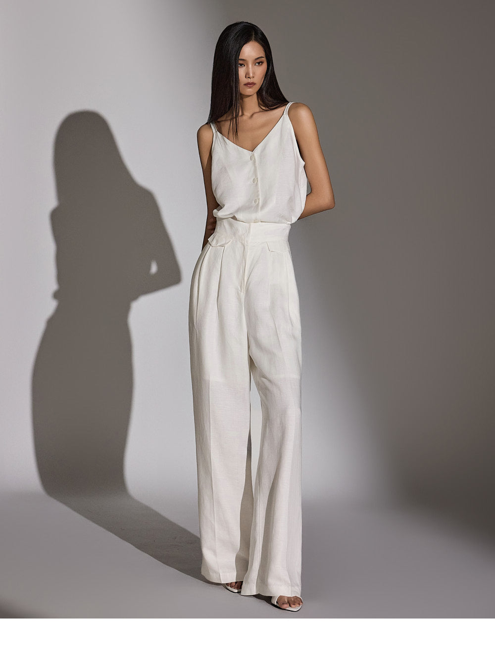 a high-waist design to elongate the leg line.