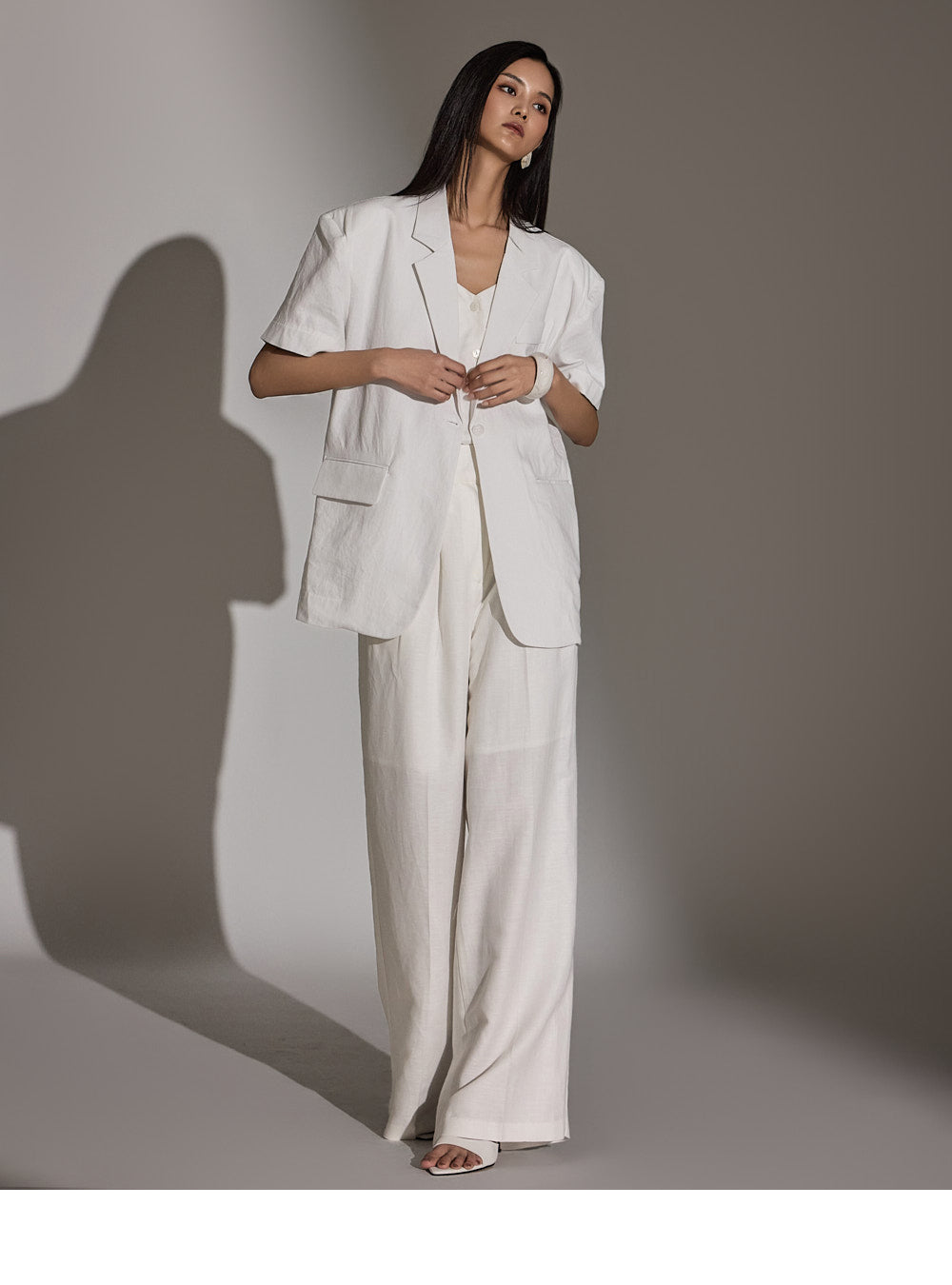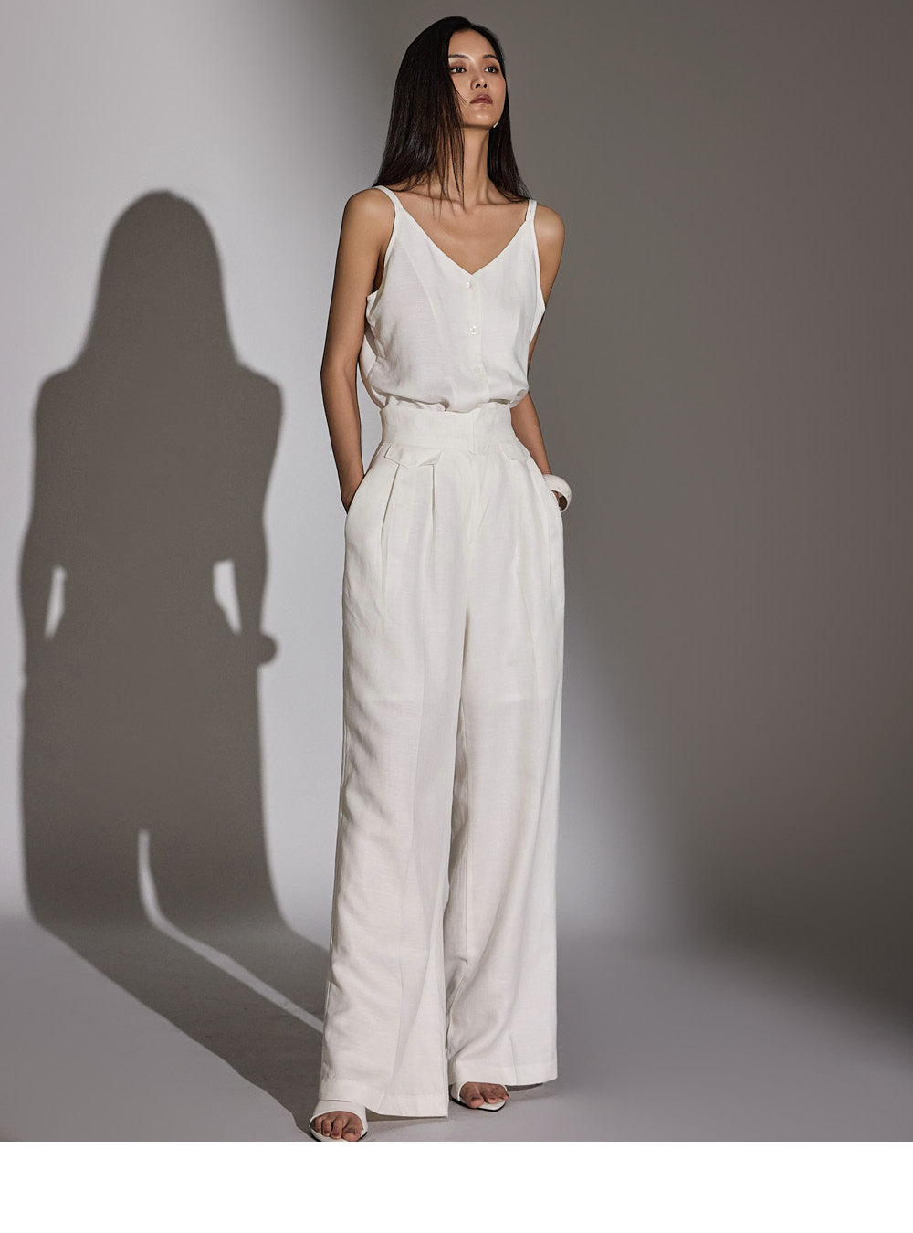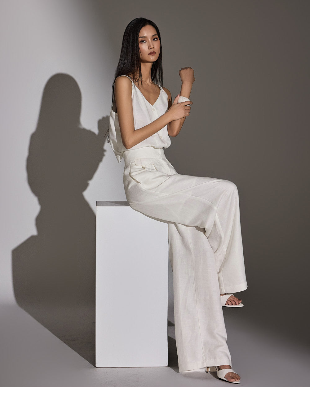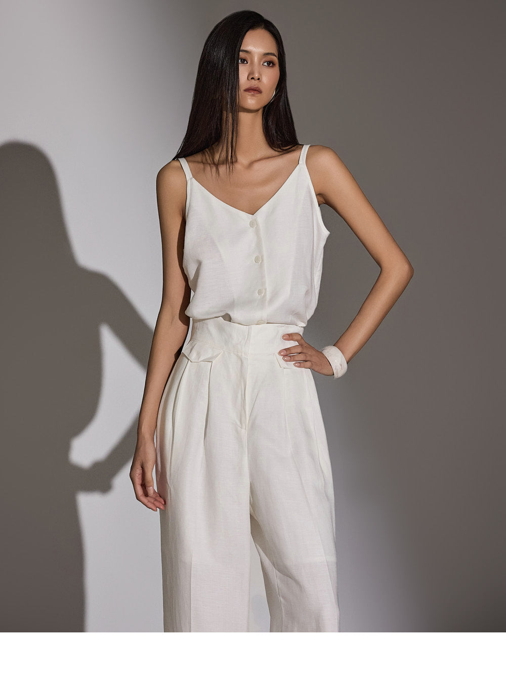 a high-waist design to elongate the leg line.