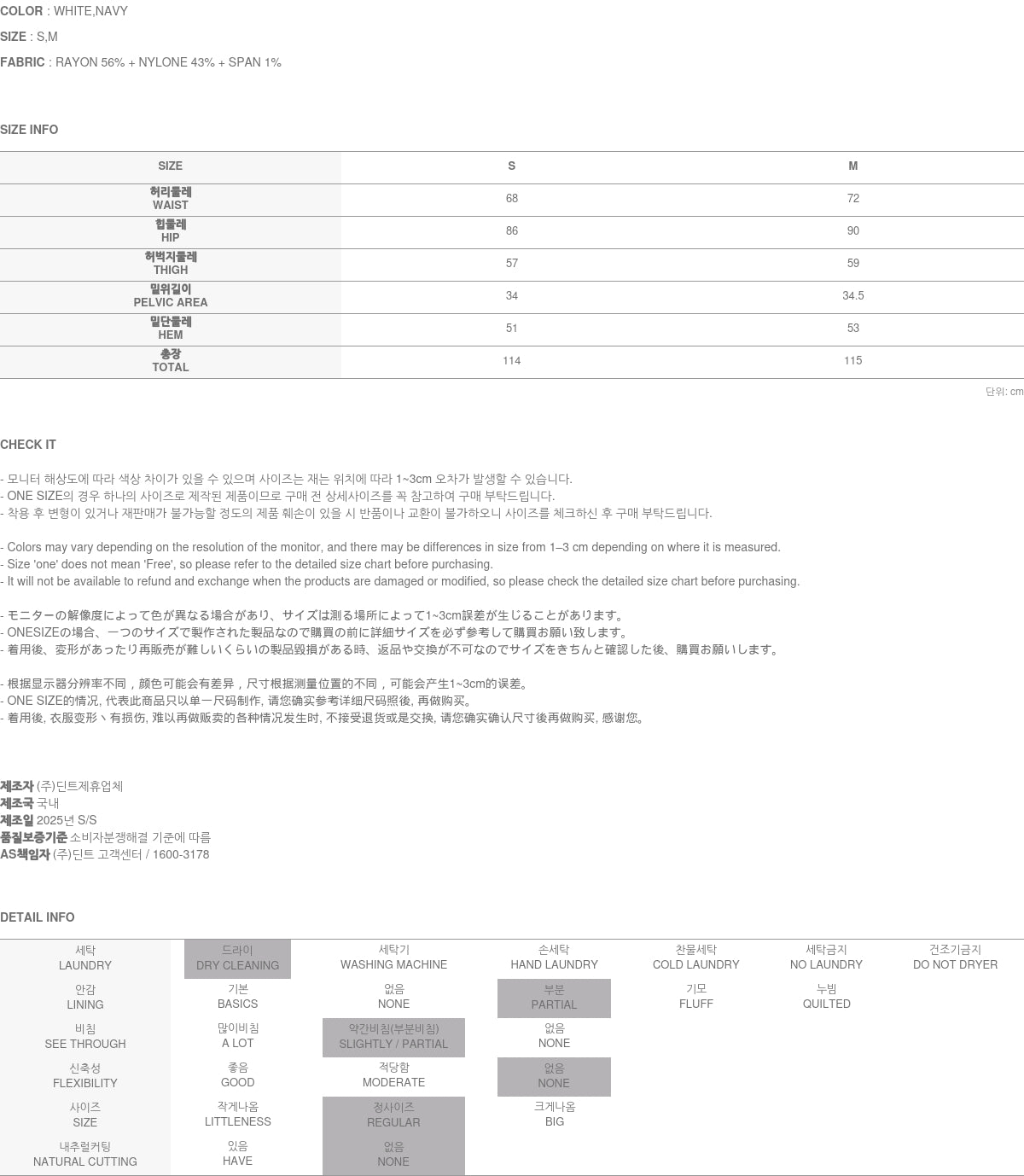 Clothing from DINT Co., Ltd. may become damaged or deformed if machine washed or tumble dried. We strongly recommend following the care instructions provided below.