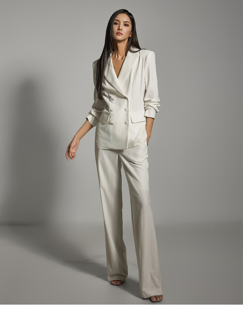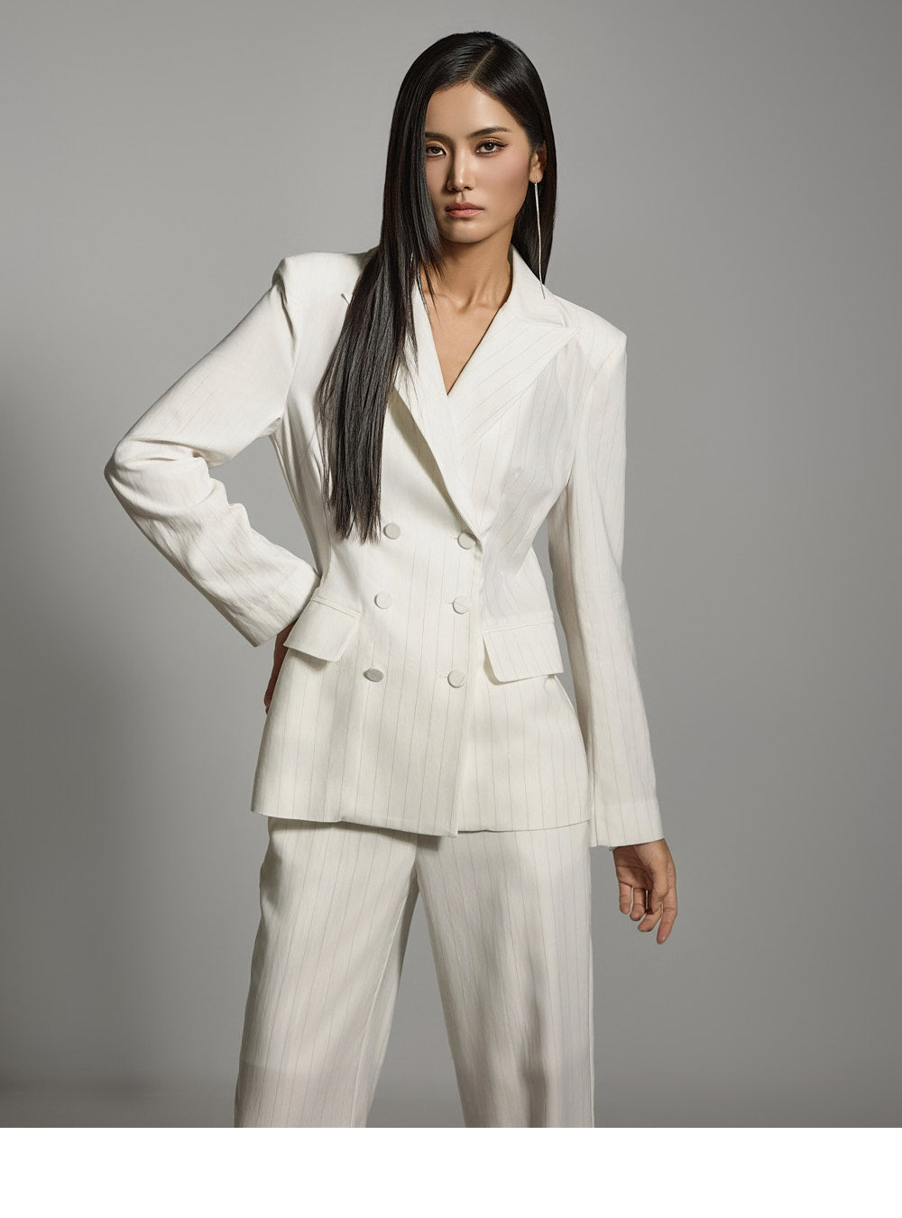 elongated silhouette, while the striped pattern adds a refined touch.