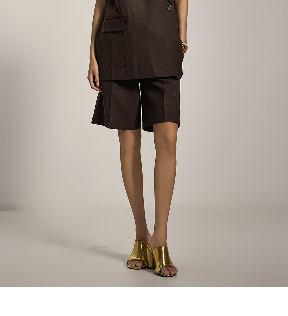 With a knee-length slack silhouette, they create a neat yet relaxed look.