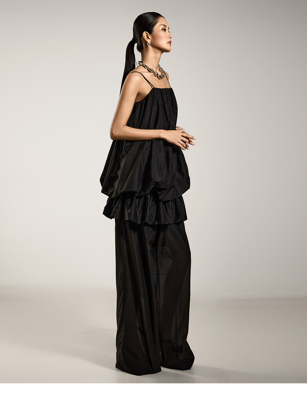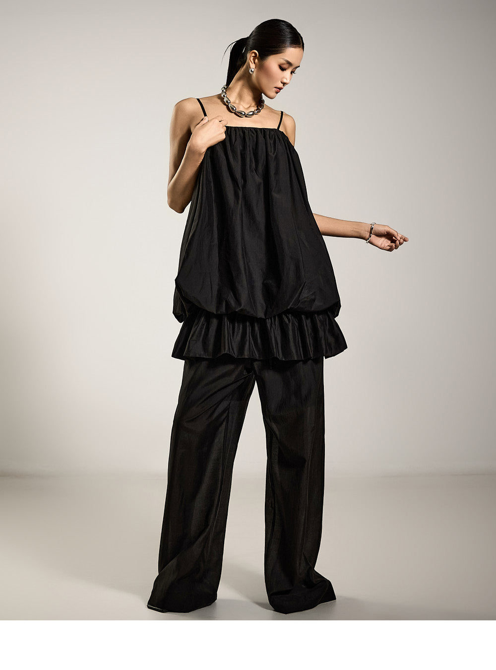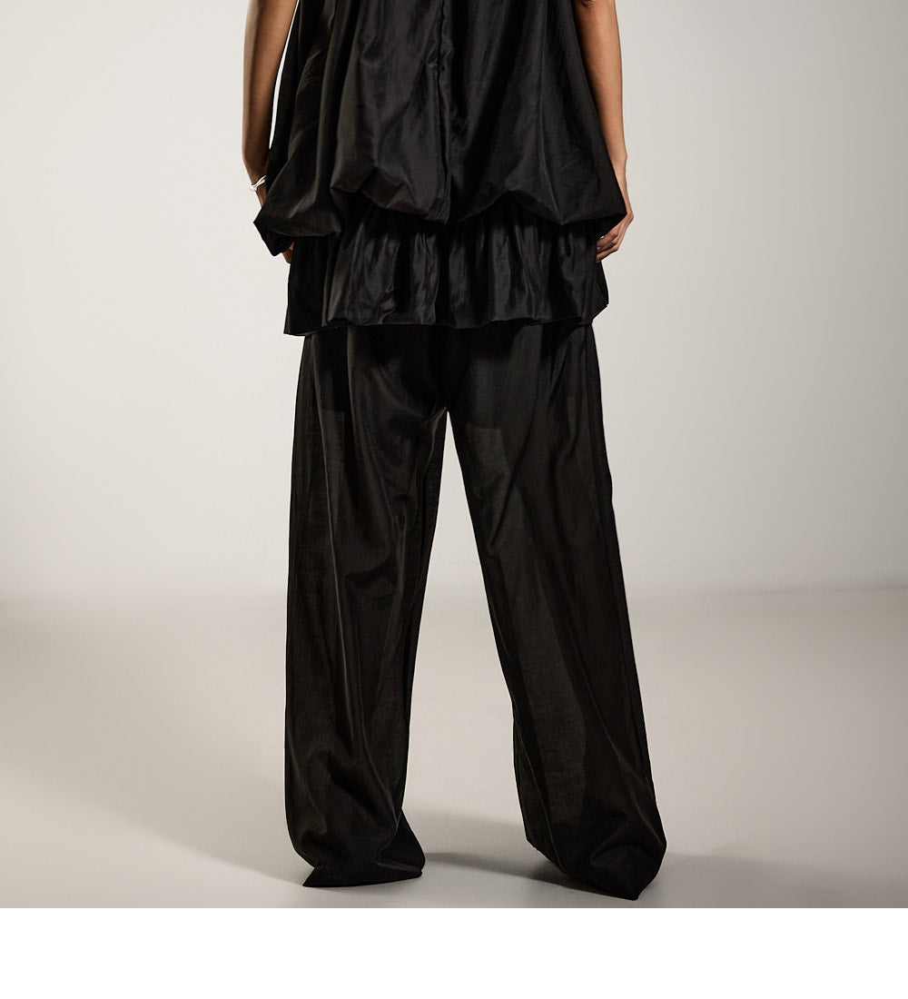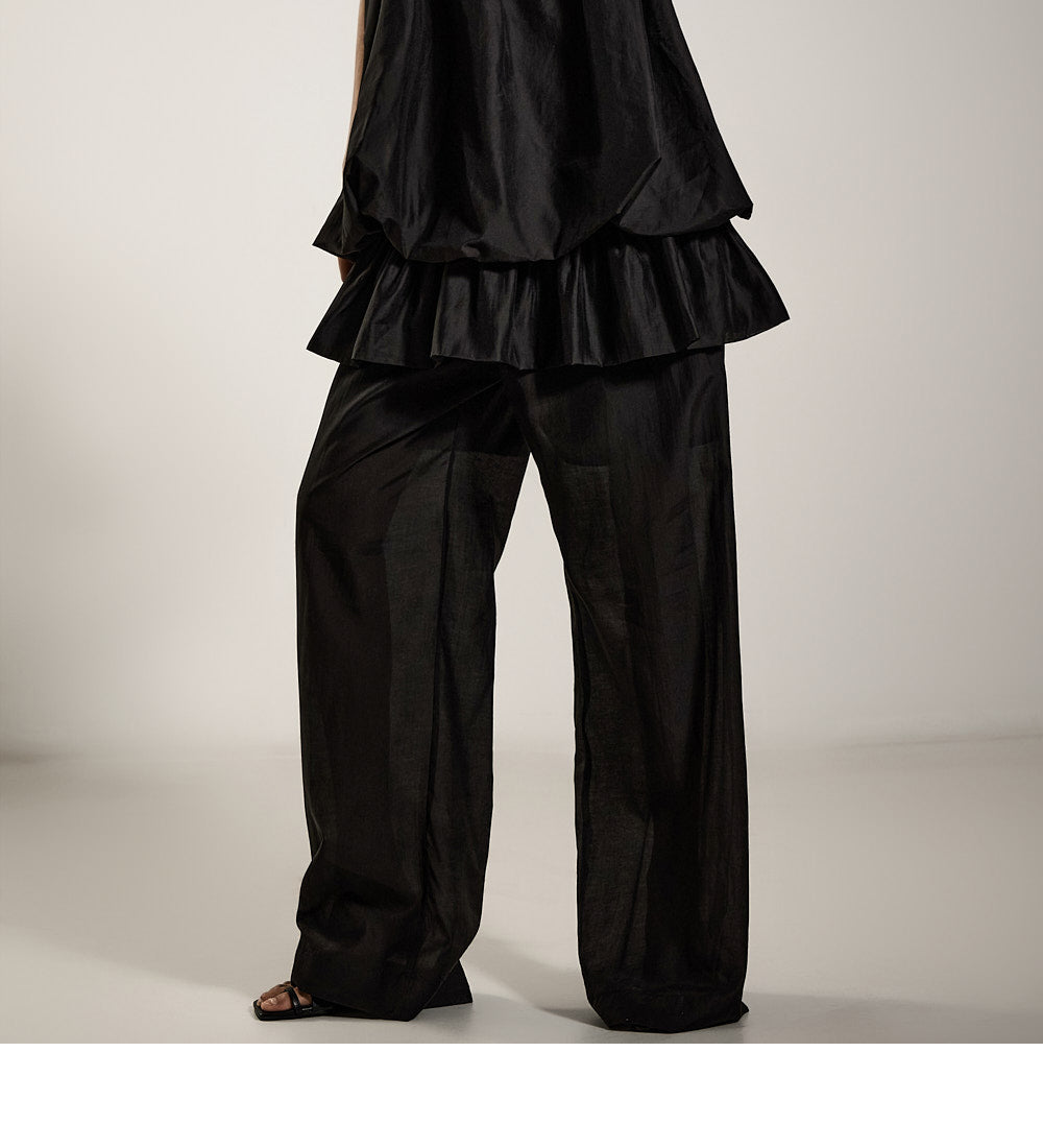 The wide silhouette creates a lengthening effect on the legs,