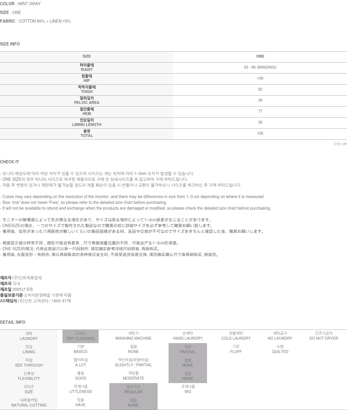 Clothing from DINT Co., Ltd. may become damaged or deformed if machine washed or tumble dried. We strongly recommend following the care instructions provided below.