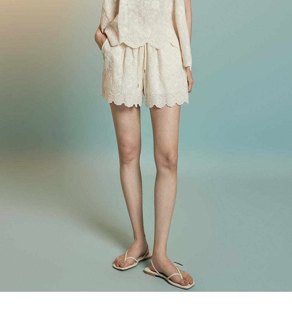 This is a pair of casual-style eyelet shorts.