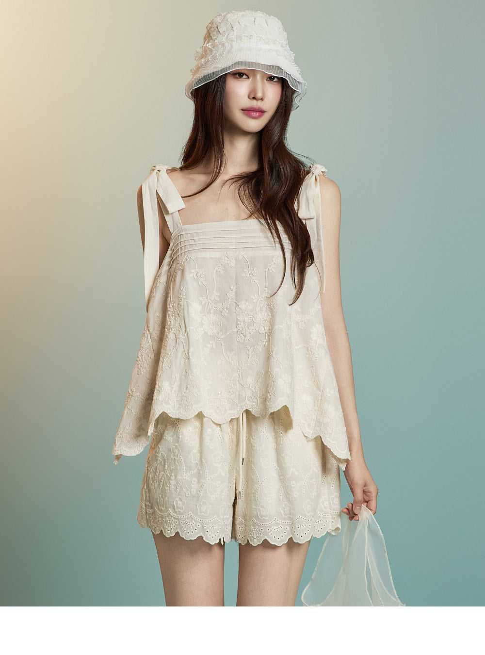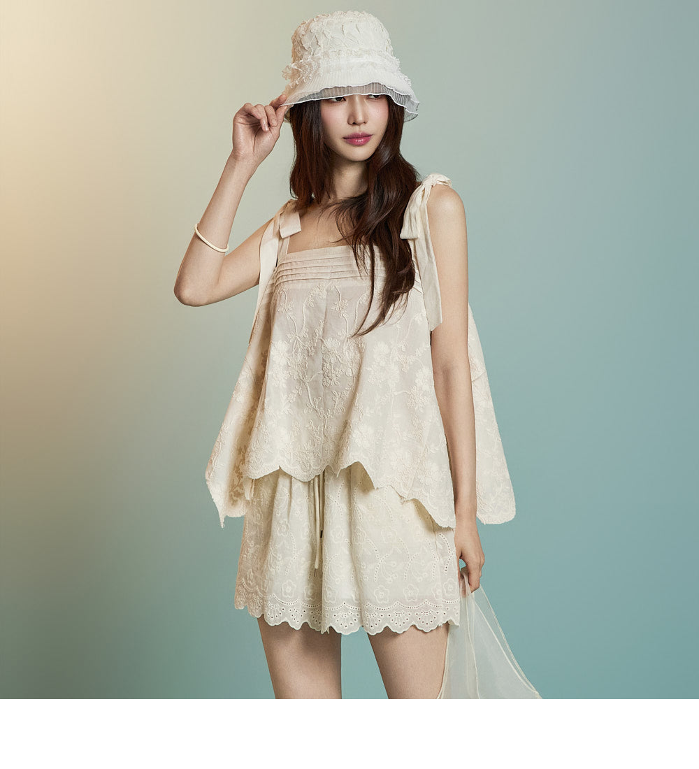 Floral eyelet details bring a fresh, breezy vibe,