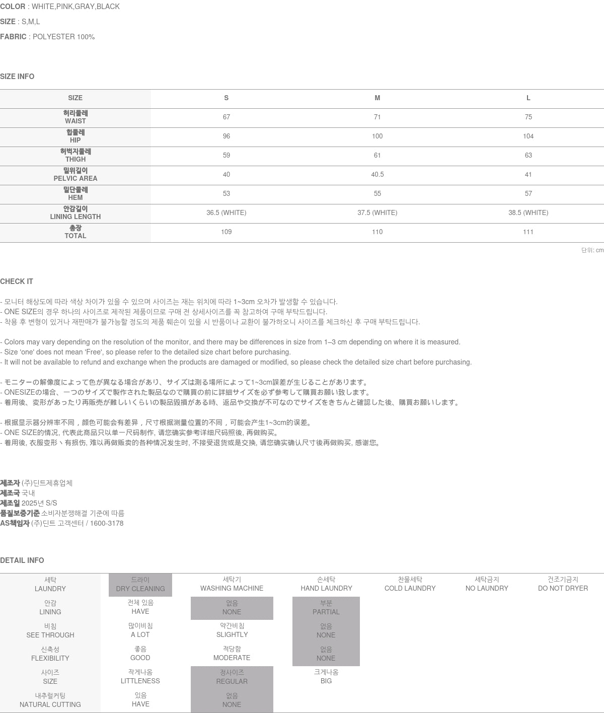 Clothing from DINT Co., Ltd. may become damaged or deformed if machine washed or tumble dried. We strongly recommend following the care instructions provided below.