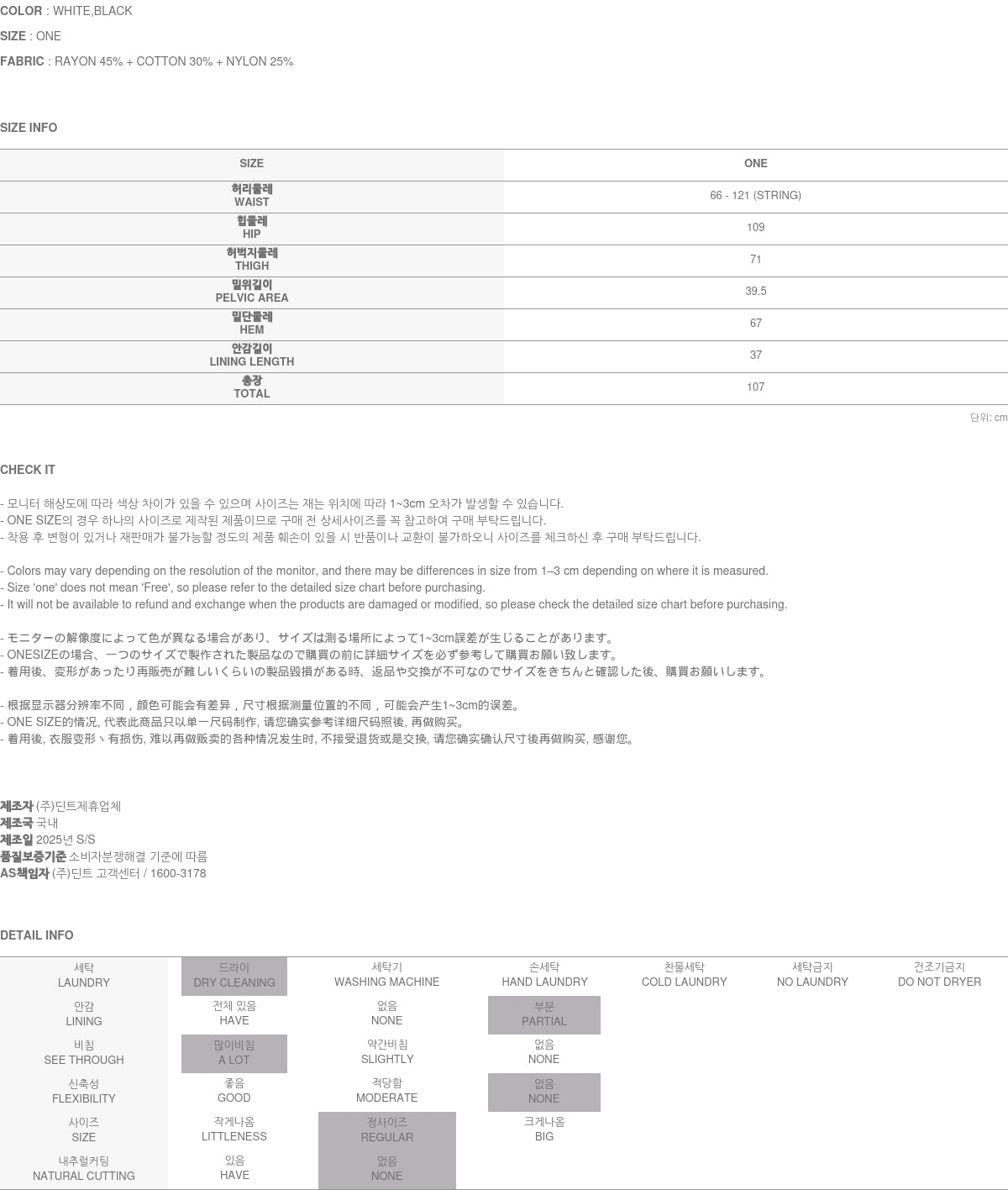 Clothing from DINT Co., Ltd. may become damaged or deformed if machine washed or tumble dried. We strongly recommend following the care instructions provided below.