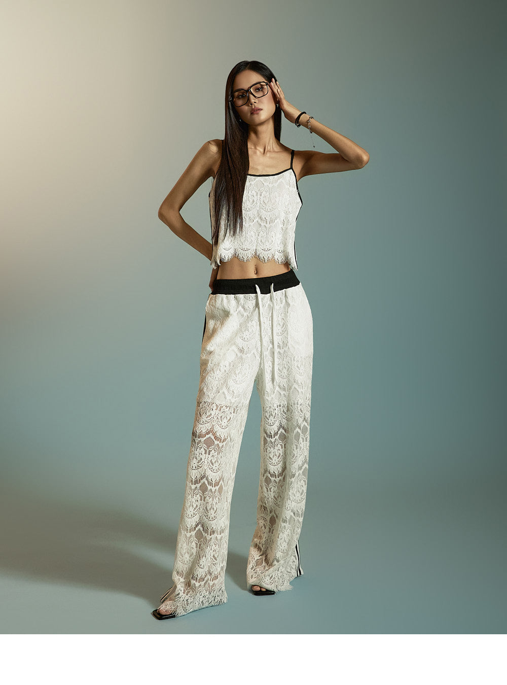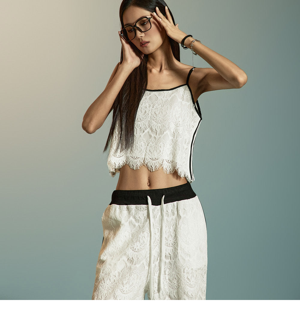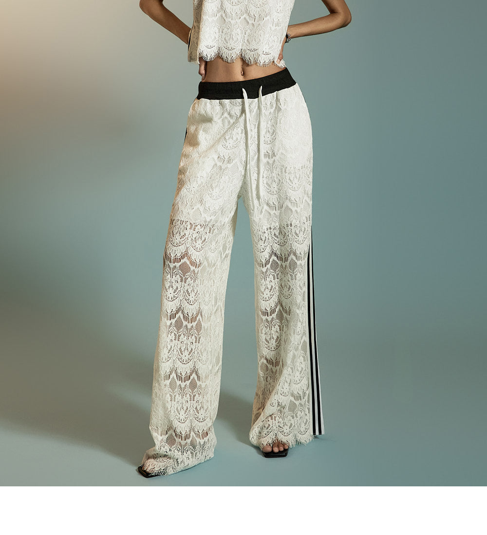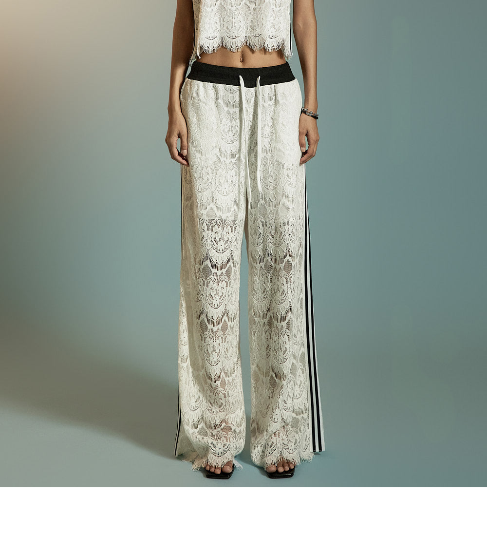 This is a pair of casual-style lace track pants.