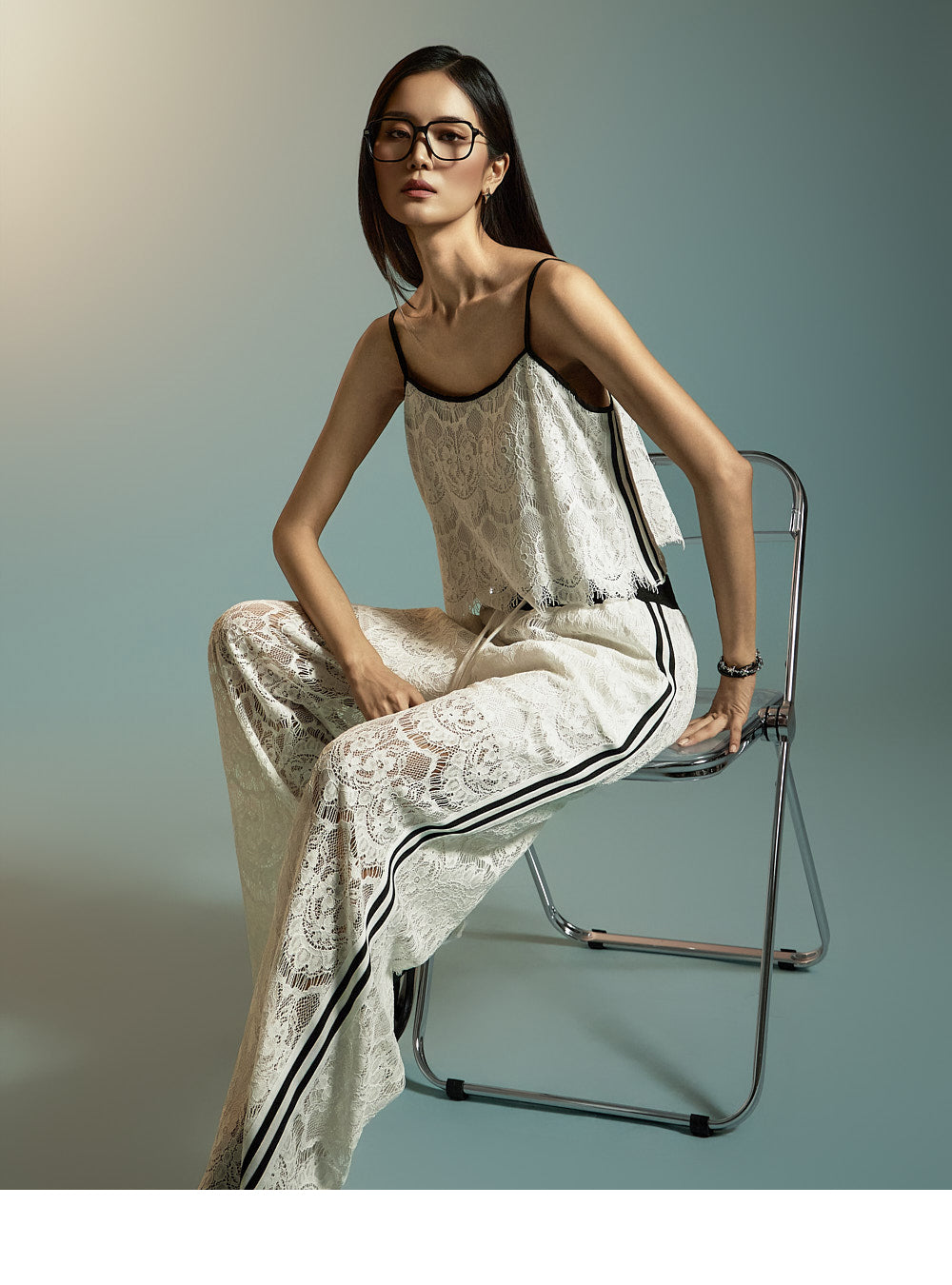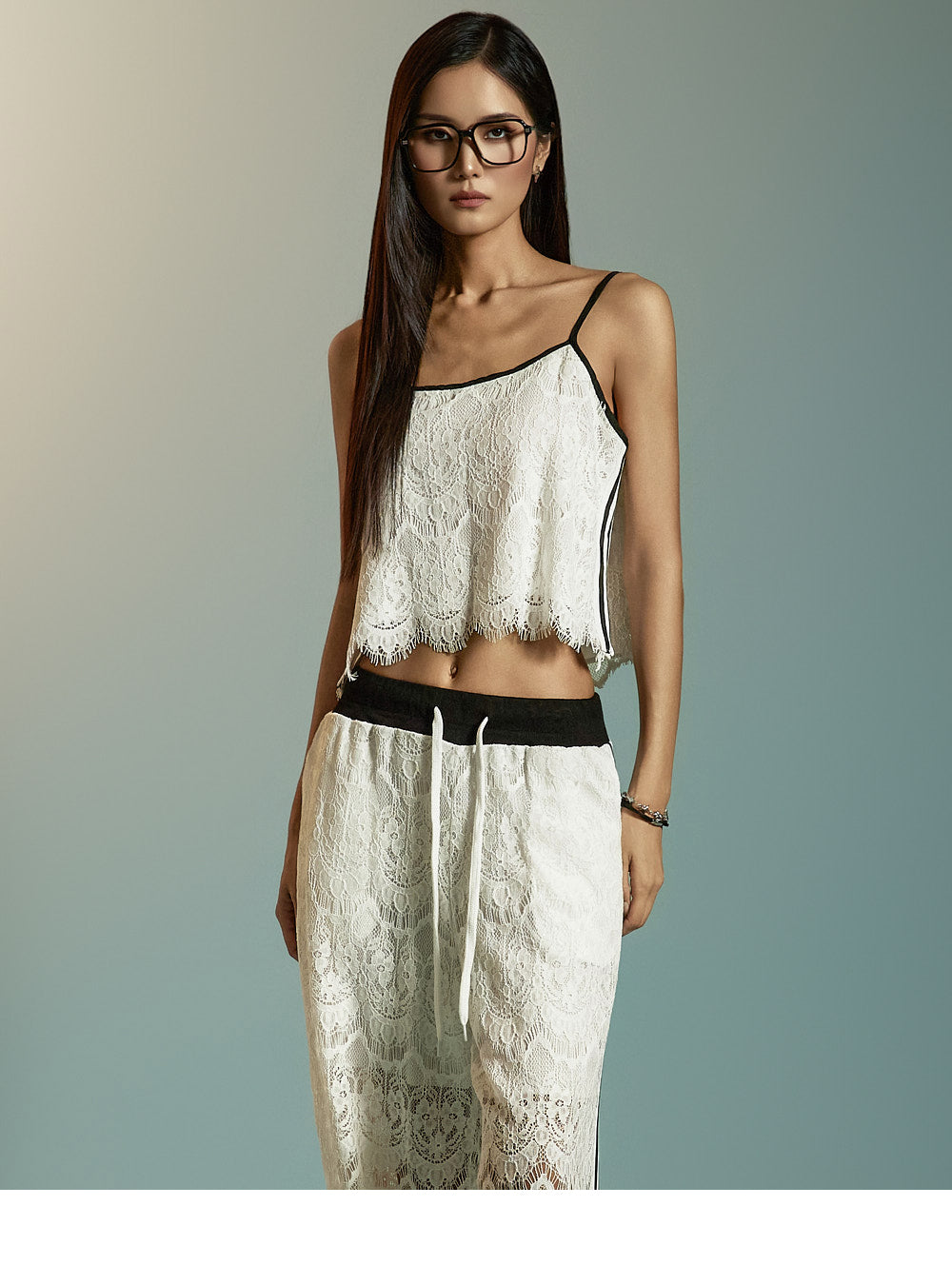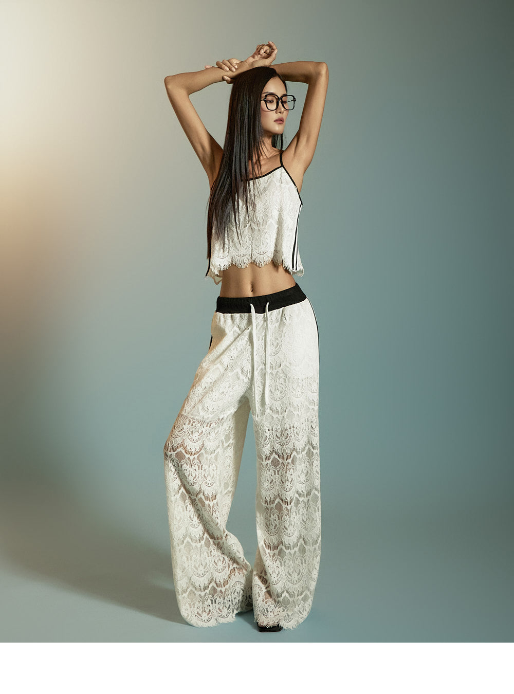 This is a pair of casual-style lace track pants.