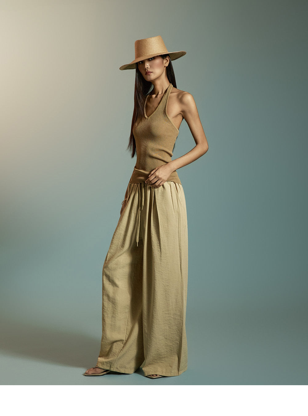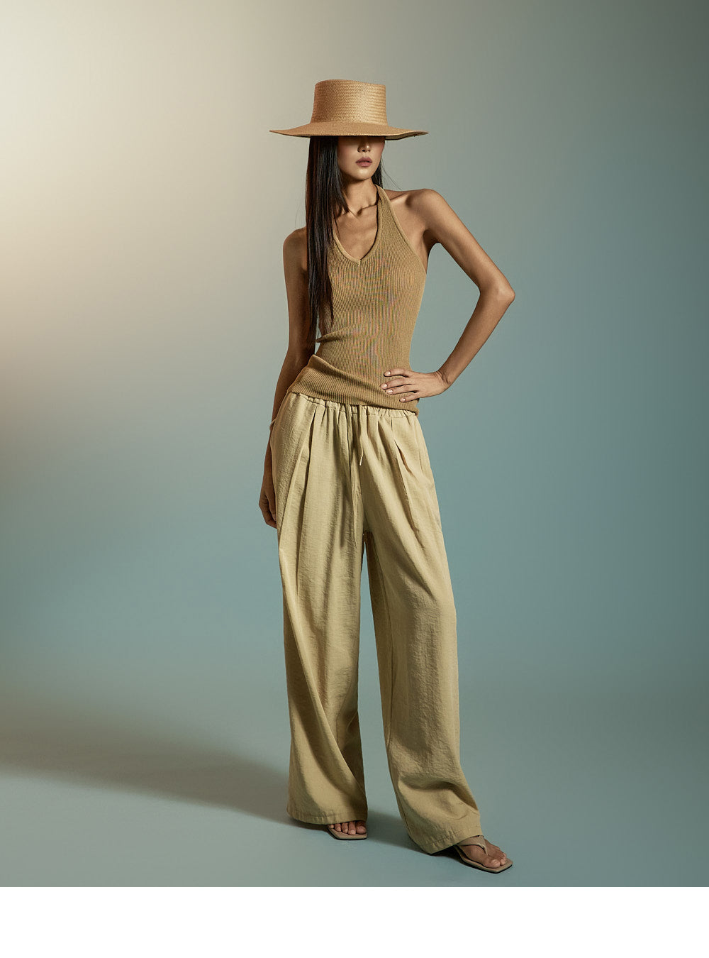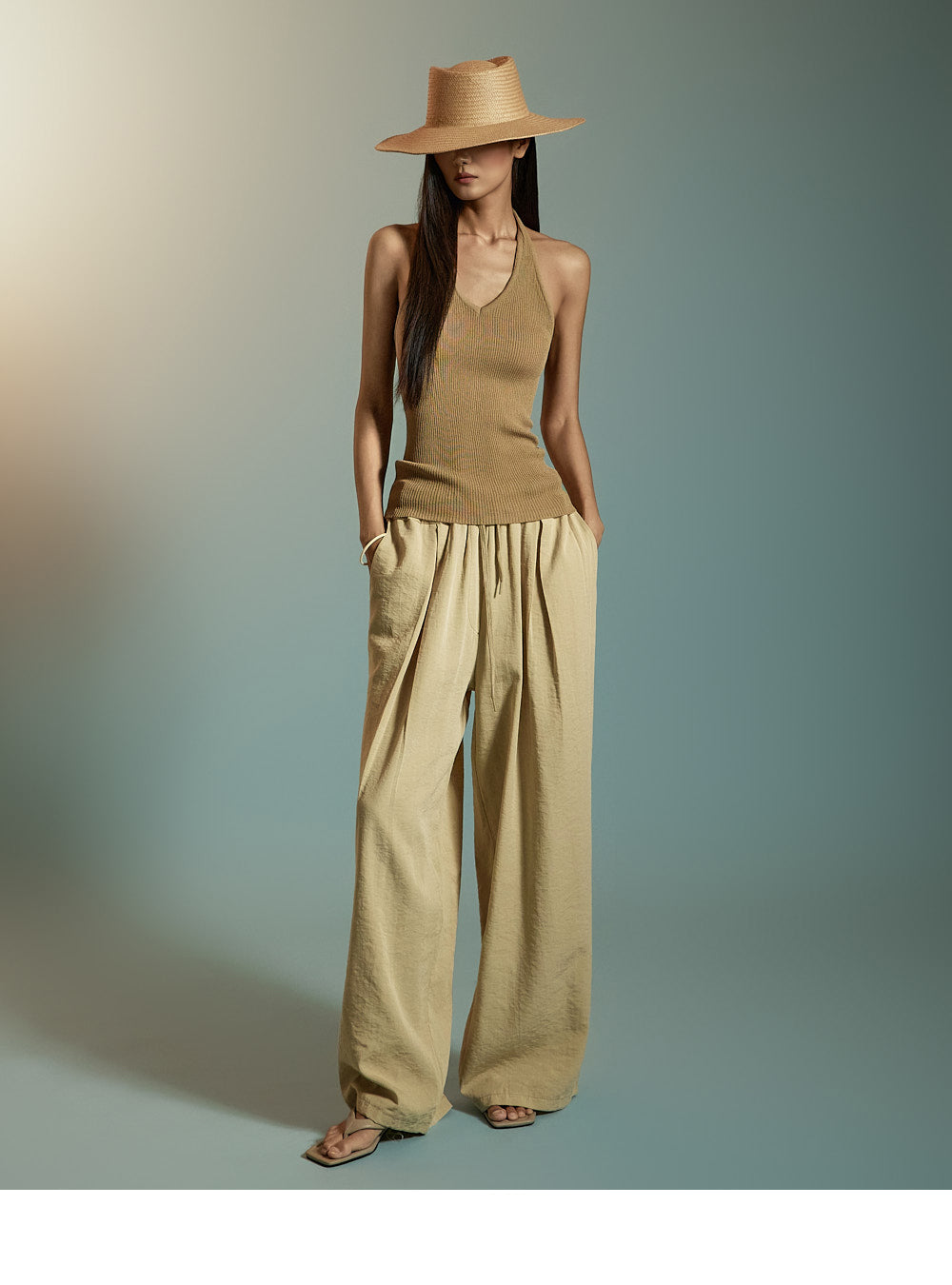 This is a pair of casual pleated wide-leg pants perfect for everyday wear.