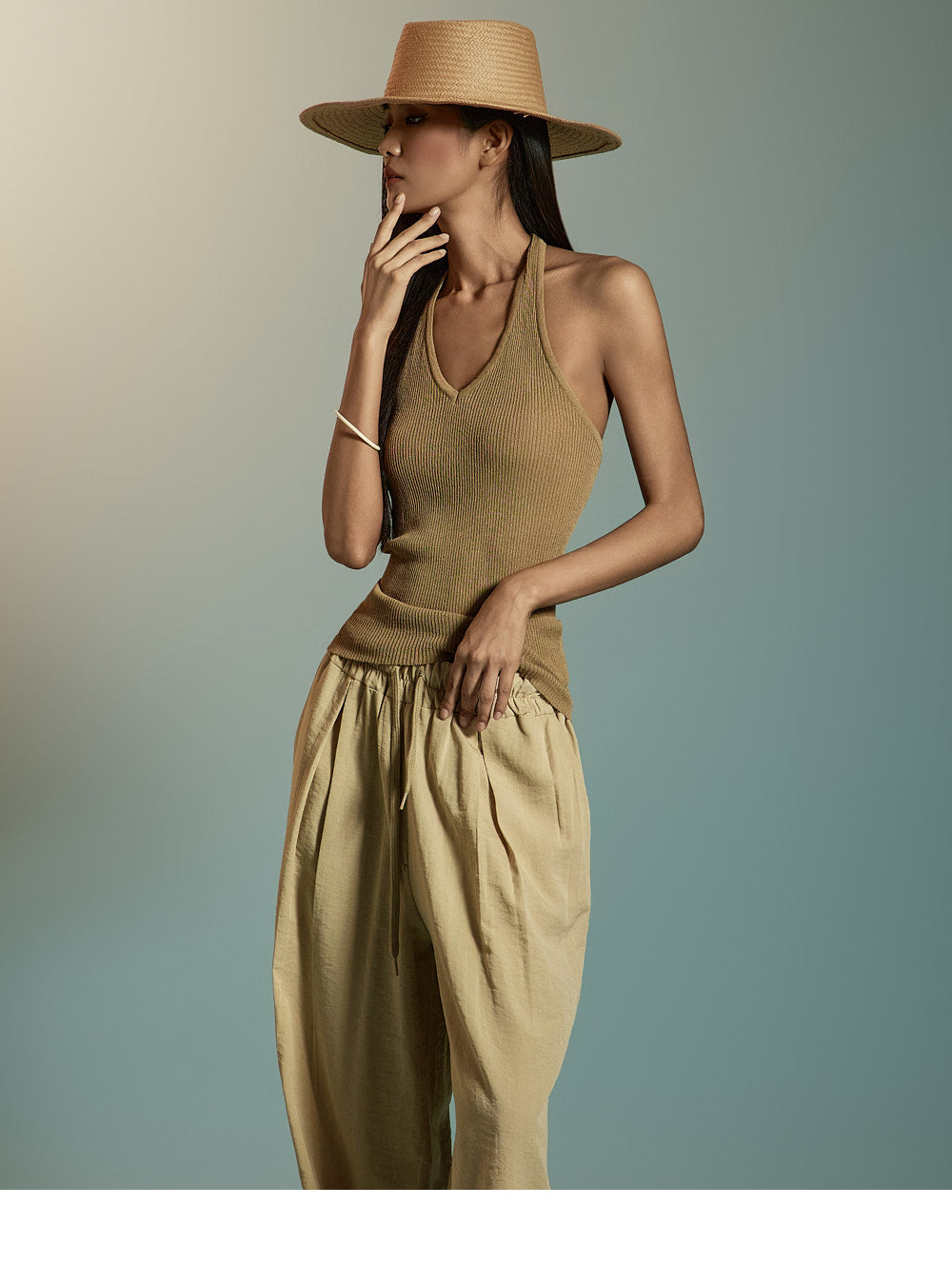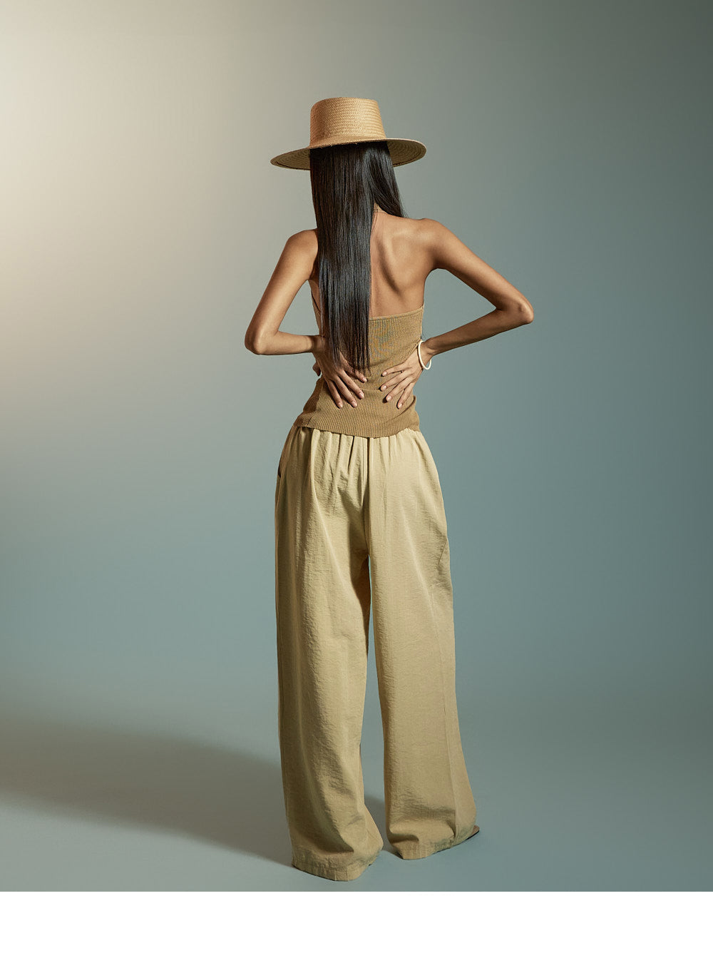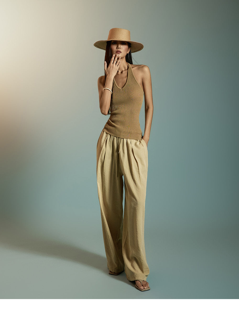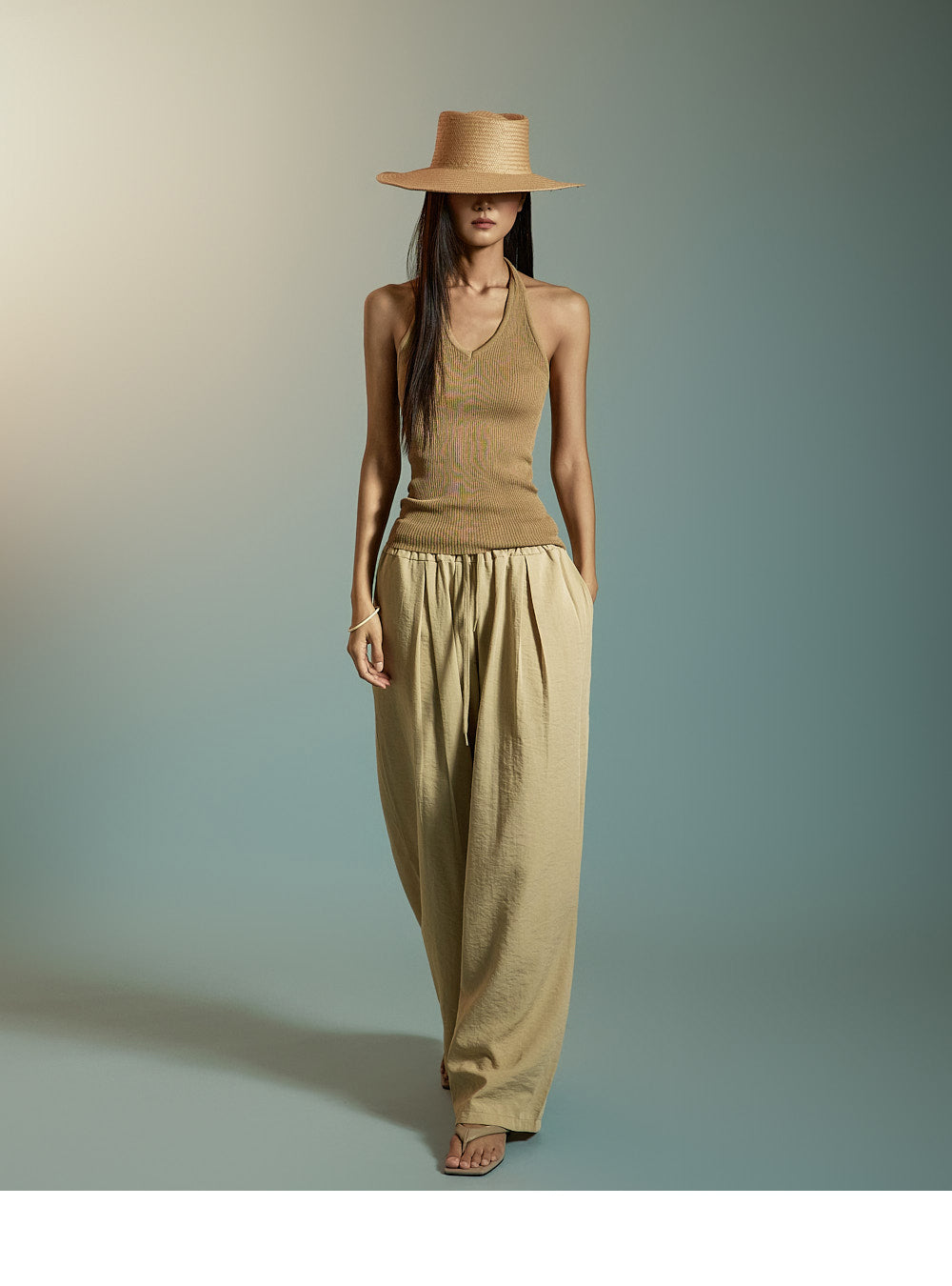 This is a pair of casual pleated wide-leg pants perfect for everyday wear.