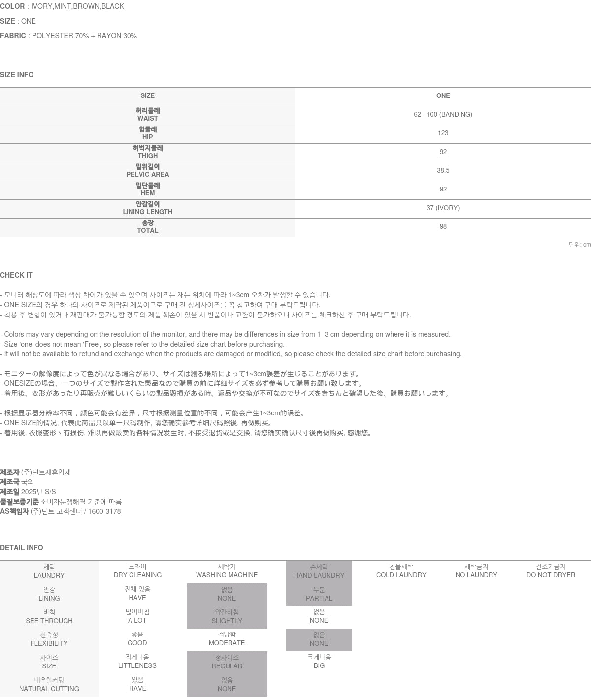 Clothing from DINT Co., Ltd. may become damaged or deformed if machine washed or tumble dried. We strongly recommend following the care instructions provided below.